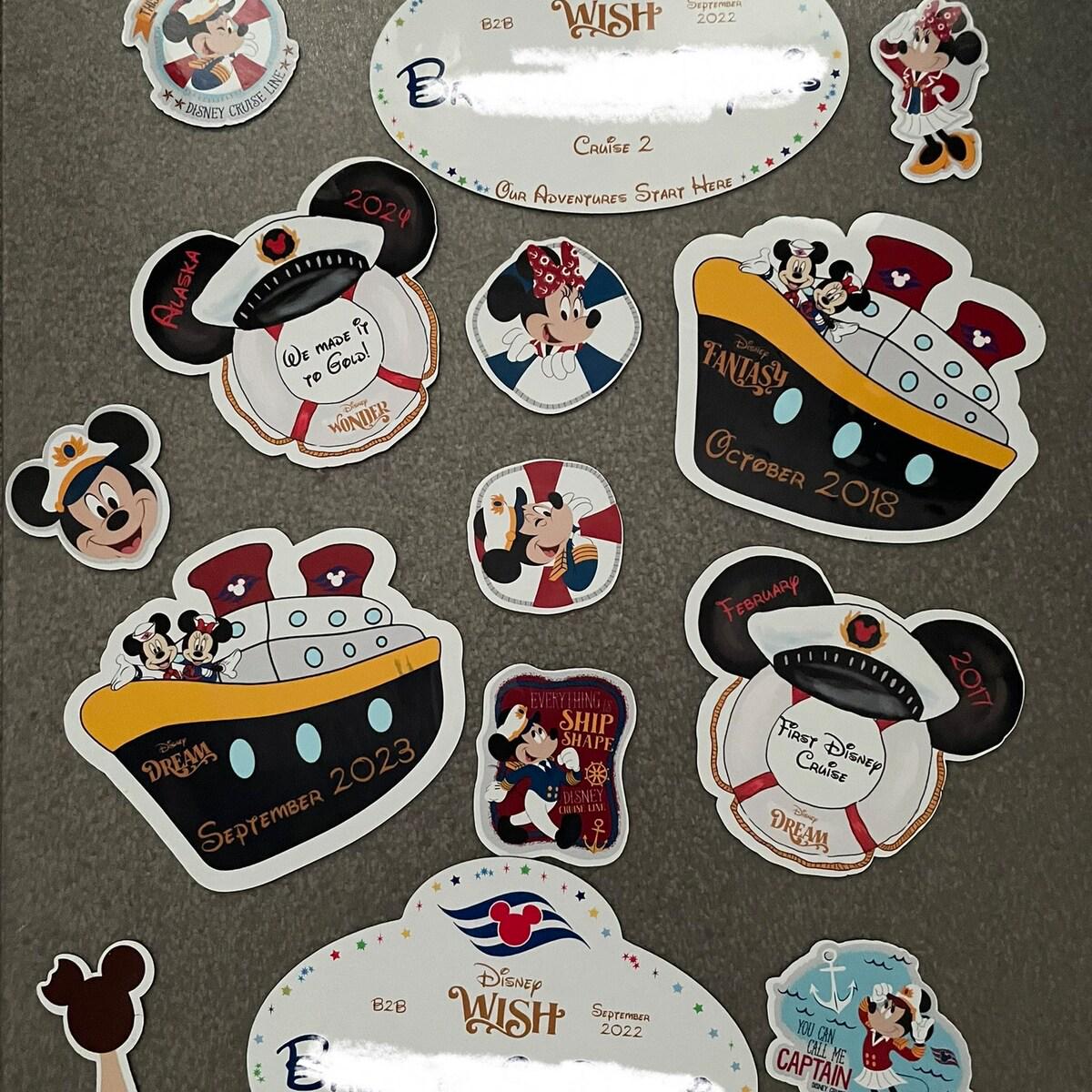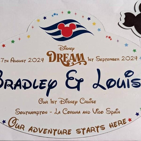 Personalised Disney cruise door magnet with cast member badge style design, waterproof and thick at 0.7mm! Perfect for decorating your stateroom cabin door with a fun, durable touch. This custom magnet features all Disney ship names, with options to add names, dates, and personal messages, making it an ideal gift for cruisers or a special touch for your own voyage. Crafted from premium quality materials with a waterproof upper layer, it’s built to withstand the elements and daily handling. The magnet's bold, vibrant design and thick construction ensure it stays securely in place while adding a personalized, whimsical Disney cruise sign to your stateroom door. Easy to attach and remove, this magnet is a charming way to make your cruise experience even more memorable. Dimensions and care instructions are included for your convenience. Create a unique, personalized cabin decoration that’s both functional and fun!