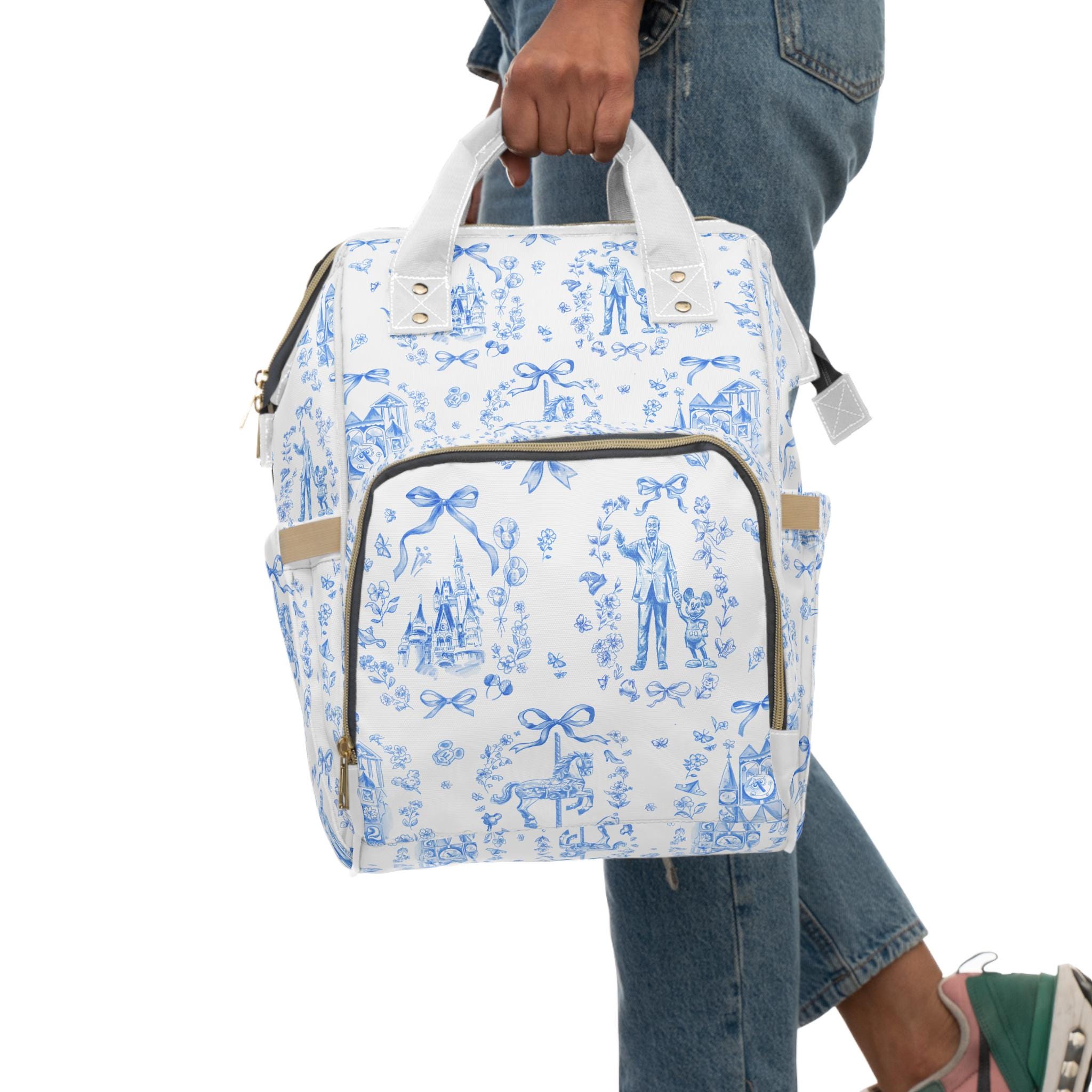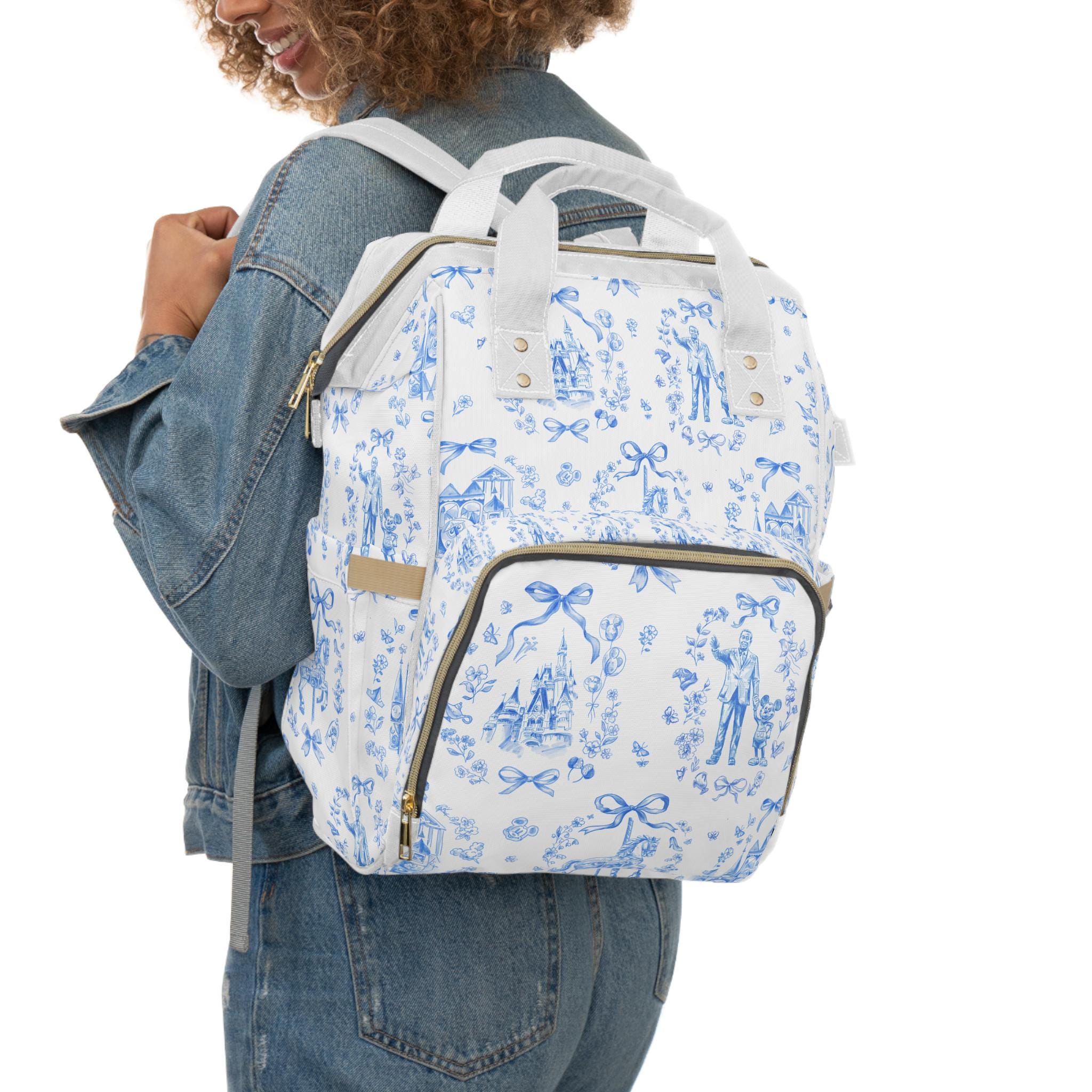 This Disney inspired park bag is the perfect multifunctional diaper backpack, featuring vibrant colors and additional space for all your essentials. It is tear-resistant and windproof, making it ideal for everyday use. The adjustable shoulder straps ensure comfort and stability, while the cream interior lining adds a touch of elegance. Perfect for Disney enthusiasts and parents on the go, this backpack is a must-have for family outings, theme park visits, and everyday adventures.