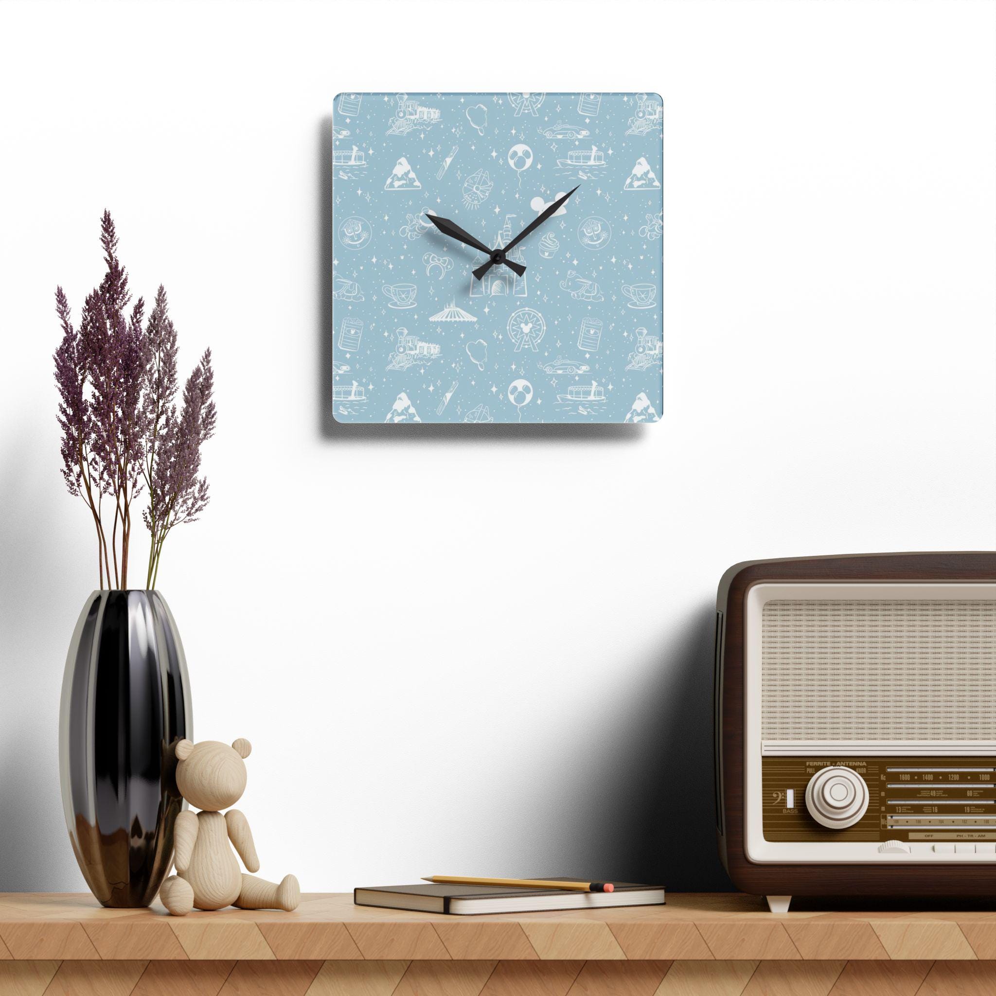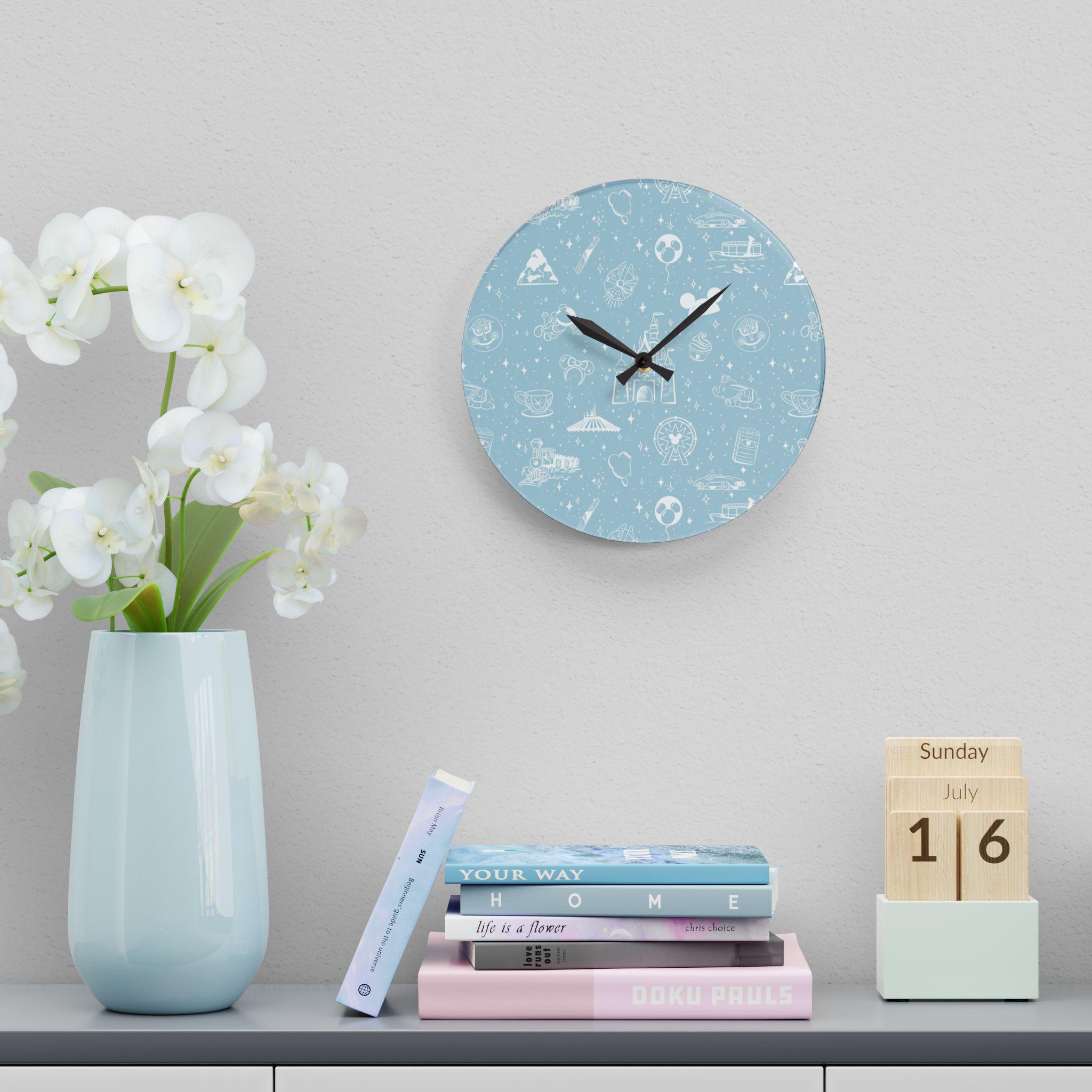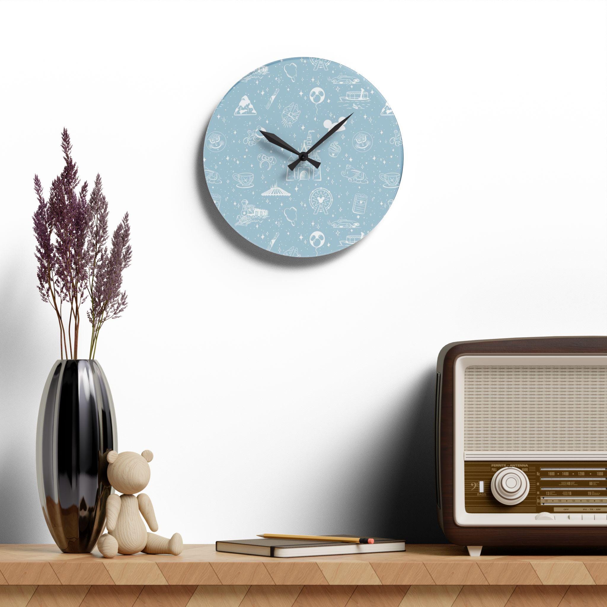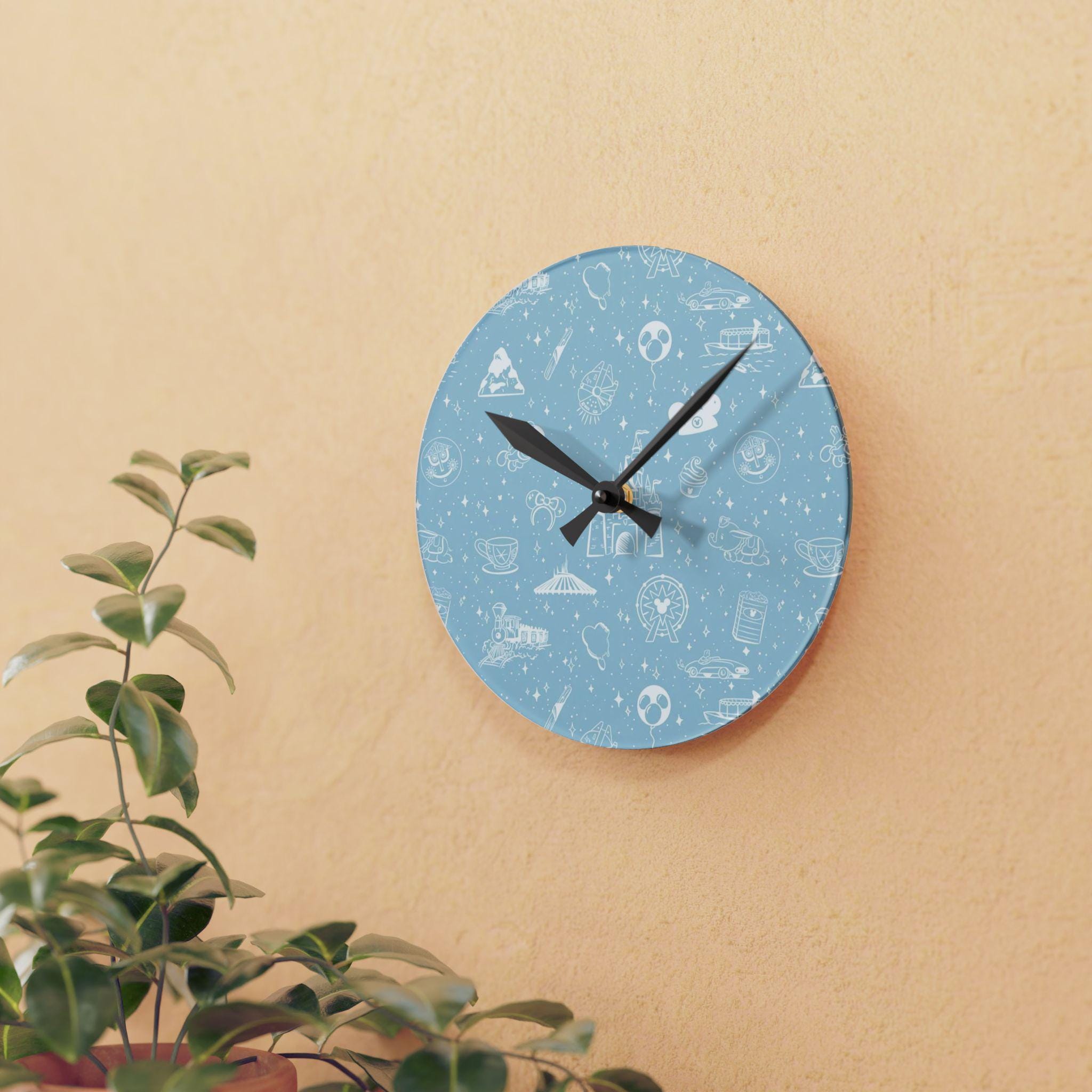 This whimsical acrylic wall clock is inspired by Disney park rides, featuring fun and cute designs. Perfect for adding a touch of magic to any room, this clock is ideal for Disney fans and those who appreciate whimsical decor. Great for gifting during birthdays, holidays, or as a housewarming present.