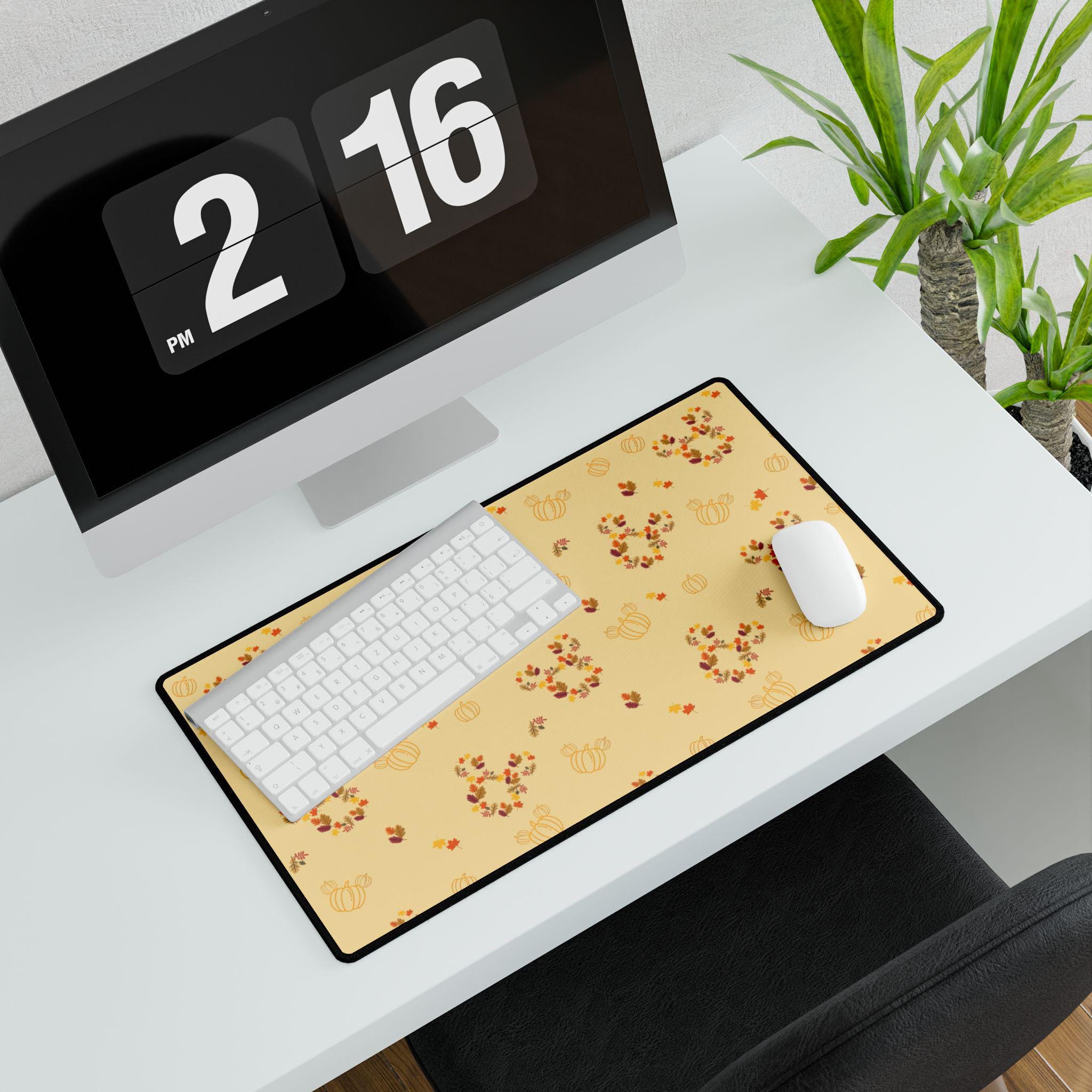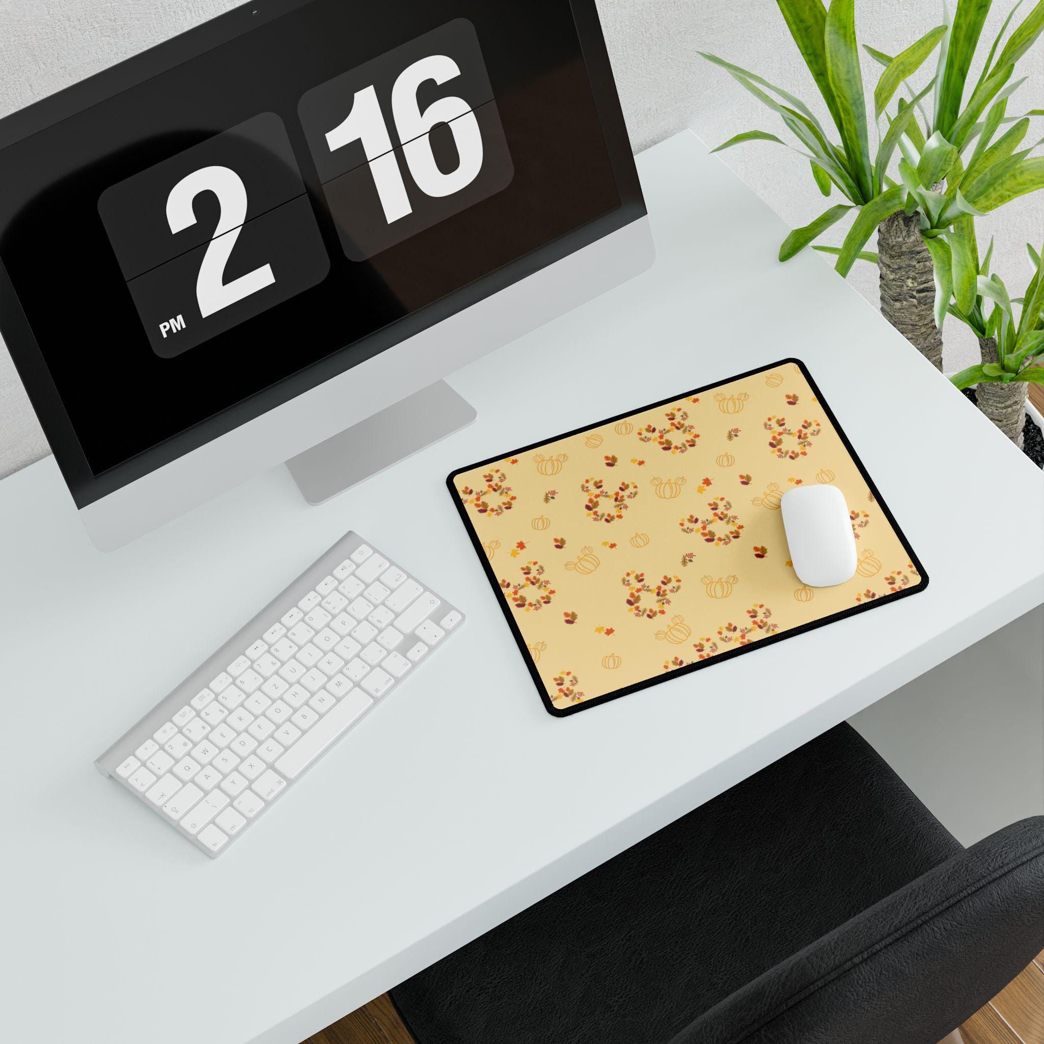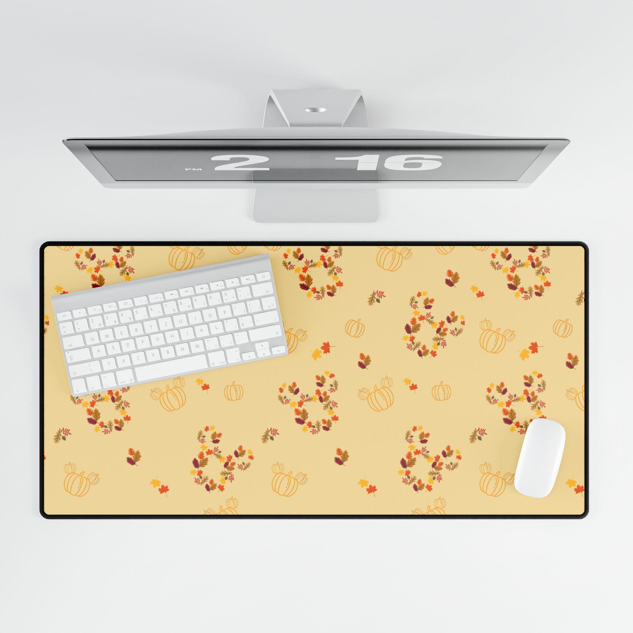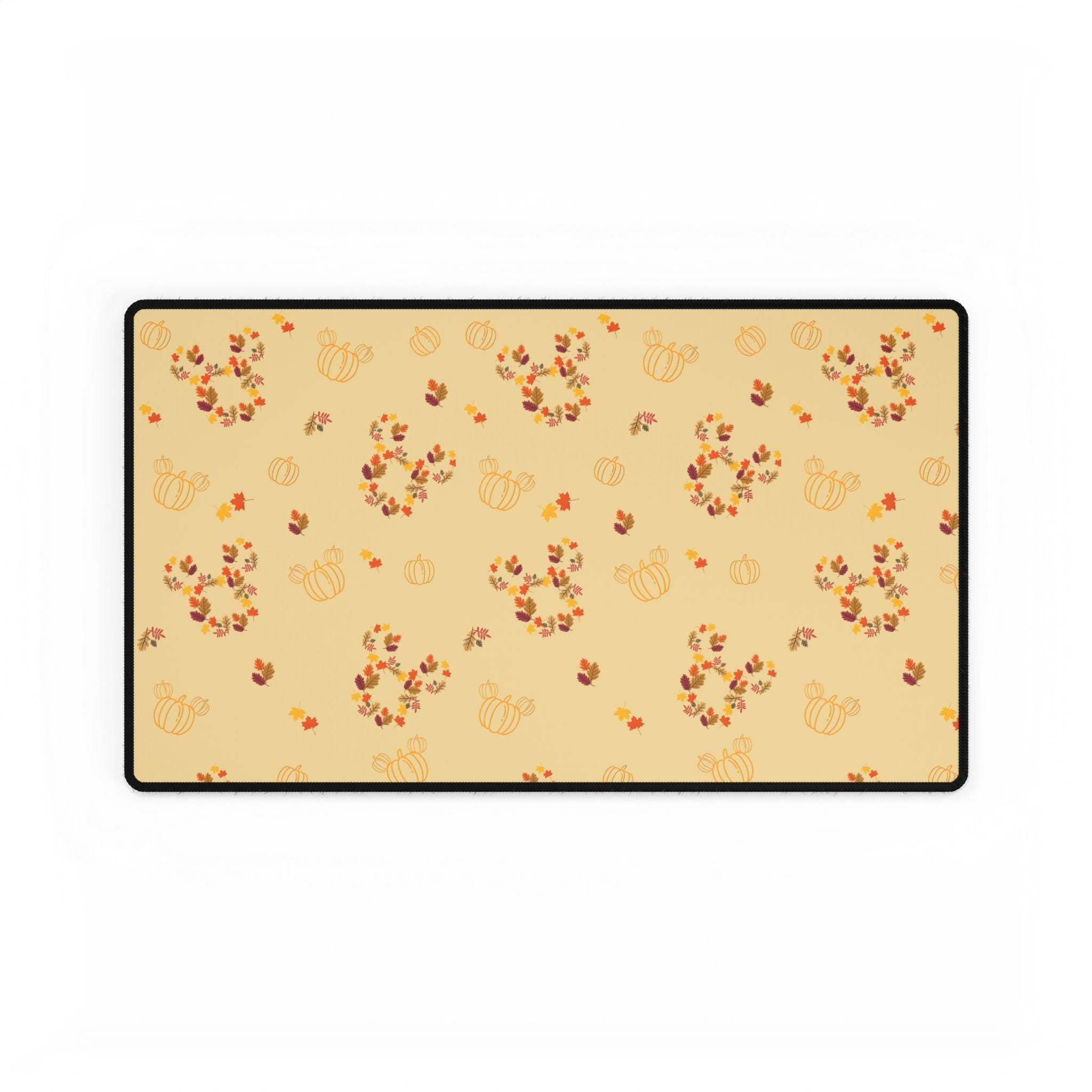 Disney Mickey Mouse cute fall Autumn-Inspired Desk Mats for cozy workspaces. Perfect for fall decor, home office accessories, personalized gifts, and seasonal office decorations. Ideal for Disney lovers and those who enjoy seasonal themes. Relevant for fall, Halloween, Thanksgiving, and any autumn celebrations.