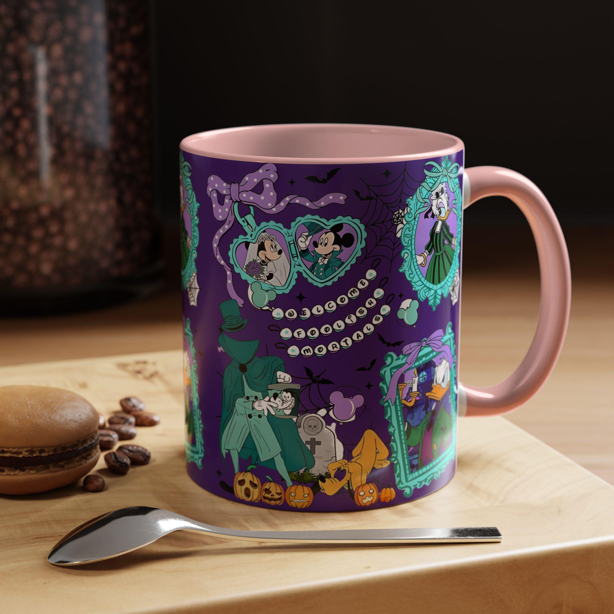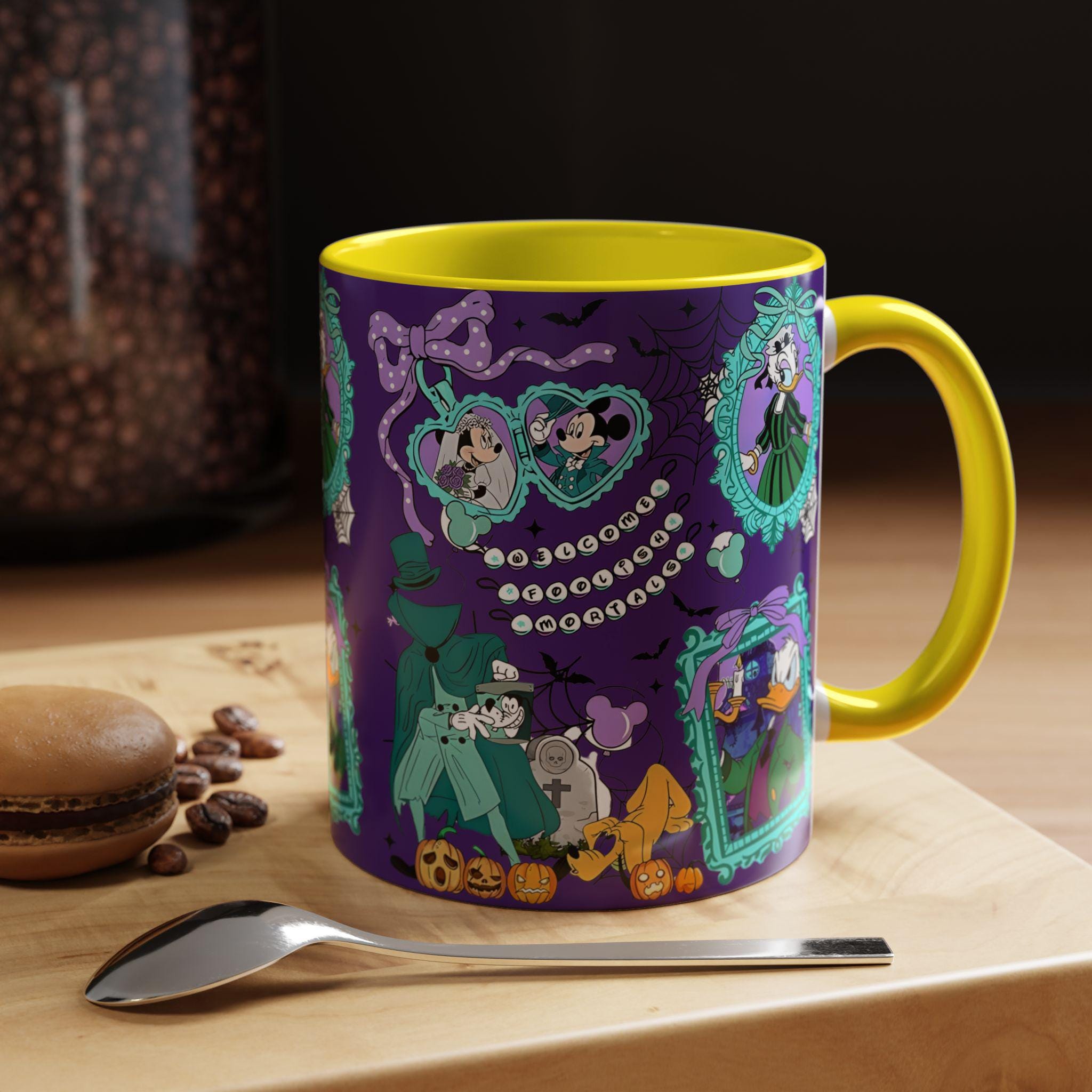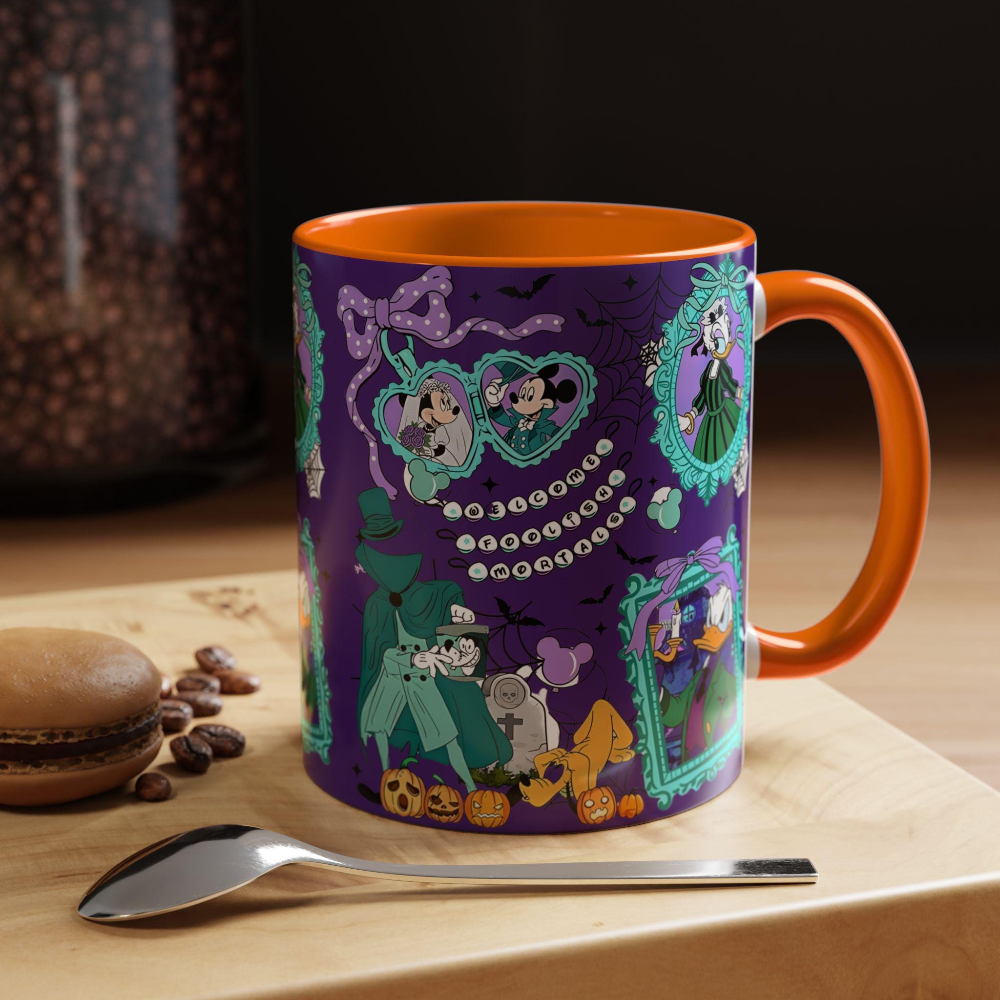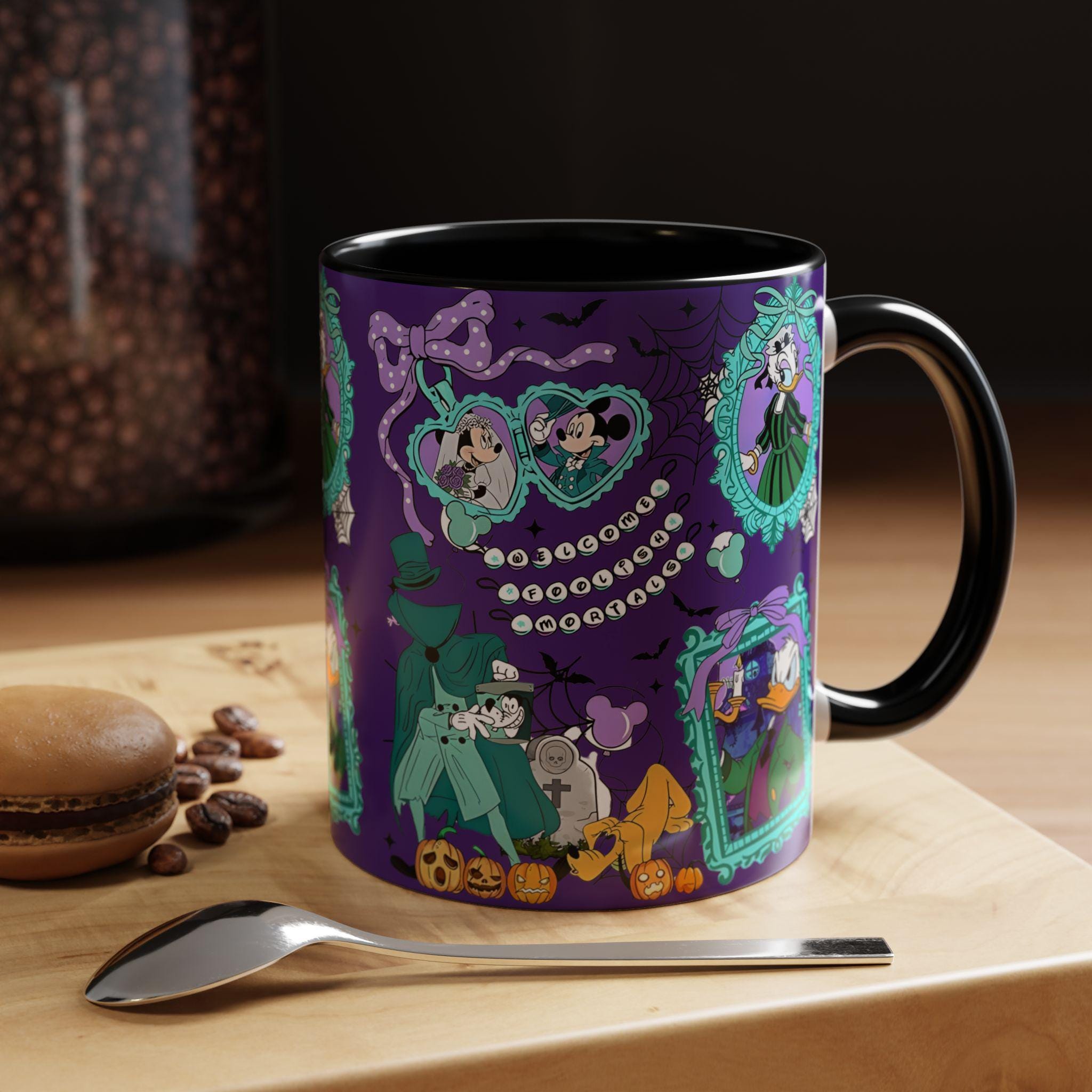 This Disney-inspired haunted mansion phantom manor mug is perfect for Halloween. It gives off a cozy and fun vibe, making it ideal for Halloween enthusiasts looking to add a touch of spookiness to their morning coffee routine. The vibrant colors and eye-catching design make it a standout piece during the holiday season.