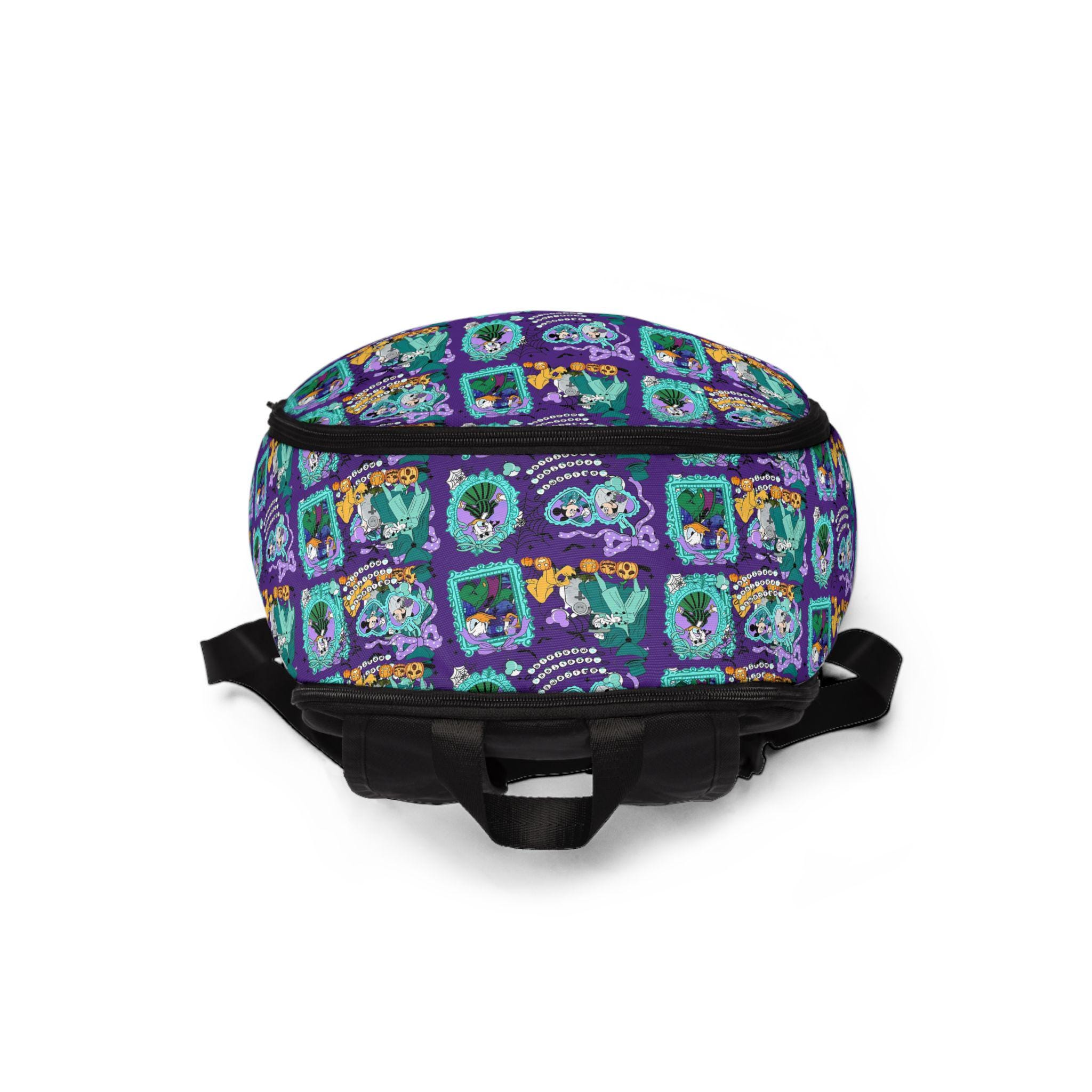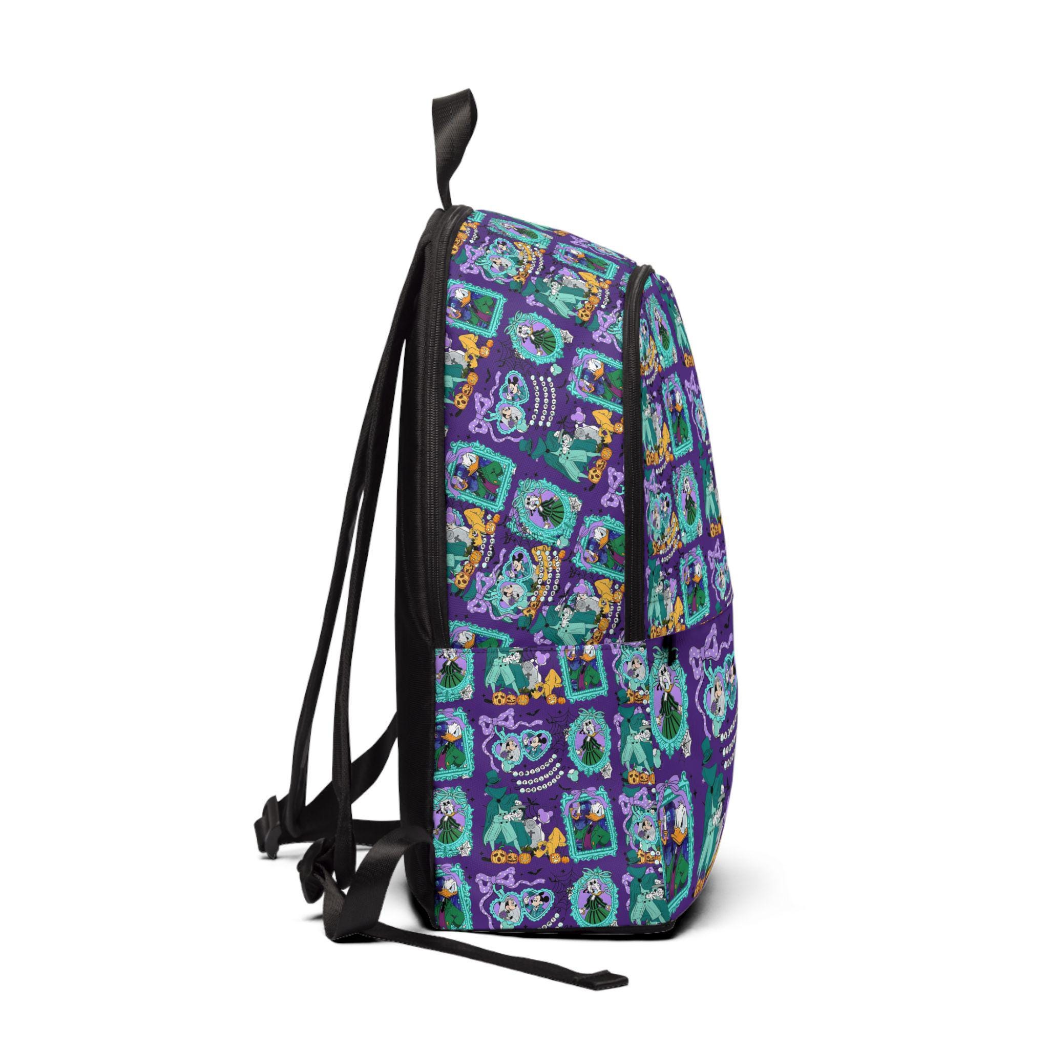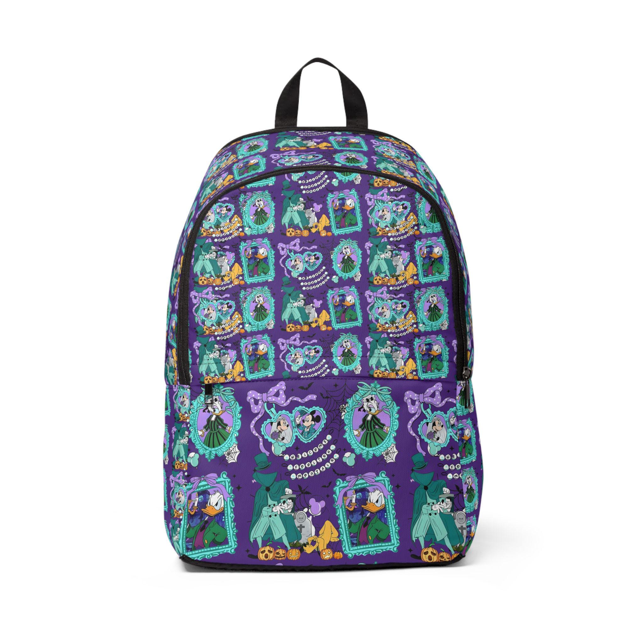 Haunted mansion phantom manor Halloween inspired backpack, perfect for Disney enthusiasts. This cute and fun backpack is made of 100% soft nylon canvas, making it durable, waterproof, and tear resistant. Featuring padded back and shoulder straps for extra comfort and breathability, this backpack has three spacious pockets with durable zipper closures. Lightweight and waterproof, this backpack is ideal for everyday use and Halloween celebrations.