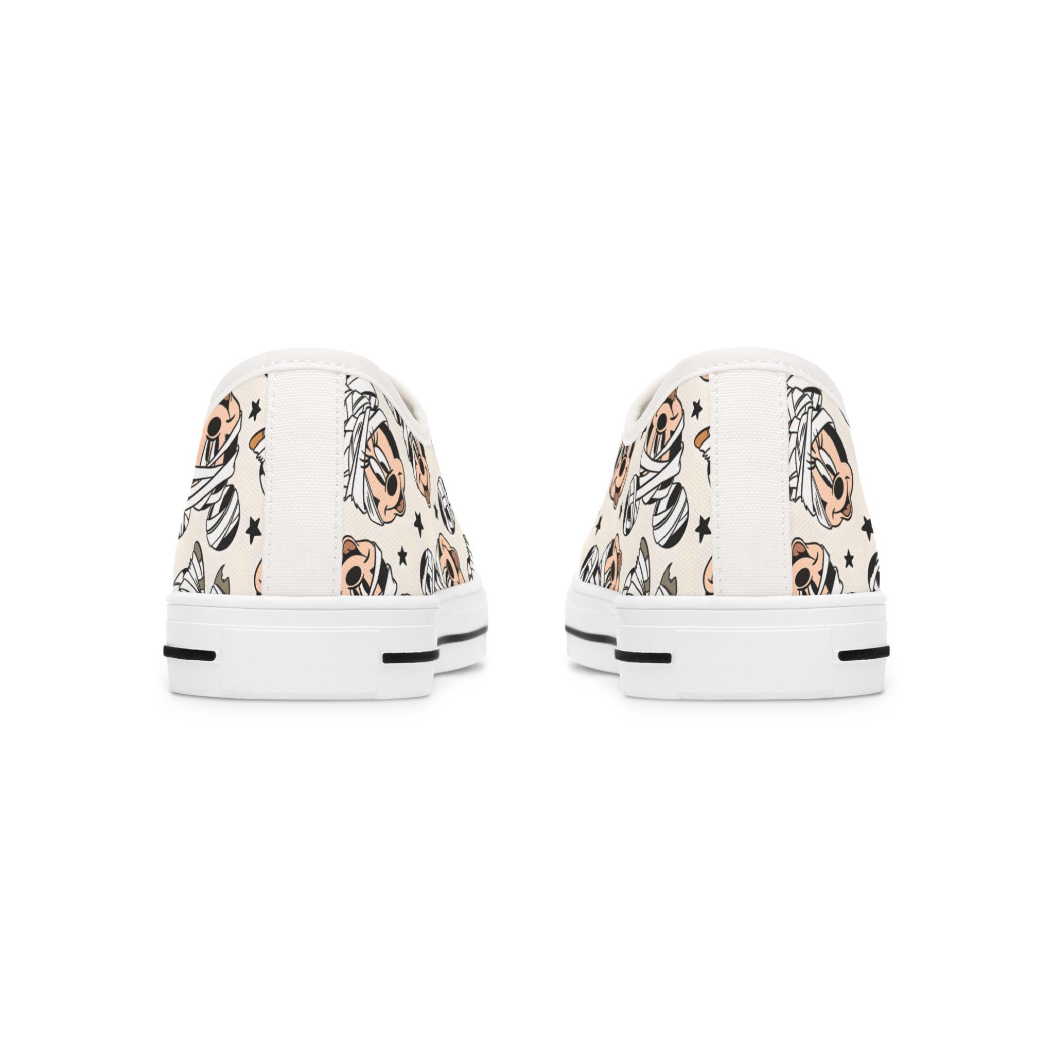 These cute Mickey and Minnie Disney Halloween inspired low top sneaker shoes are perfect for Disney bounding at the park. The full wraparound print on the left side, right side, and tongue captures the magic of the holiday season. Made with breathable polyester canvas and PU leather decoration, they feature hi-poly deodorant memory foam insoles and an EVA shock-absorbing insole for ultimate comfort and support. Target audience includes Disney fans and those looking to add a touch of whimsy to their everyday style.
