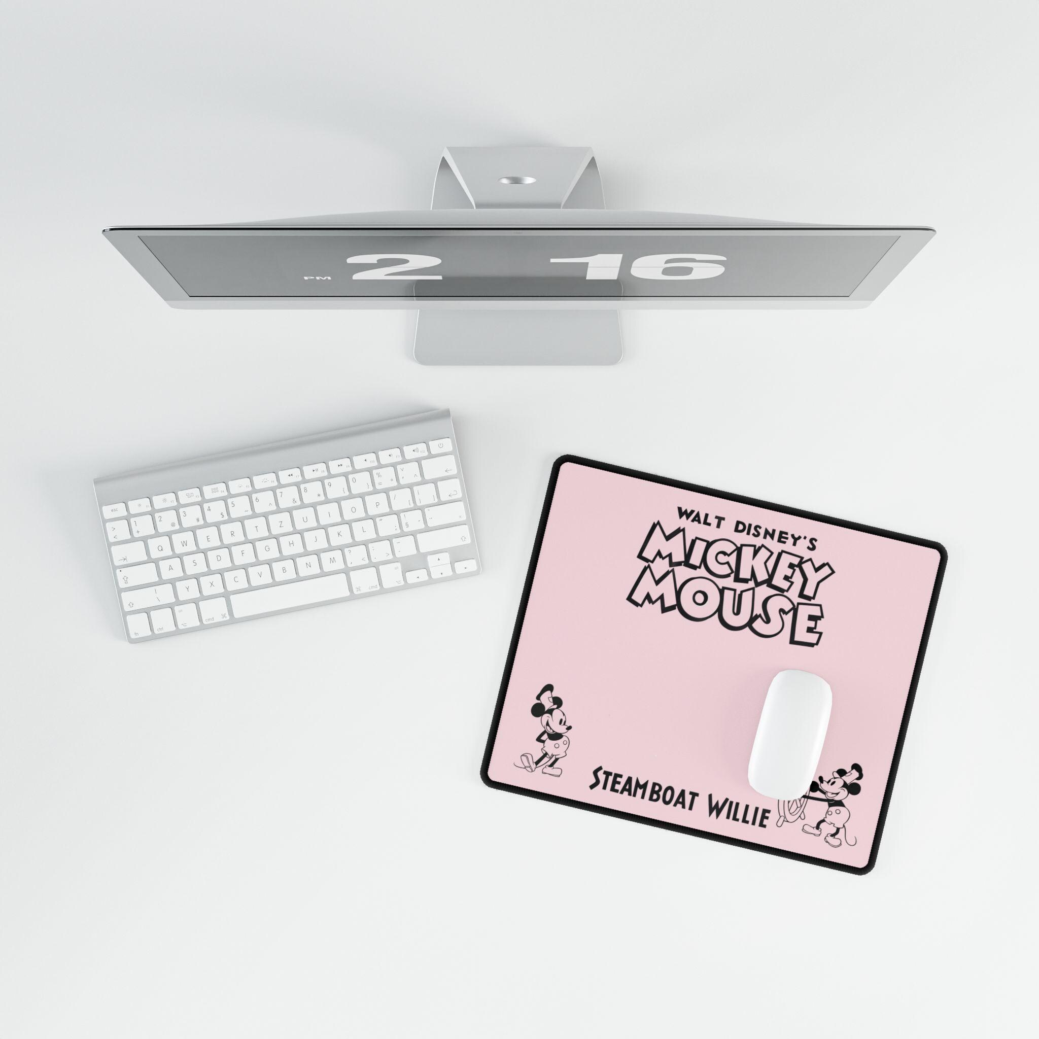 Elevate your home office with this vibrant Mickey Mouse Steamboat Willie Mouse Pad. Perfect for computer accessories, desk organizers, and gaming mats. Ideal for Disney fans and those who appreciate classic cartoons. Great for back-to-school, Christmas, birthdays, or just as a fun desk accessory.