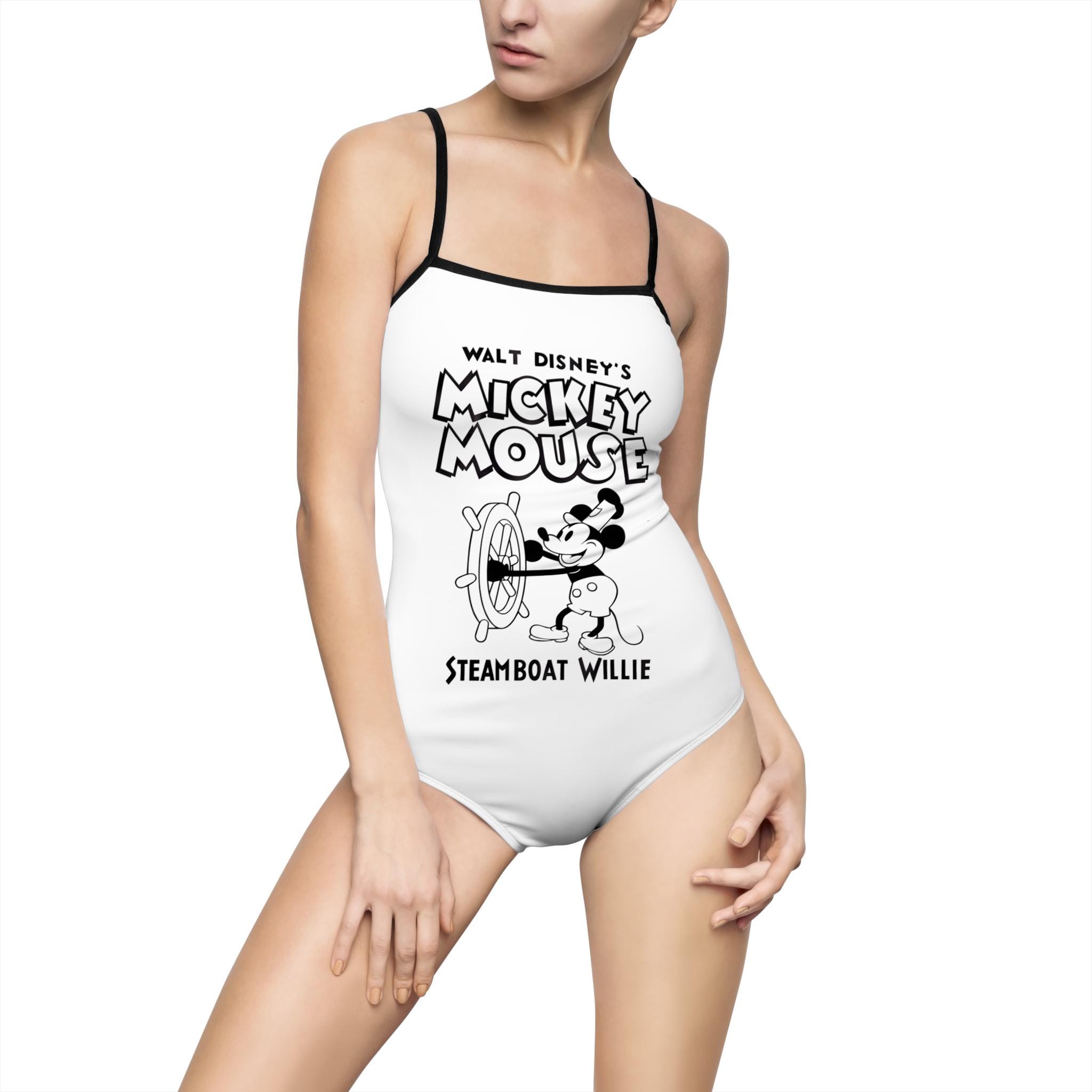 Get ready for some fun in the sun with this Mickey Mouse Steamboat Willie Classic Women's Swimsuit. Perfect for a cute beachwear look or a Disney pool party outfit. Ideal for Disney fans looking to make a statement this summer.
