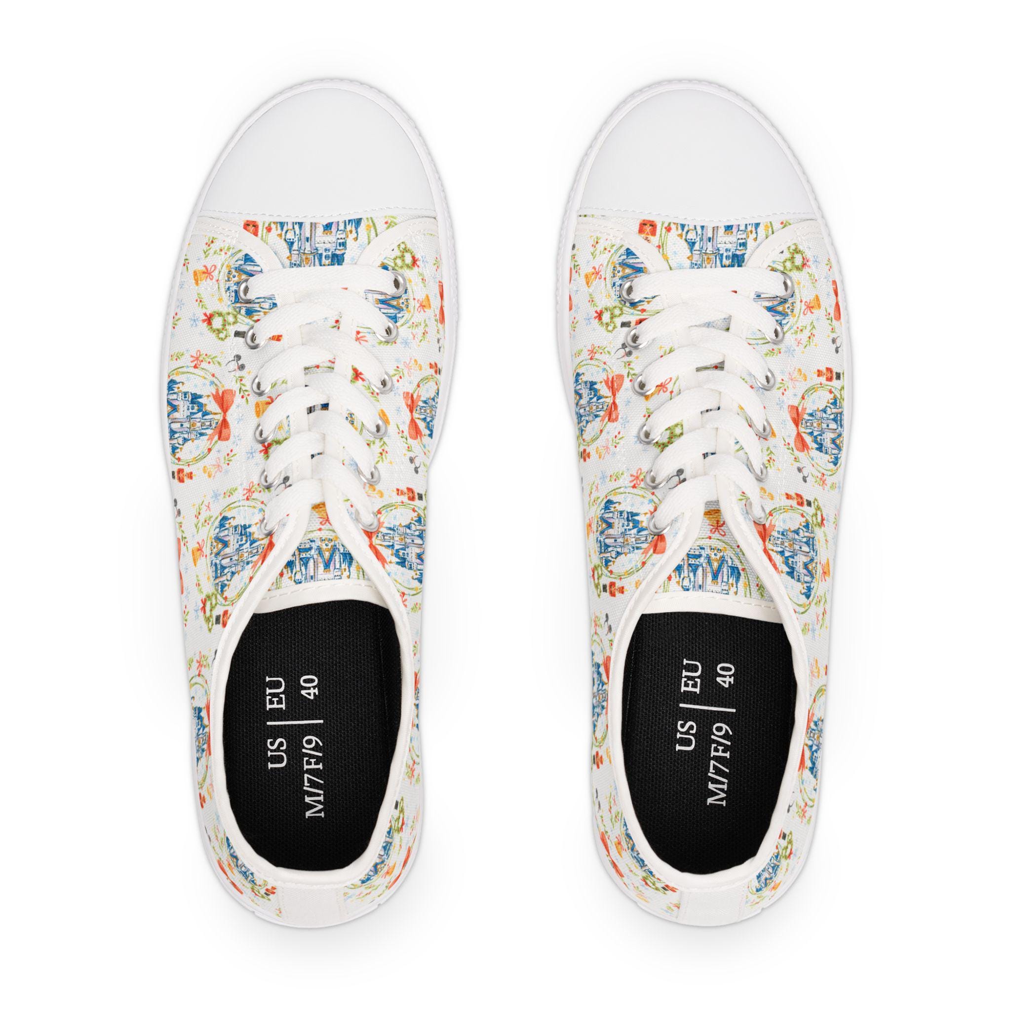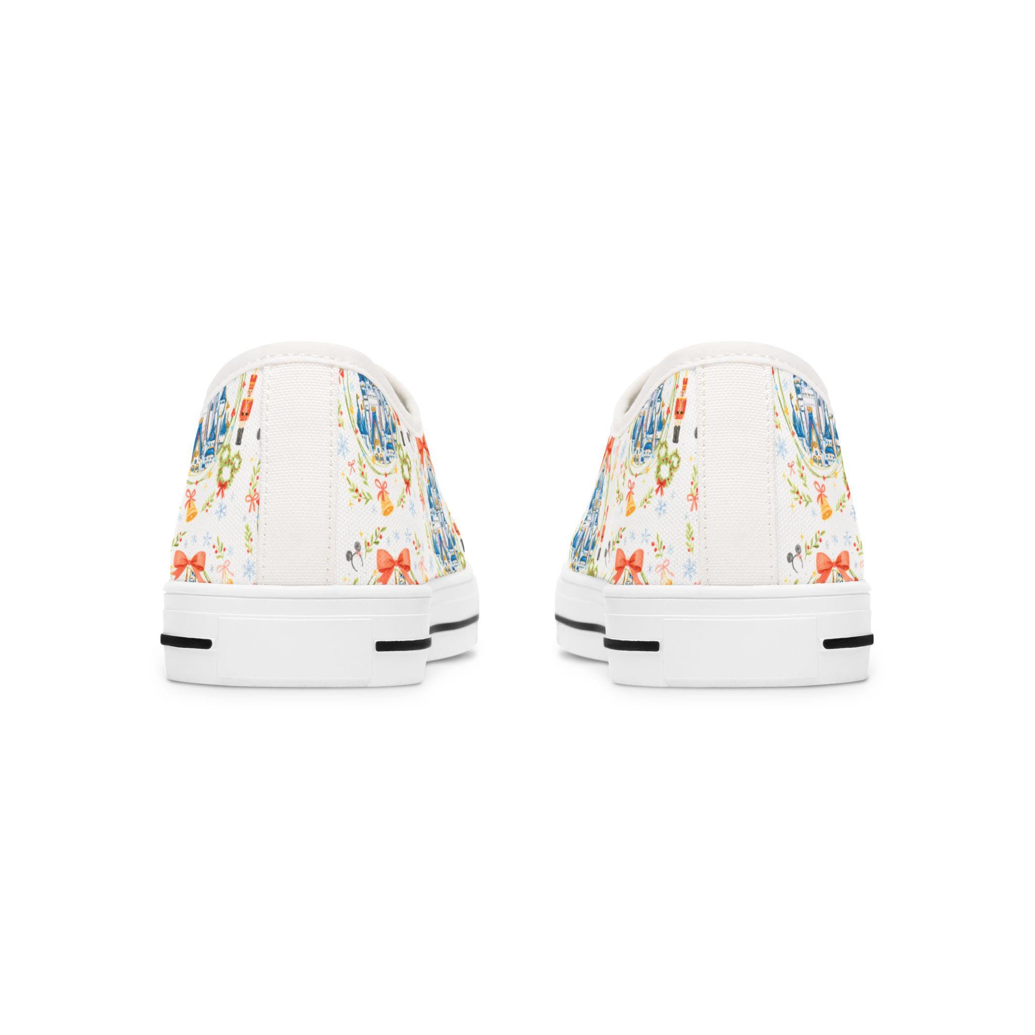 These cute Disney castle inspired Christmas themed Sneakers are the perfect casual shoes for everyday wear. The colorful floral design adds a fun and unique touch to any outfit. Ideal for women who love Disney and want to add a pop of color to their wardrobe. Great for wearing during the holiday season or as a gift idea.