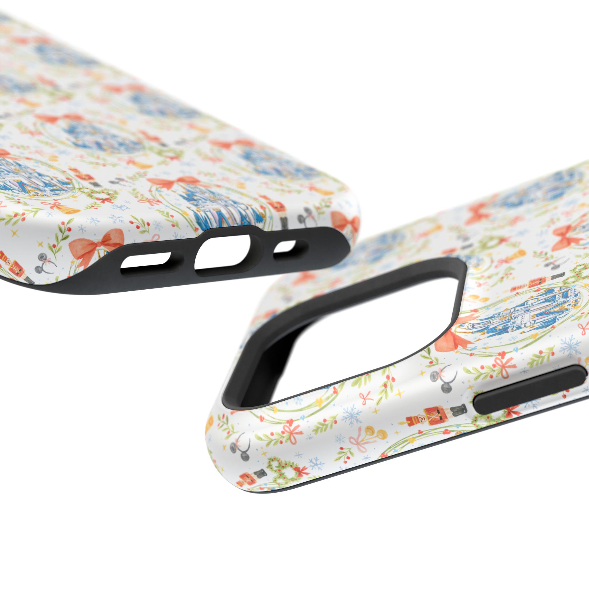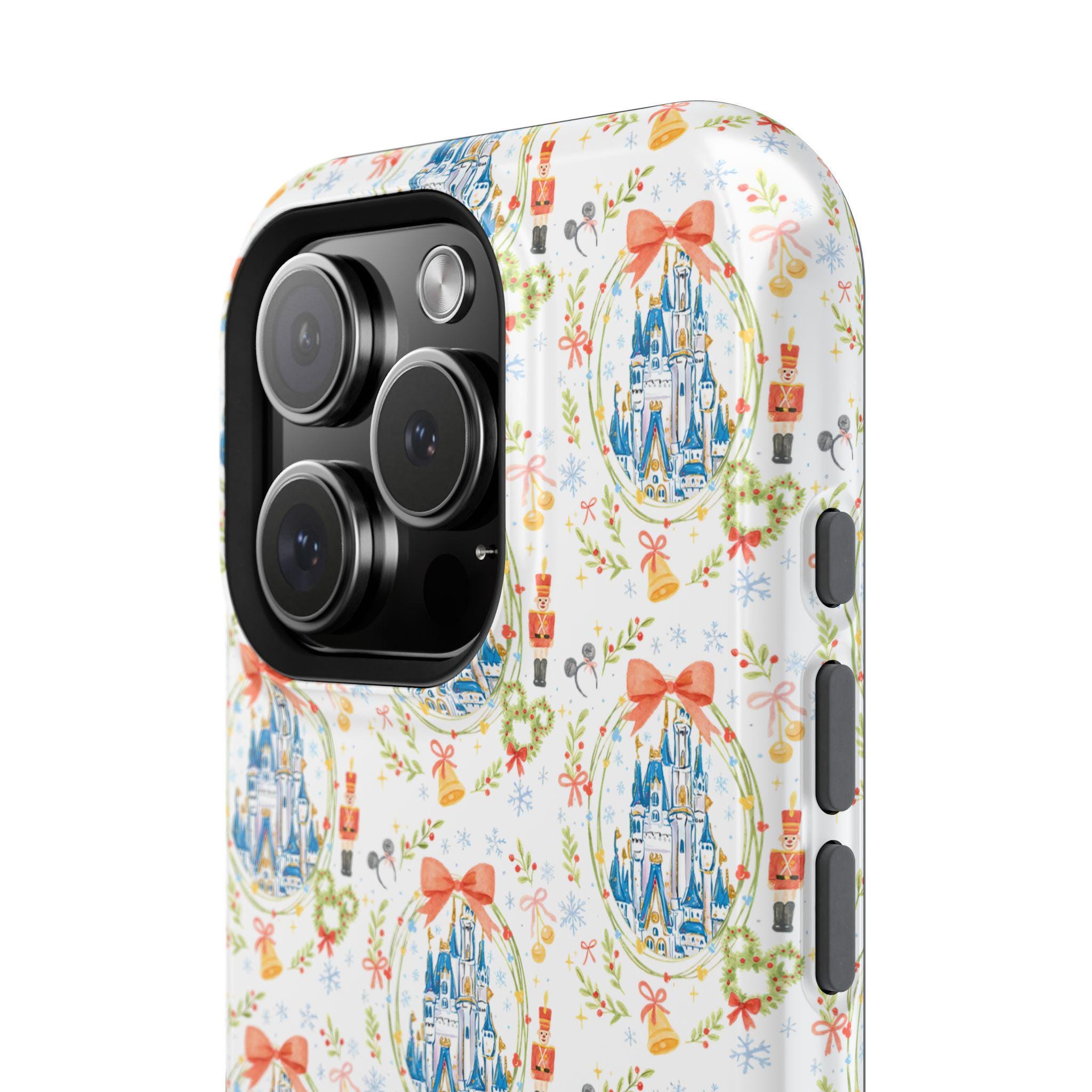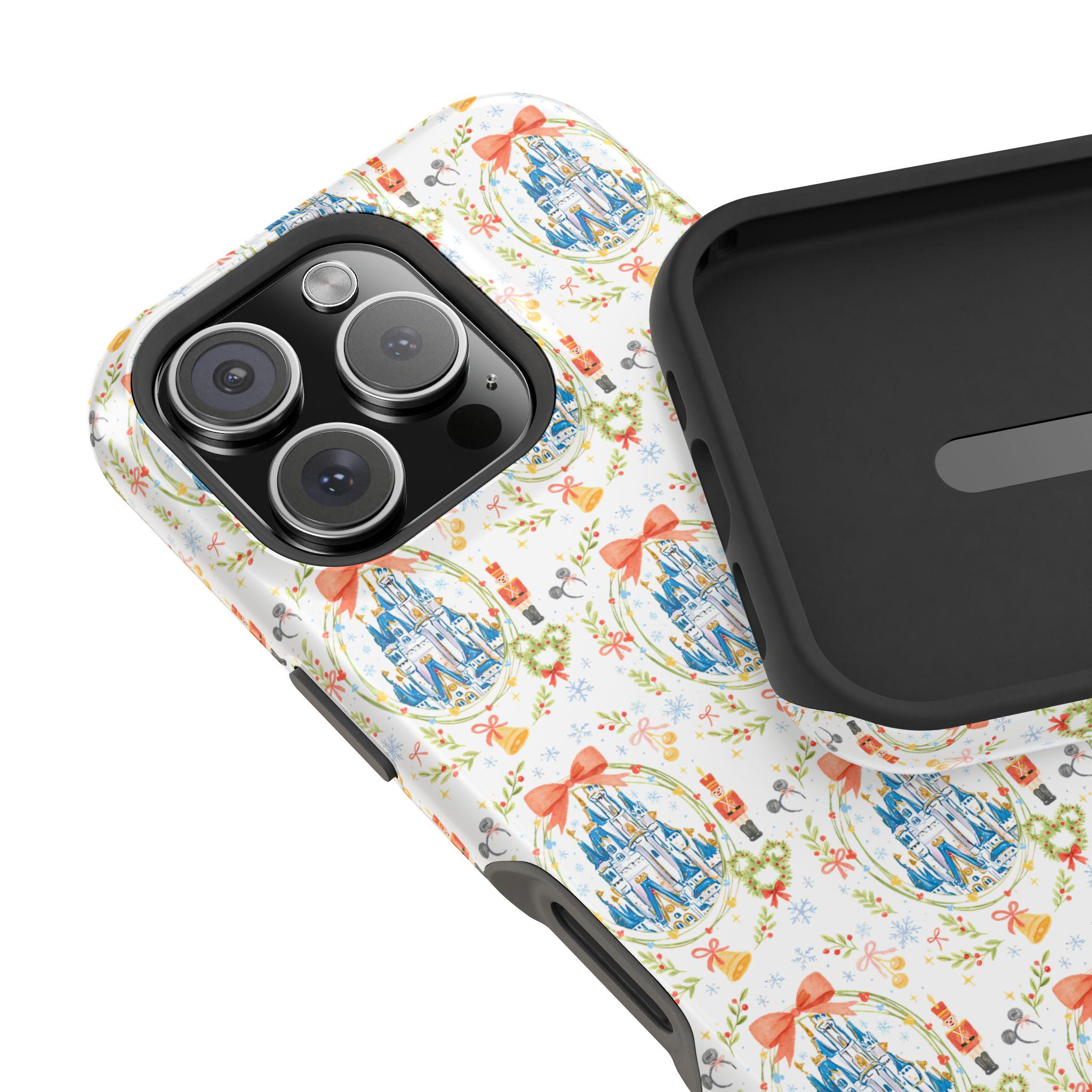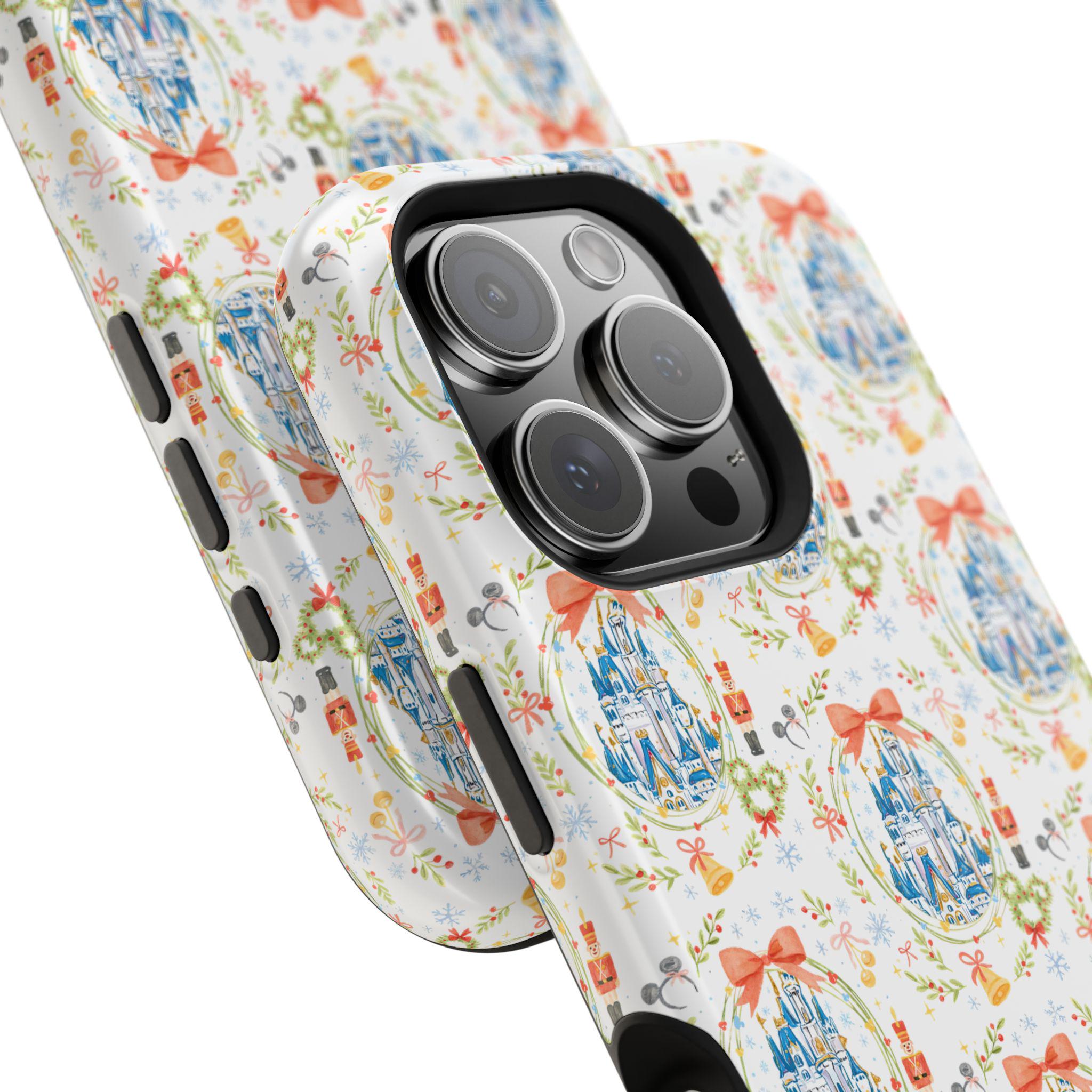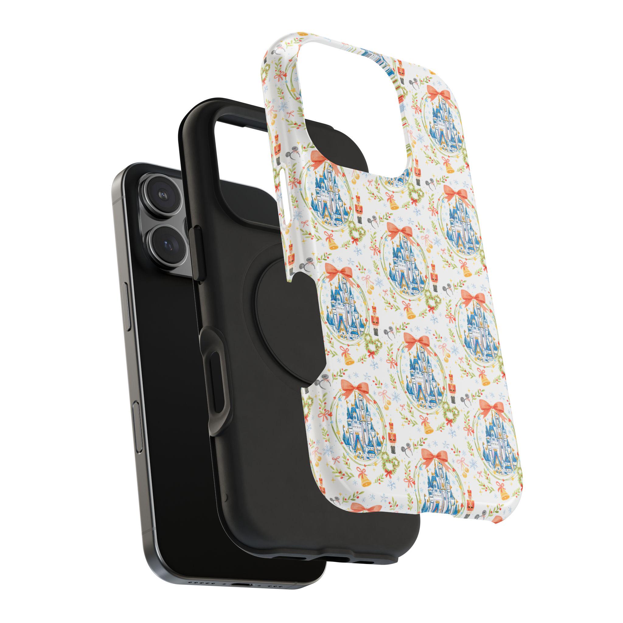 This Whimsical Castle Phone Case brings a magical and festive Disney castle theme to your phone, perfect for the holiday season. It is a unique accessory that offers impact-resistant protection and a fun touch to your device. Ideal for Disney fans and anyone looking to add a touch of whimsy to their phone, this phone case is perfect for Christmas and other celebrations.