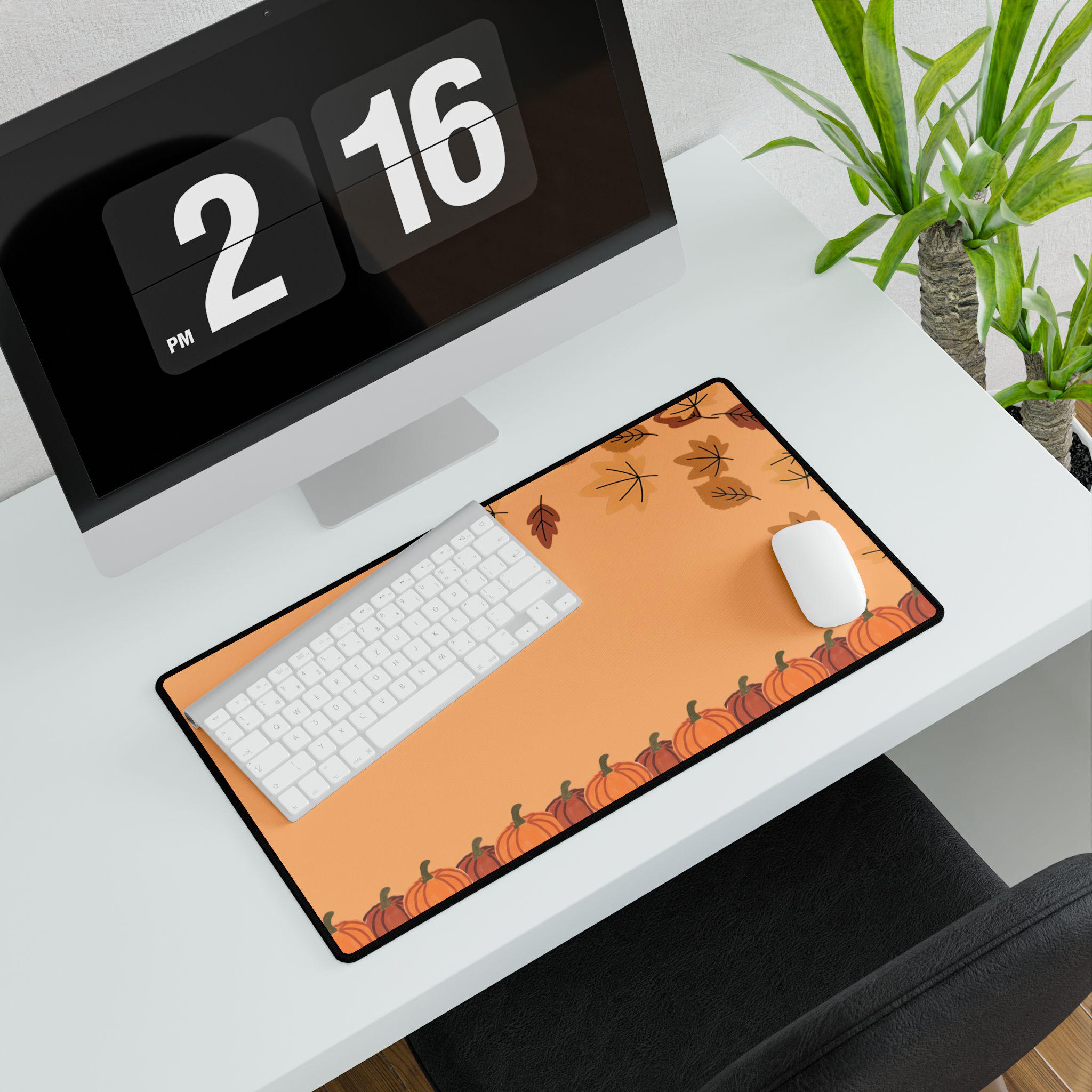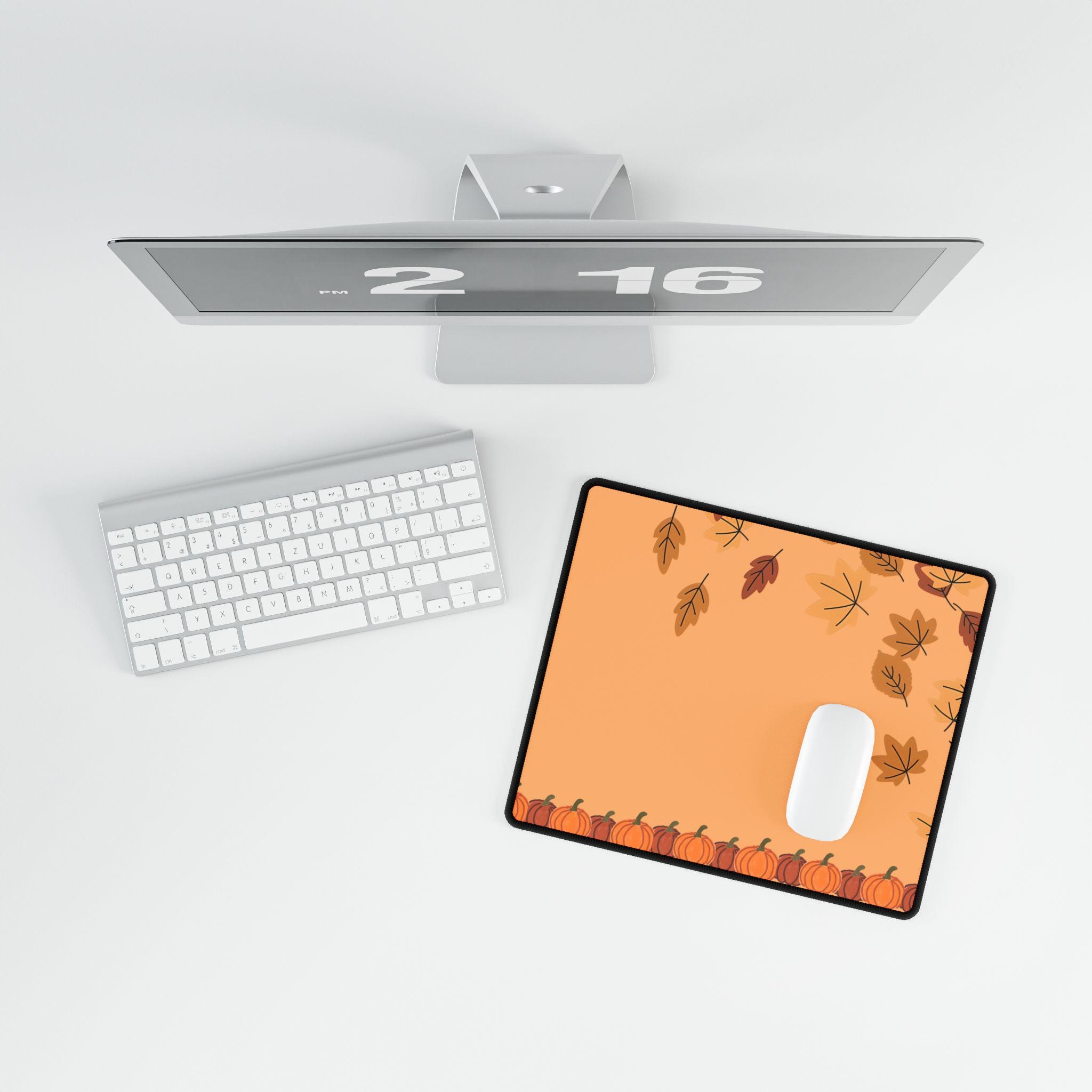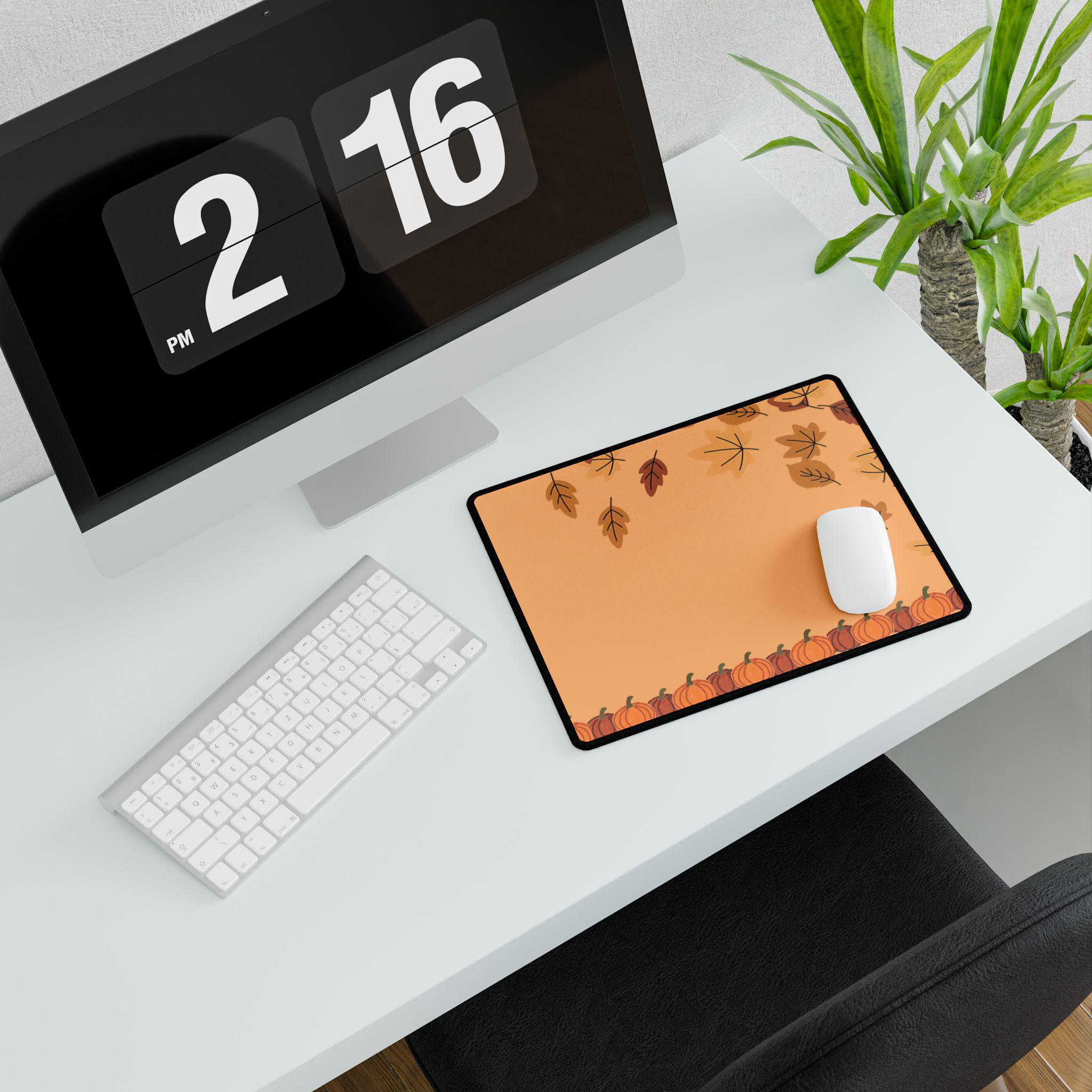 Get into the Autumn spirit with this vibrant Autumn Vibes Mousepad. Perfect for Halloween, Fall, and Thanksgiving, this mousepad adds a cute seasonal touch to your desk. Ideal for those looking for a fun and festive work accessory.