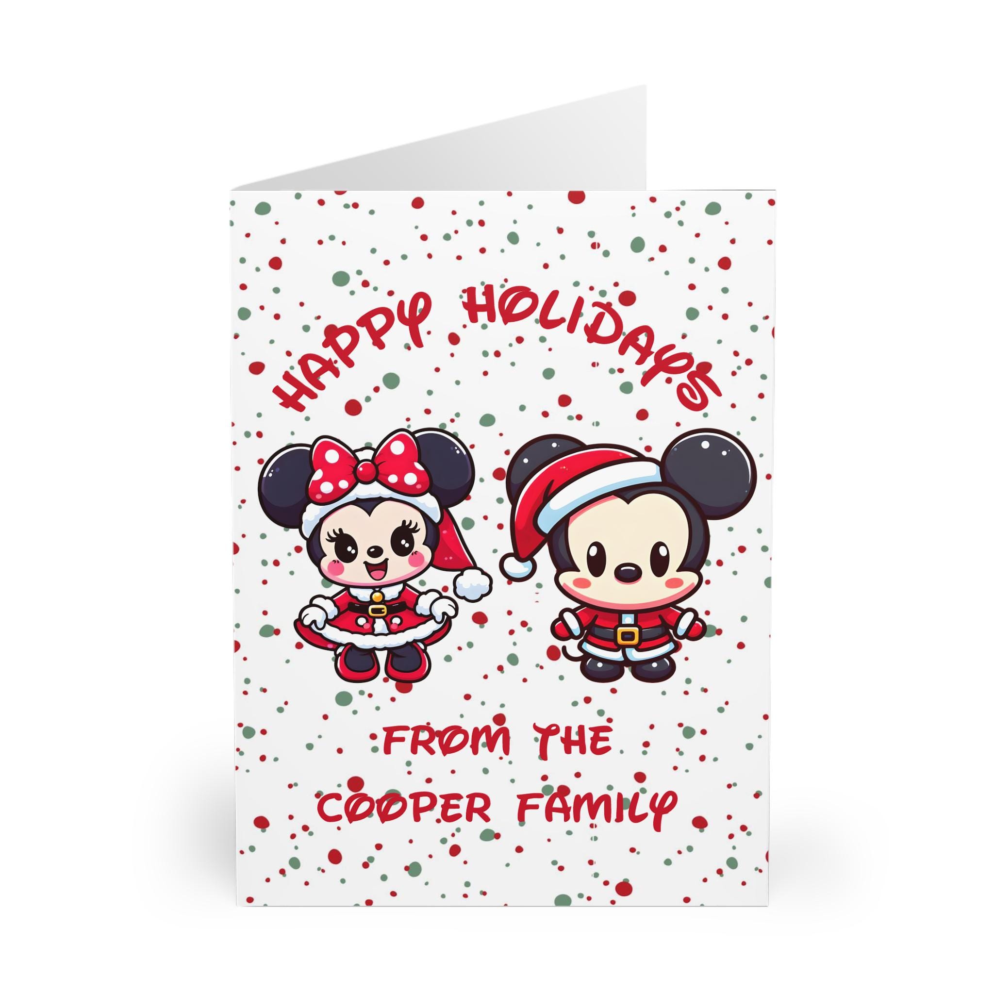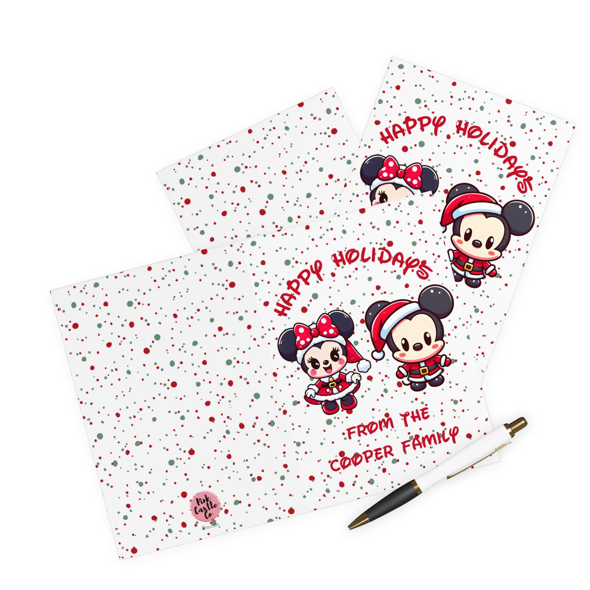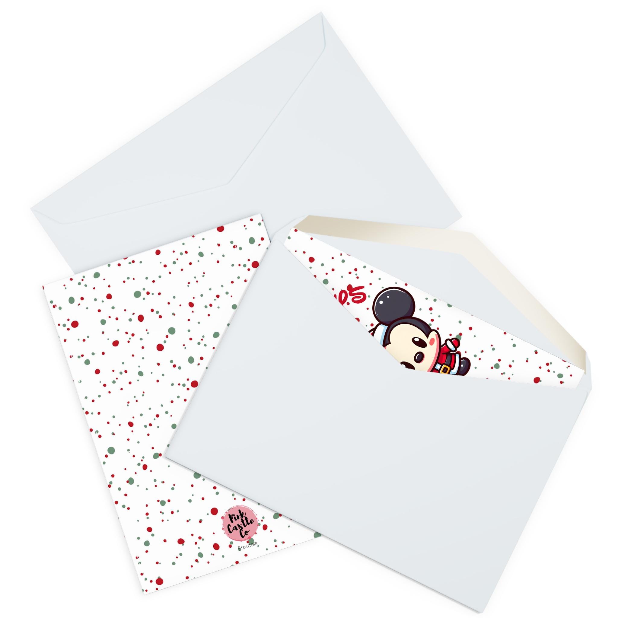 Spread seasonal cheer with this 5 pack of Christmas greeting cards featuring cute Disney-inspired Minnie and Mickey Santa designs. Perfect for sending holiday wishes to friends and family.