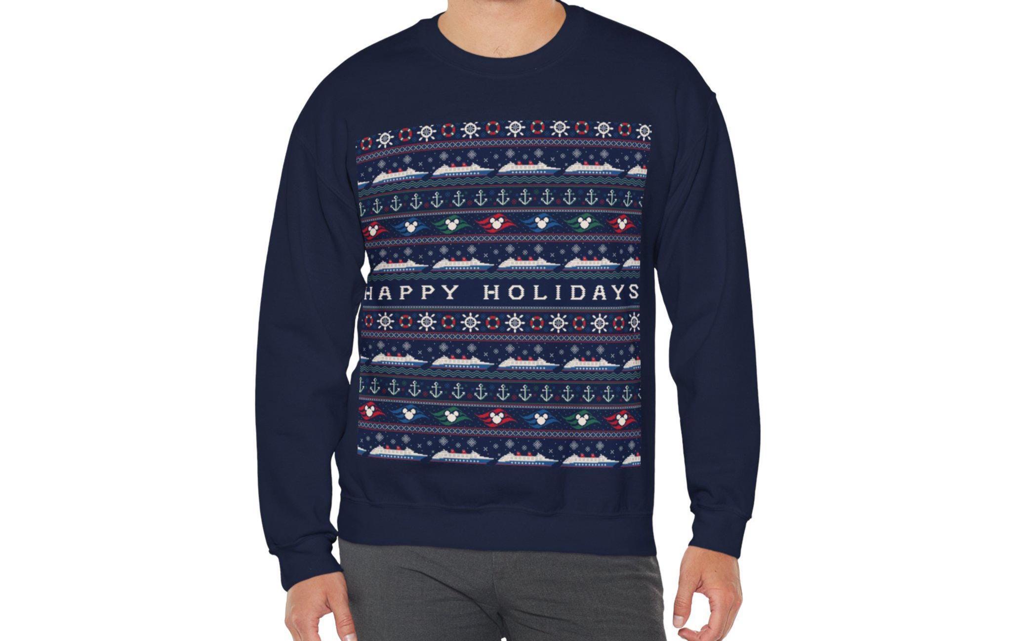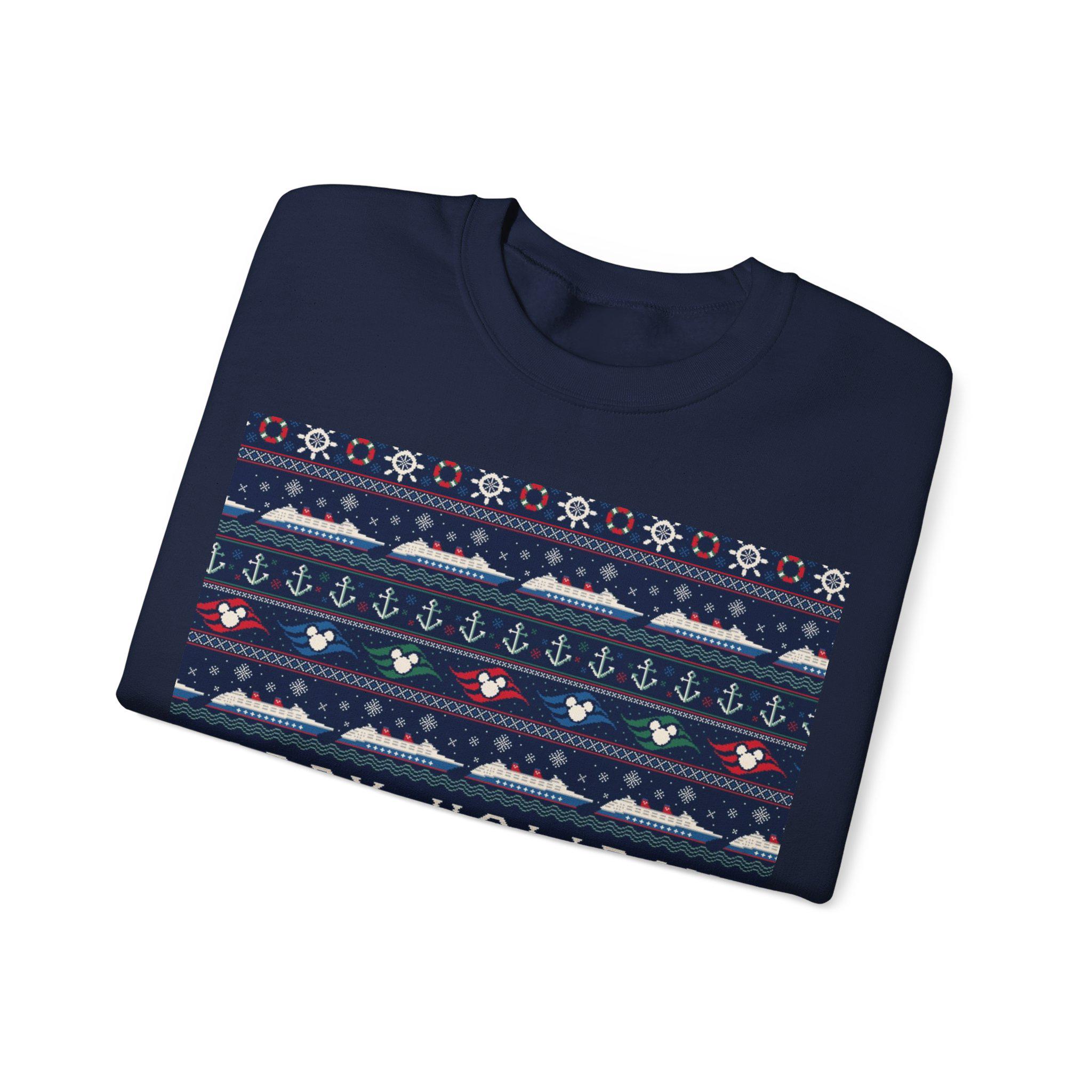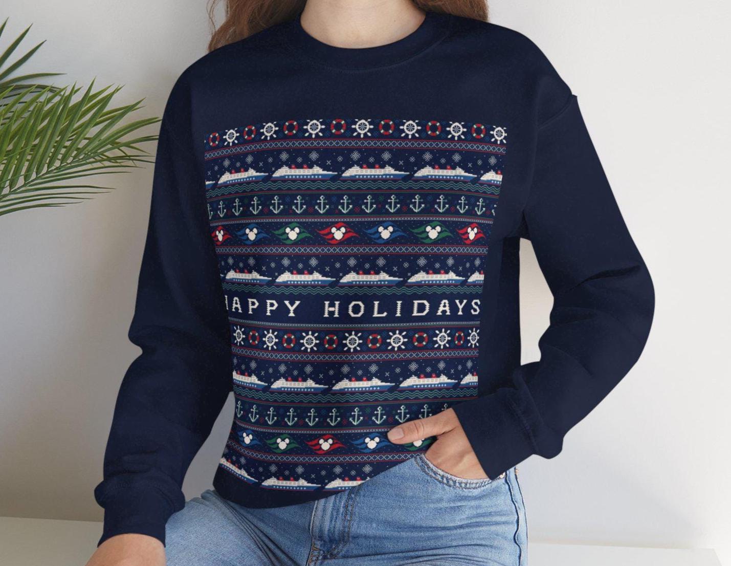 Stay cozy and festive with this Happy Holidays Disney Cruise Line inspired ugly knitted sweater jumper Unisex Crewneck Sweatshirt. Perfect for holiday celebrations and seasonal layering, this sweatshirt is a great gift for friends looking for a cozy winter wear option.
