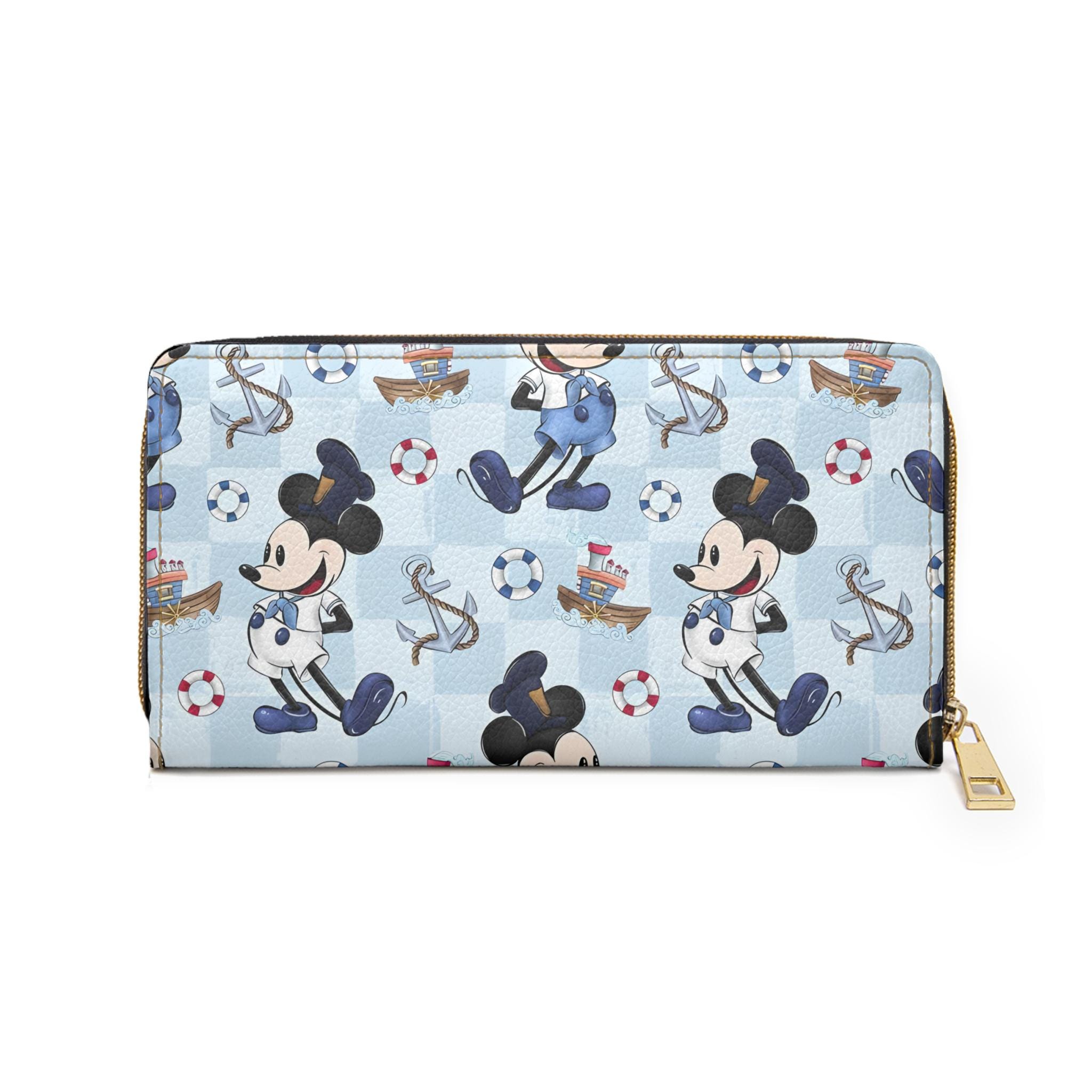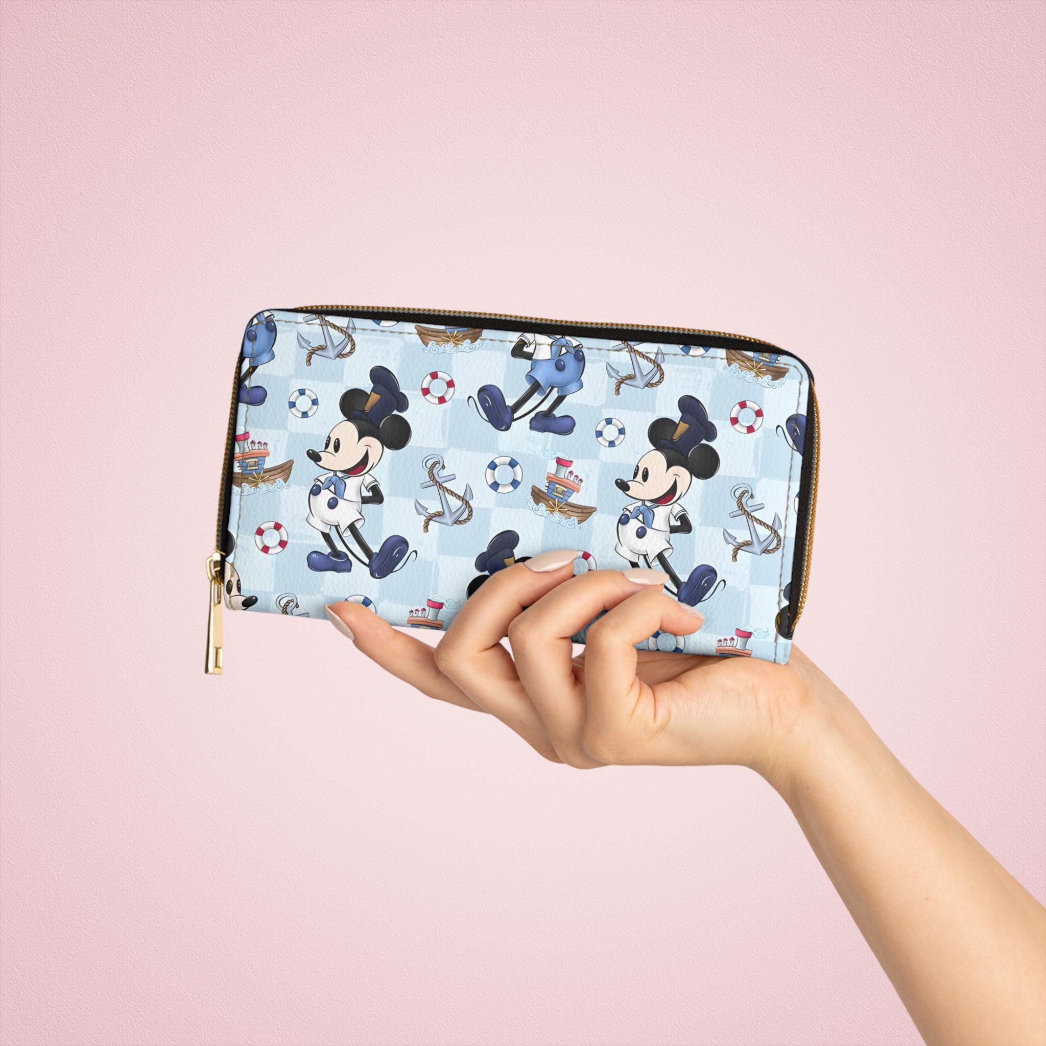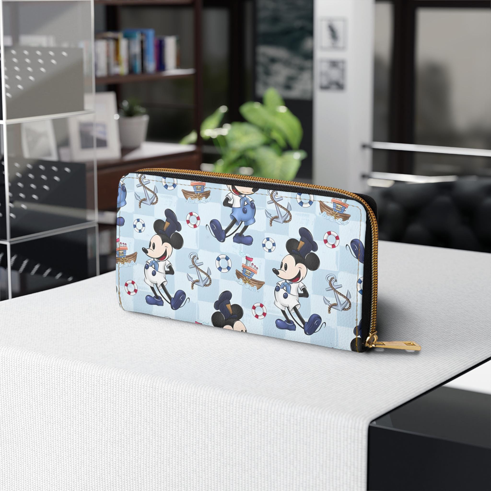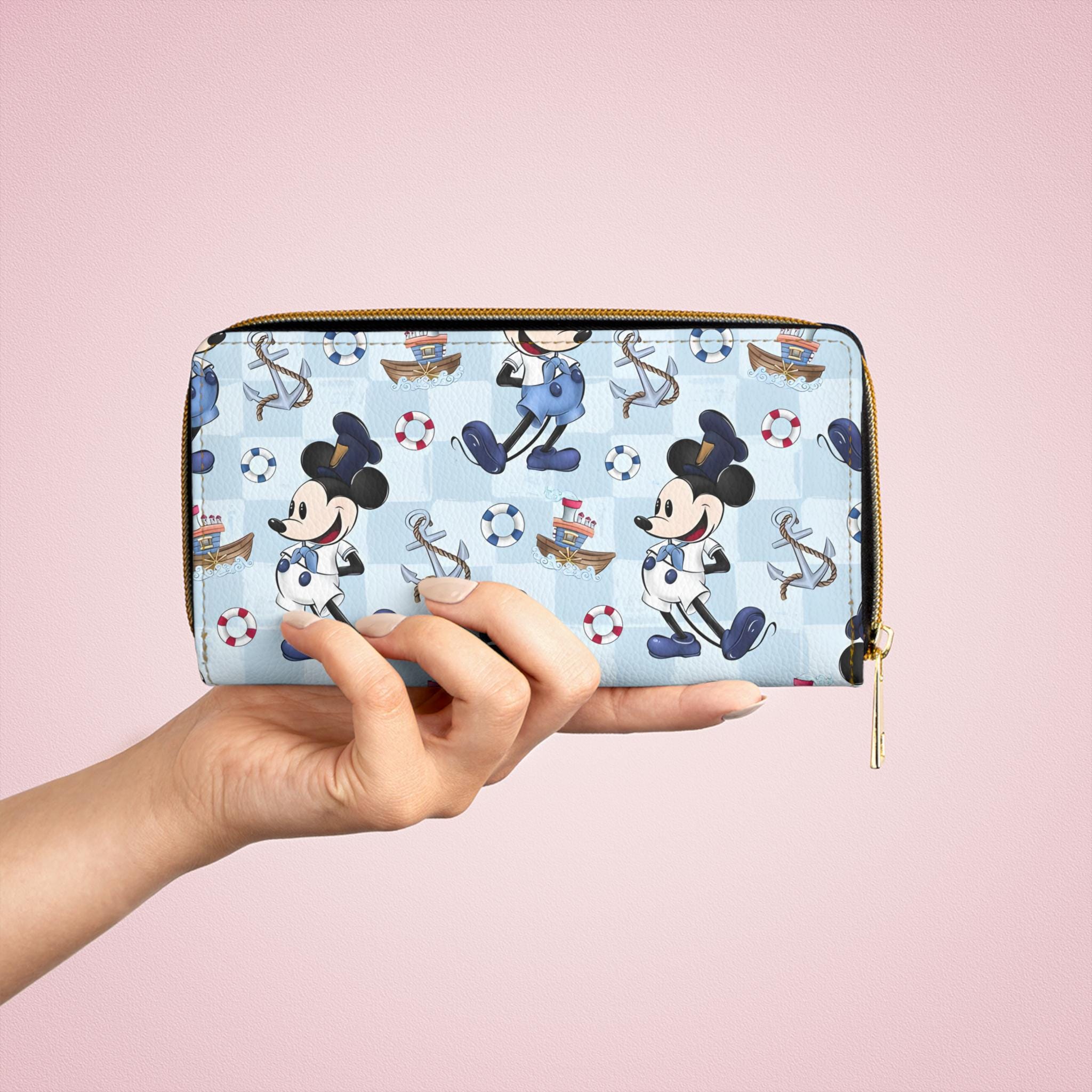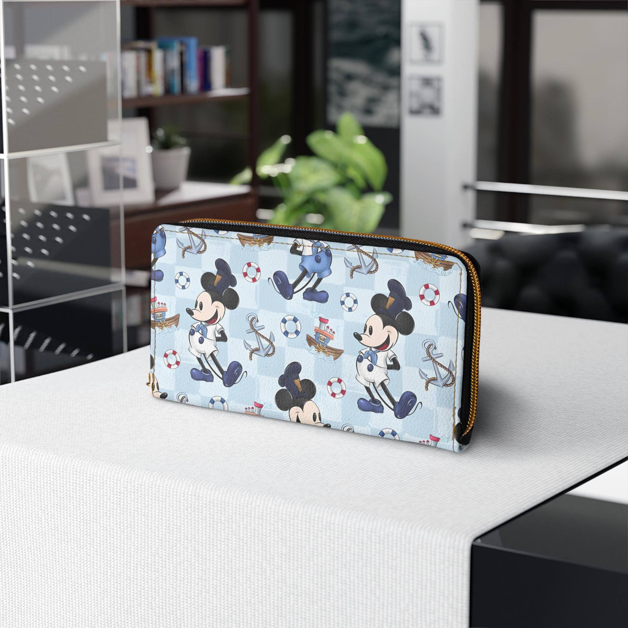 Salt-sprayed mornings and sunlit decks—this zipper wallet carries that cruise-day energy in a compact, everyday companion. Nautical anchors and life rings tumble across vibrant panels, a playful nod to classic sailor style with a familiar, storybook wink. Slim enough to slip into a tote or jacket pocket, it unfolds into organized pockets for cash, cards, coins and even a checkbook, so the rhythm of travel or daily errands never skips a beat. The warm gold stitching and gleam of alloy hardware add a little maritime treasure to each glance. Use it on board, at the harbor café, or while planning the next adventure—the pattern sparks memories of ocean breezes and childhood wonder while the build keeps up with wherever you go.