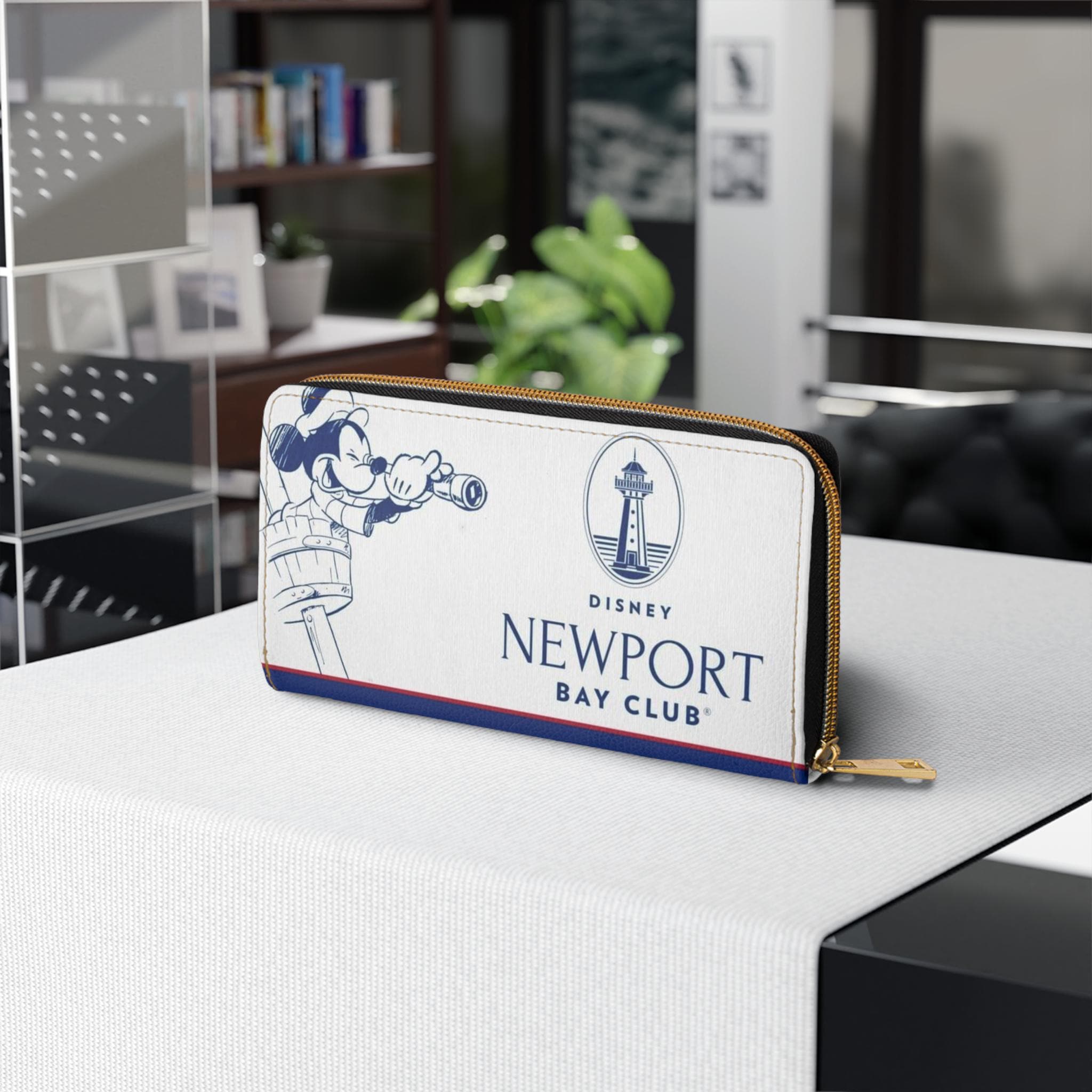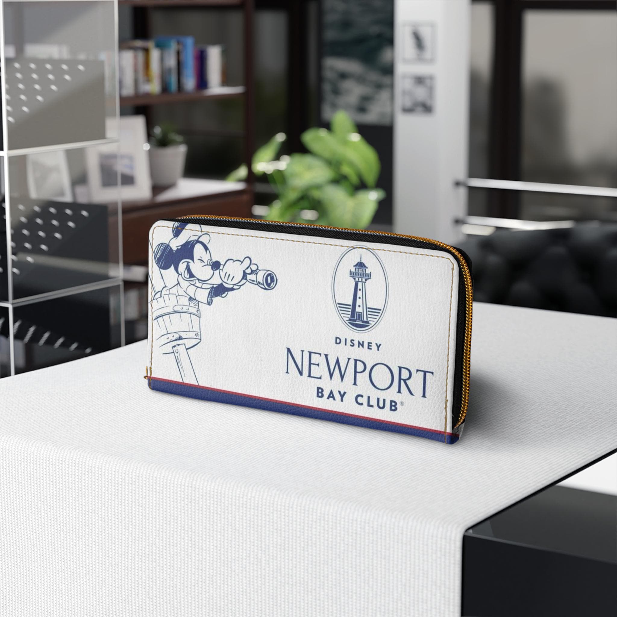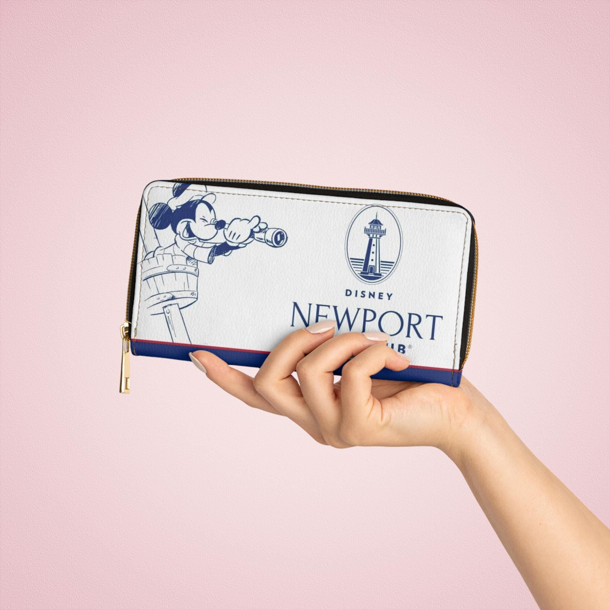 This compact zipper wallet brings playful seaside charm to your everyday carry. Inspired by Newport Bay and a beloved mouse icon, its bright, nautical-colored print pops against smooth PU leather. Slip in cards, folded cash, and coins into organized pockets, then zip it closed with a sturdy nylon zipper and alloy pull — small enough for a quick stroll to the park but roomy enough for daily errands. Gold-tone stitching and hardware add a touch of vintage amusement-park flair, while the size sits neatly in a coat pocket or small tote. Carry a little bit of nostalgia and coastal sunshine with you, whether you’re heading to a stroll along the boardwalk or a casual day out with friends.