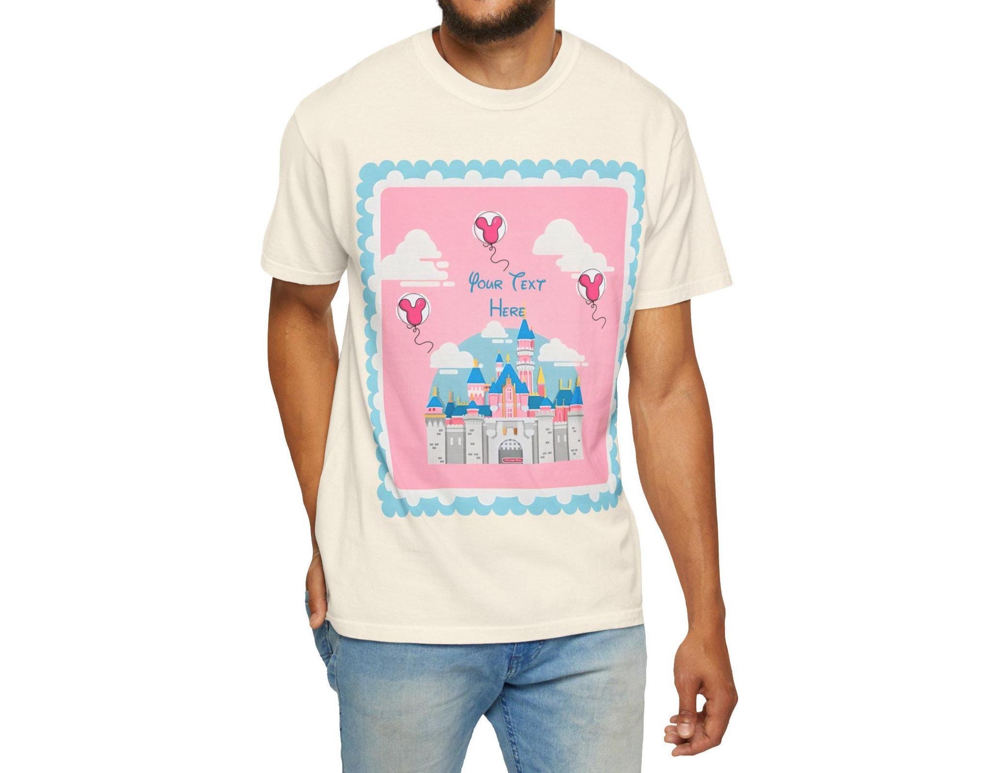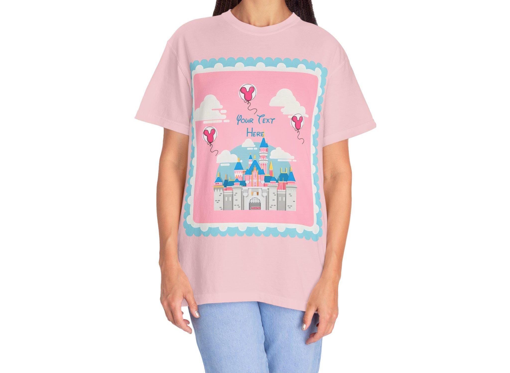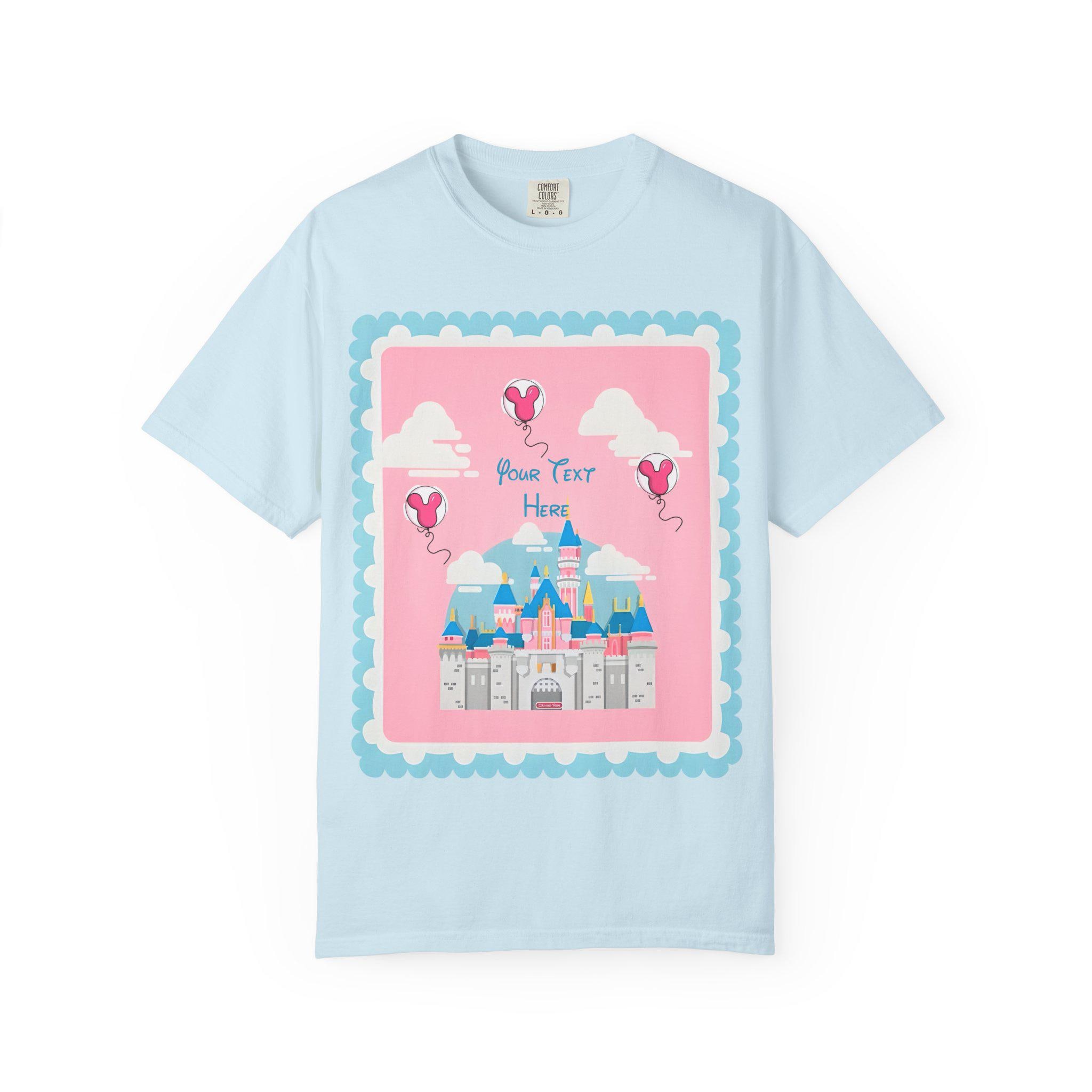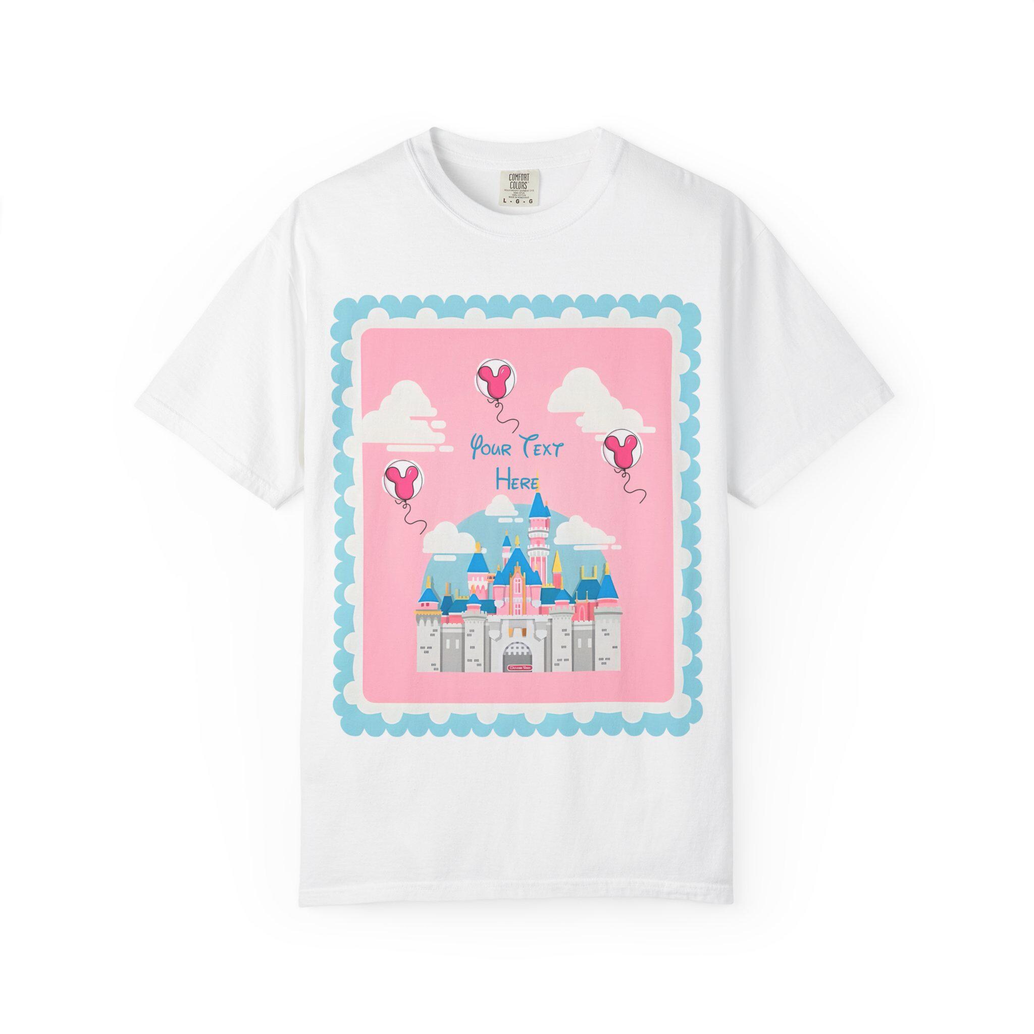 A soft, garment-dyed cotton tee that brings a pastel fairytale moment to everyday wear. Delicate pinks and airy heart-shaped balloons float around a stylized castle silhouette, creating a whimsical, nostalgic scene that reads like a page from a childhood storybook. The relaxed fit and midweight fabric make it comfortable for long days of park strolls, theme-park visits, or cozy afternoons crafting with friends. Personalization adds a quiet, sentimental touch—names or initials can be hand-placed among the balloons to make the shirt feel like a keepsake rather than just another top. Subtle distressing from the garment-dye gives each shirt a lived-in softness and gentle vintage vibe, so the colors sit softly against the skin and pair easily with denim, skirts, or layered cardigans. This tee is made to be worn to moments that matter: celebrating small joys, gifting a cherished memory, or adding a bit of magic to regular days.