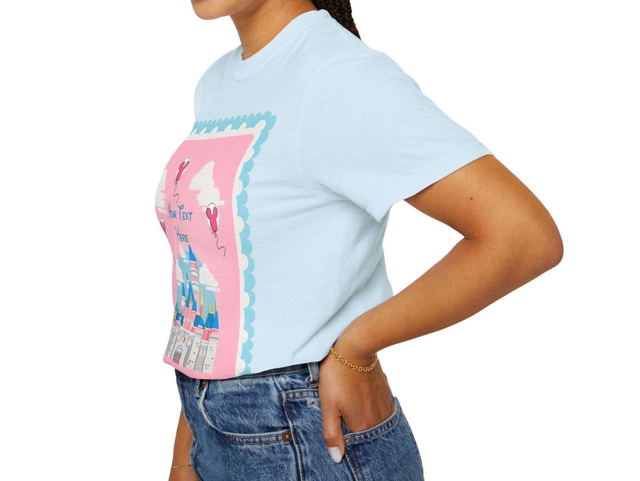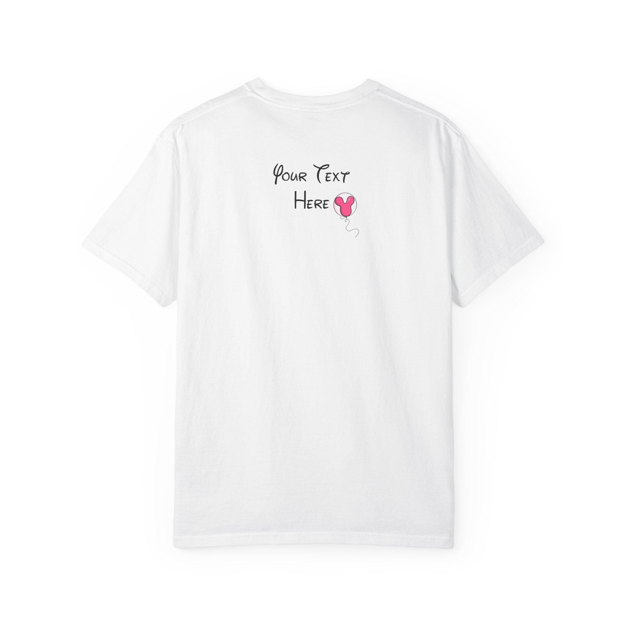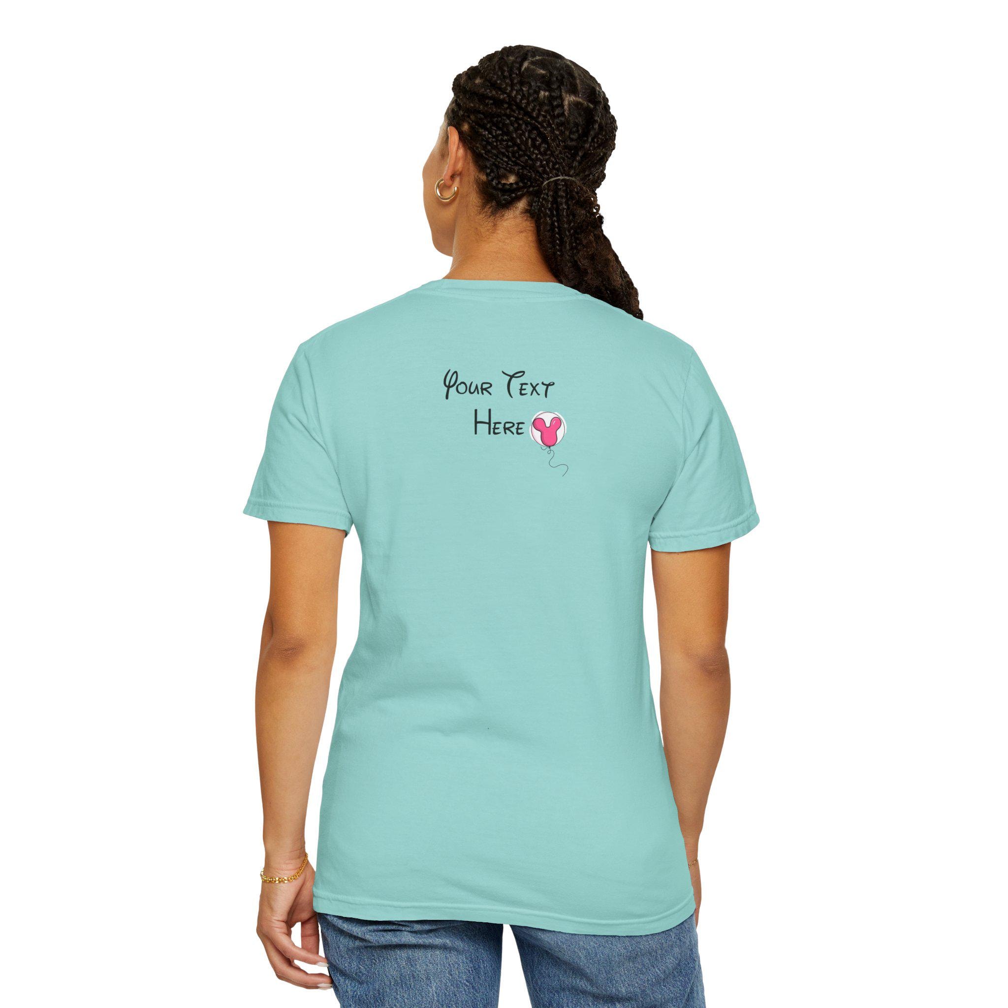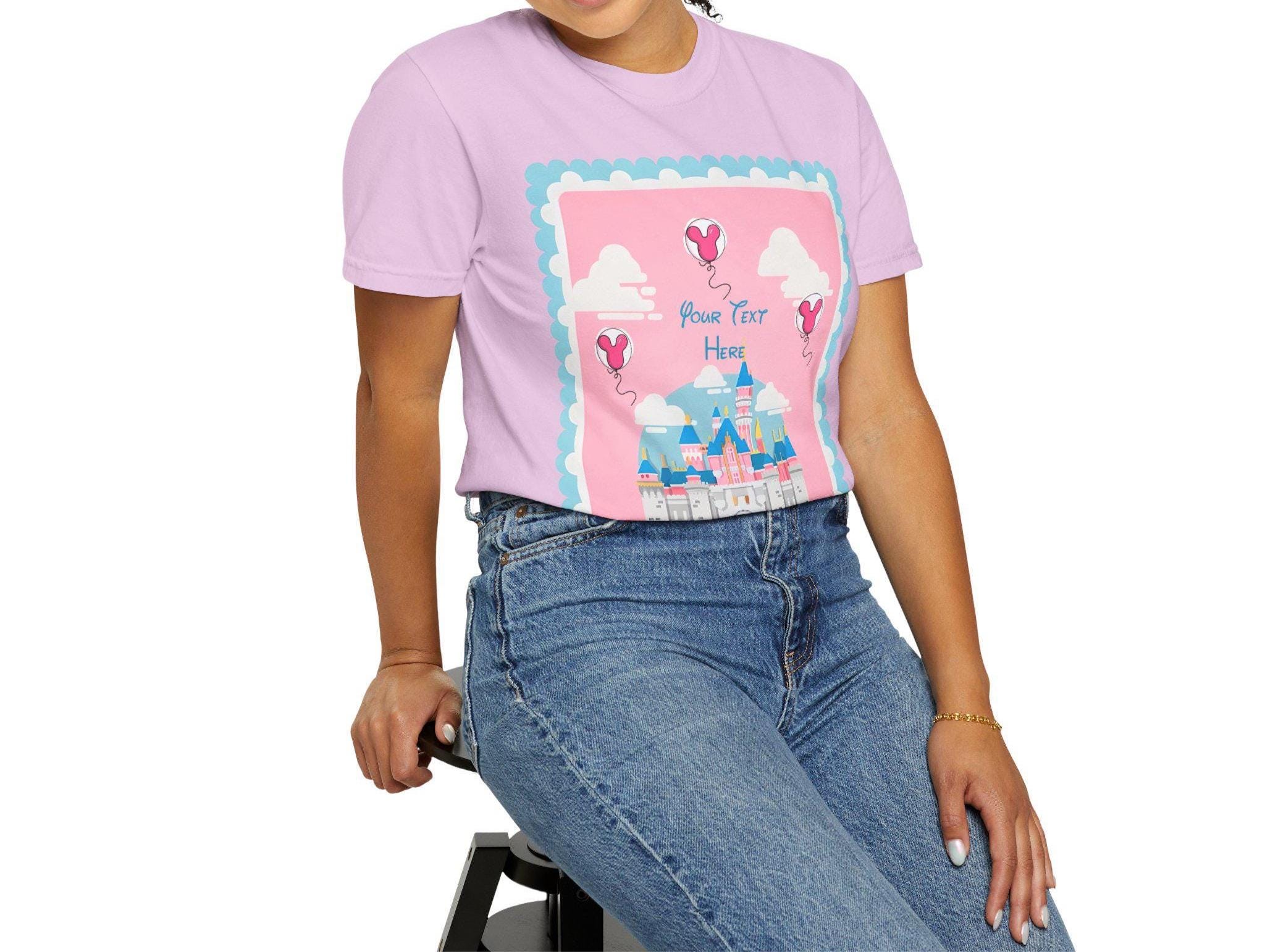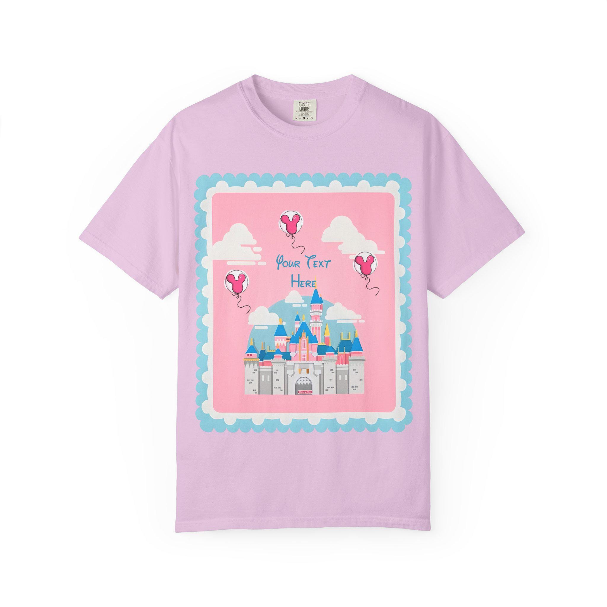 A soft, garment-dyed cotton tee that brings a pastel fairytale moment to everyday wear. Delicate pinks and airy heart-shaped balloons float around a stylized castle silhouette, creating a whimsical, nostalgic scene that reads like a page from a childhood storybook. The relaxed fit and midweight fabric make it comfortable for long days of park strolls, theme-park visits, or cozy afternoons crafting with friends. Personalization adds a quiet, sentimental touch—names or initials can be hand-placed among the balloons to make the shirt feel like a keepsake rather than just another top. Subtle distressing from the garment-dye gives each shirt a lived-in softness and gentle vintage vibe, so the colors sit softly against the skin and pair easily with denim, skirts, or layered cardigans. This tee is made to be worn to moments that matter: celebrating small joys, gifting a cherished memory, or adding a bit of magic to regular days.
