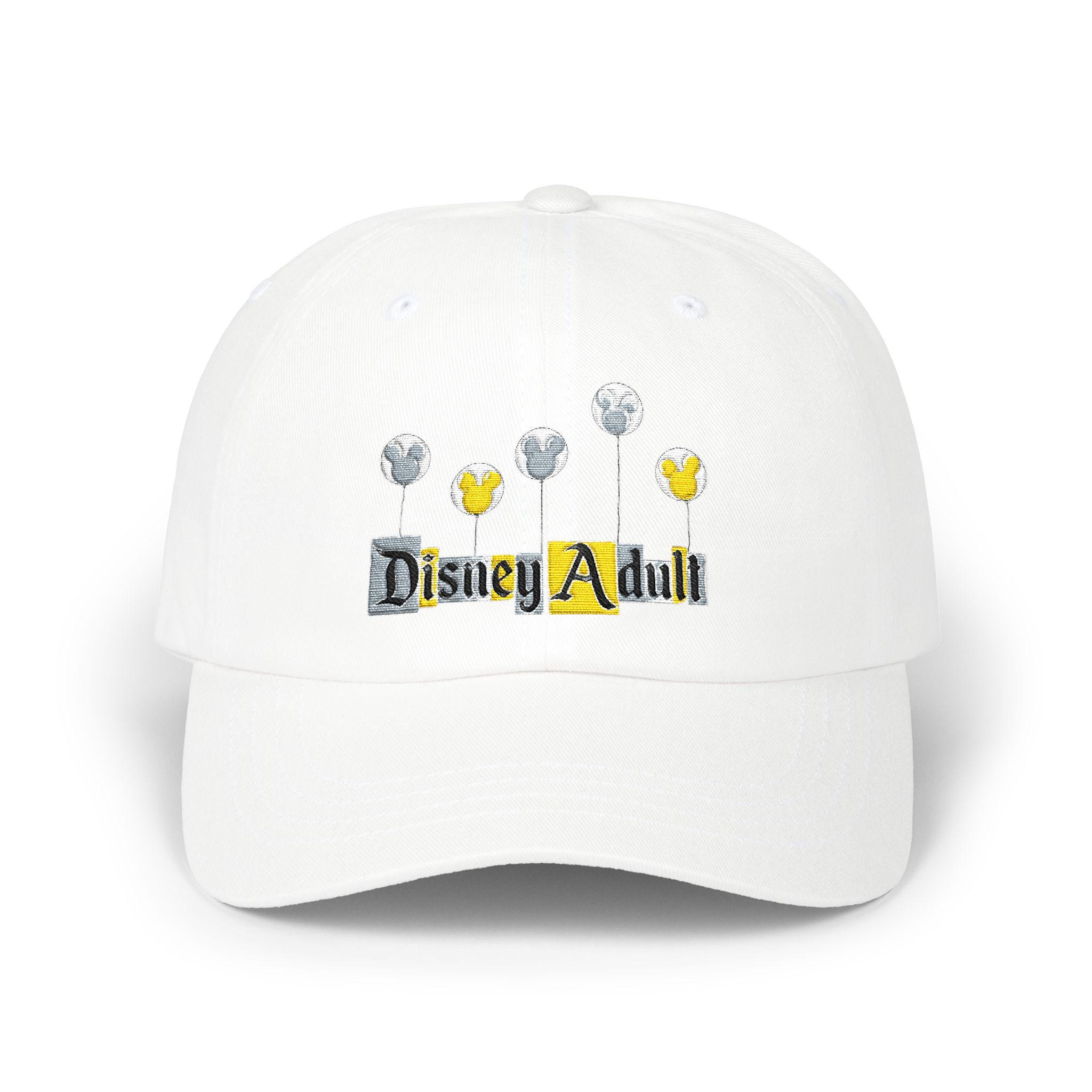 A relaxed, lived-in cap that reads like a quiet wink to grown-up theme-park fans. Soft, low-profile cotton settles easily on the head; the pre-curved visor and subtle underbill color keep sun and glare at bay. The embroidered front lettering and tiny balloon motifs add a nostalgic, playful touch without shouting — it’s the kind of hat you reach for when you want casual comfort and a little bit of personality. The adjustable self-fabric strap with antique brass buckle lets you dial in a secure fit, and the sewn-in label and brand sticker on the visor give it that authentic, ready-to-wear feel. Wear it while wandering through weekend crowds, running errands, or sharing a slow afternoon with friends who get the reference.