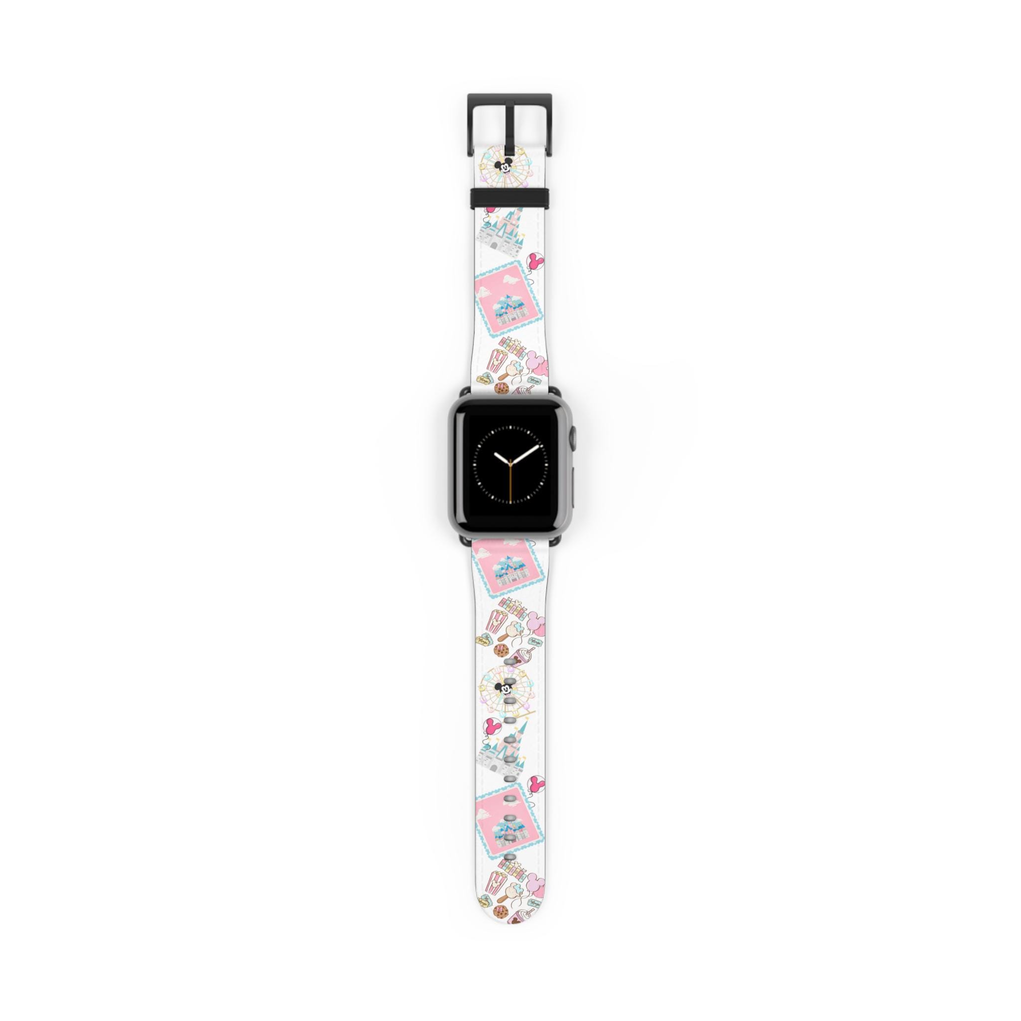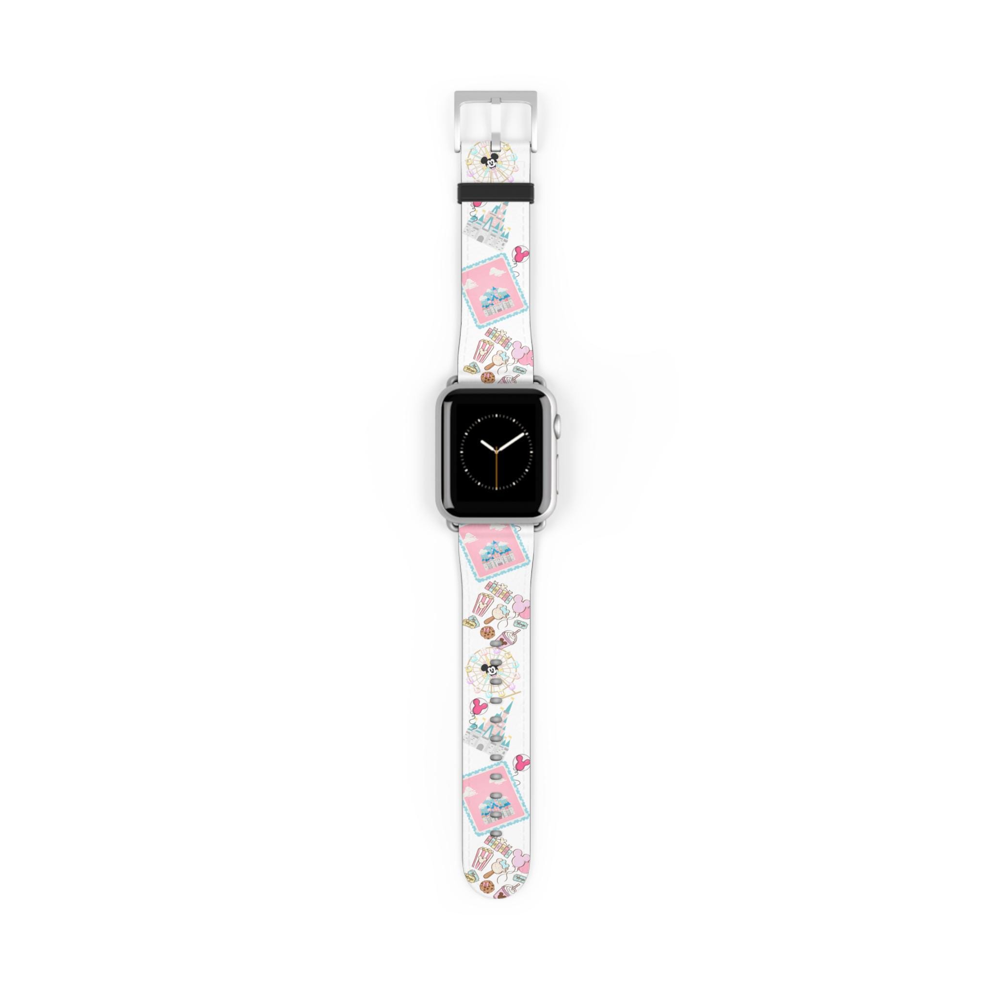 Bring a little park-magic to your wrist with this Disney Parks inspired watch band. Soft pastel hues and a playful castle motif wrap around your Apple Watch, turning everyday moments into a gentle reminder of wonder and nostalgia. It settles comfortably against your skin and sparkles subtly at the buckle, so whether you’re running errands or planning a weekend park visit the band feels like a quiet promise of adventure. The one-sided print keeps the design clear and vibrant, and the stainless steel fittings give it a polished finish that blends whimsical with wearable.