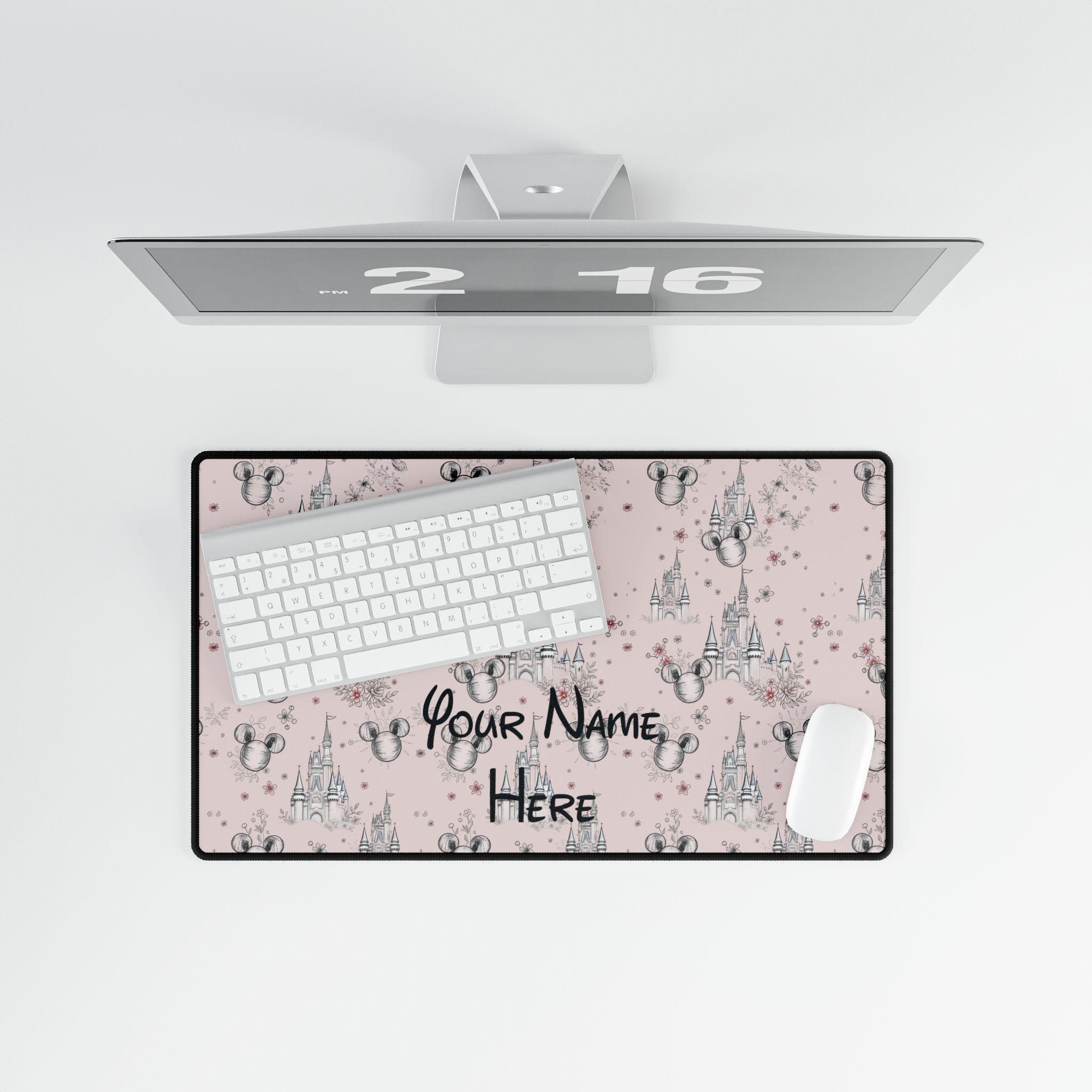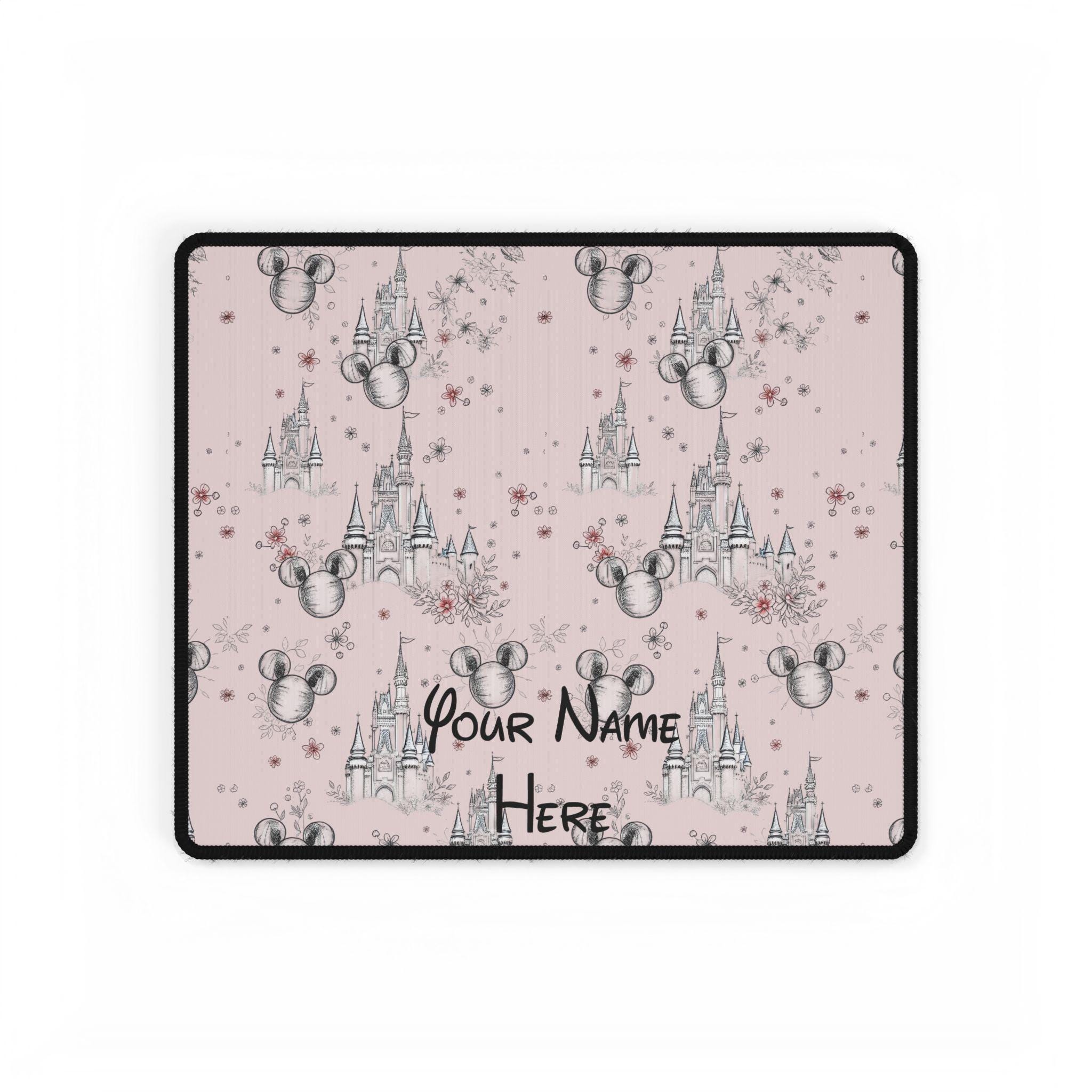 A dreamy, personalized desk mat that turns a workspace into a storybook corner. Soft pinks and whimsical castle silhouettes sit beneath your keyboard and mouse, while a custom name adds a touch of ownership and childhood wonder. The smooth, vibrant print invites long hours of creative work or relaxed browsing, and the non-slip black base keeps everything steady during focused sessions. It’s the kind of desk accessory that brightens a room and makes daily tasks feel a little more magical — whether you’re sketching, streaming, or organizing your day.
