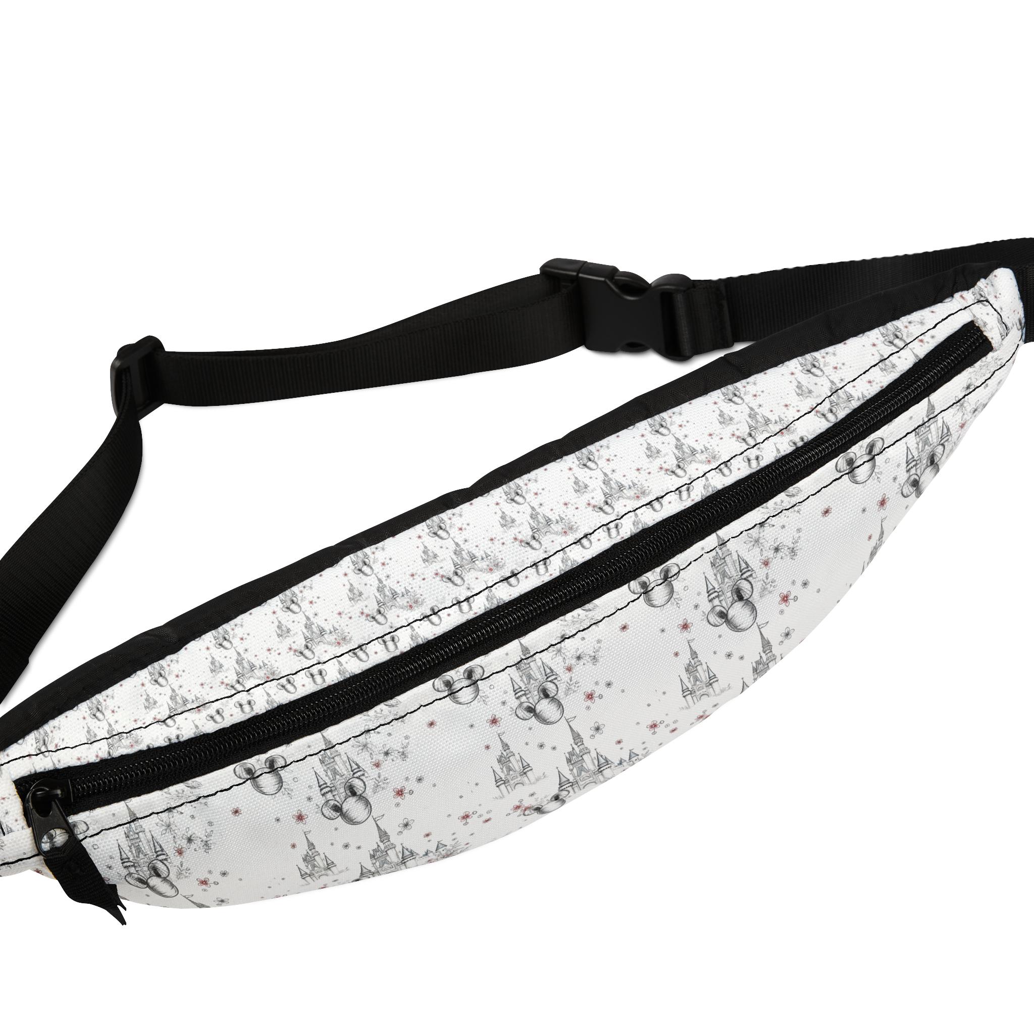 This fanny pack brings a playful, park-day energy to every outing. Printed with a Disney castle–inspired mouse pattern, it feels like a little keepsake bag of childhood wonder—bright turrets, smiling silhouettes, and pockets of color that pop against the black lining. It sits snug at your waist so you can move through crowds hands-free while keeping tickets, phone, and small treasures close. Wear it for a day of parkhopping, a casual meet-up with fellow fans, or whenever you want a compact, cheerful piece that nods to theme-park memories without shouting for attention.