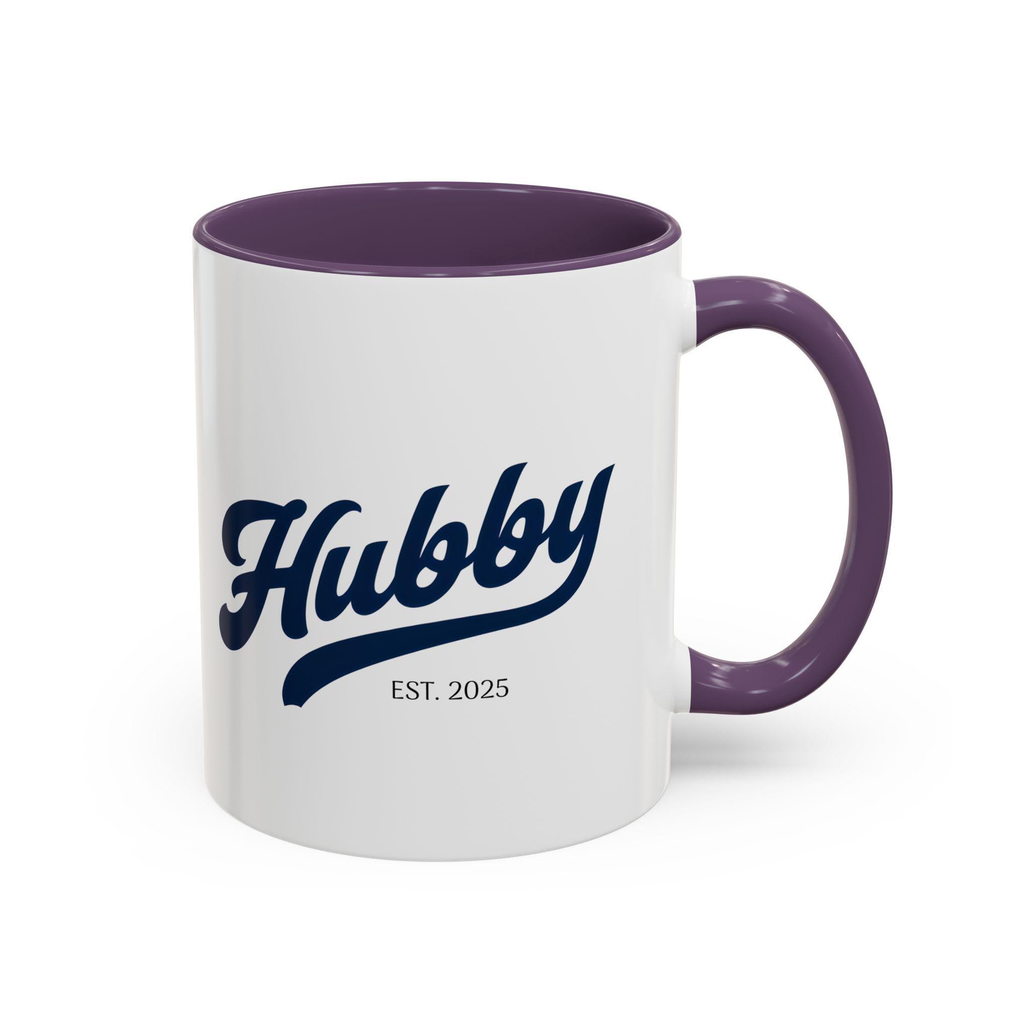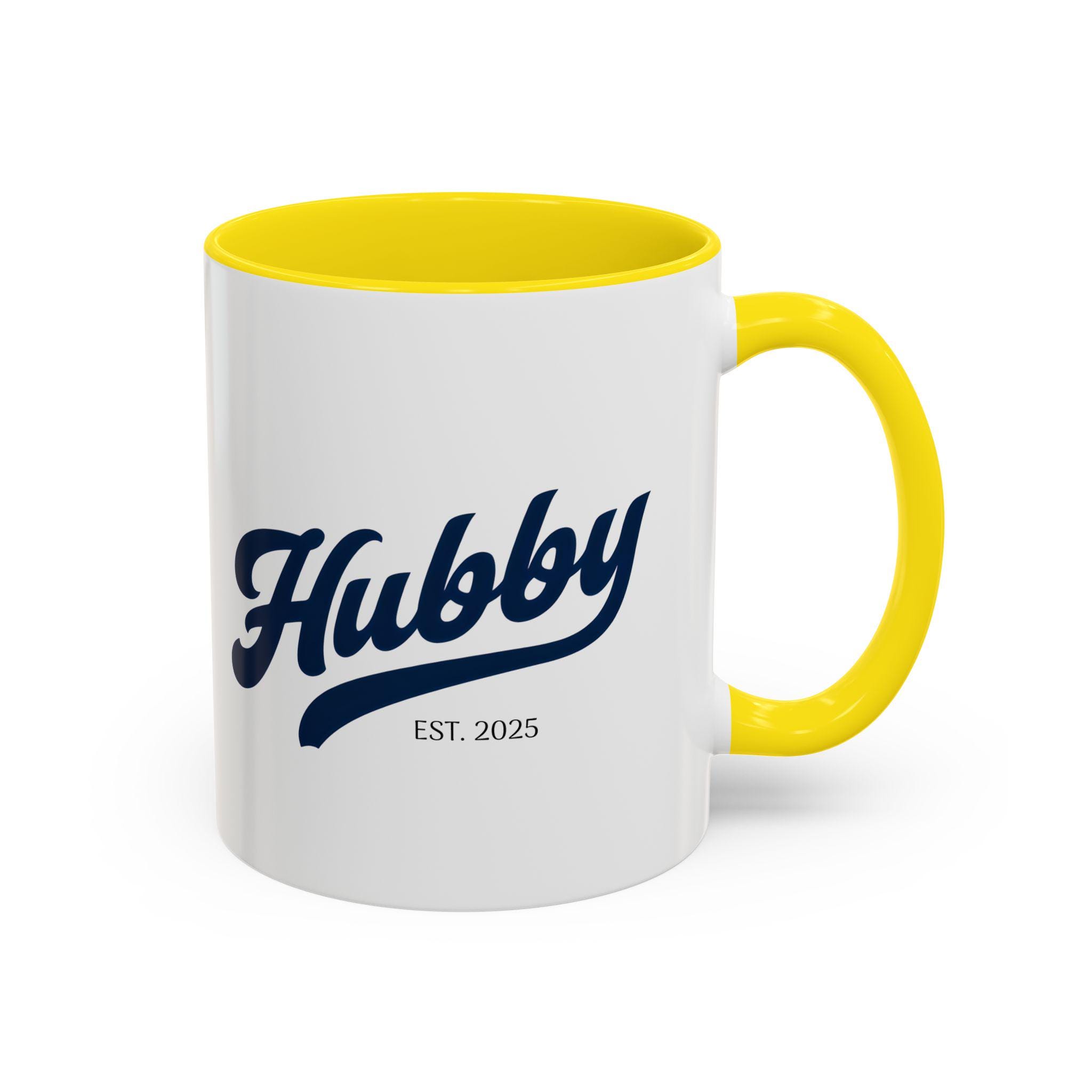 This ceramic accent coffee mug brings a quiet, personal moment to the morning ritual. The handwritten “Hubby” script feels like a private note on the rim — warm, familiar, and a little playful. Imagine the low light of a weekend kitchen, steam rising from dark coffee, and that small smile when you see a date or name you both share. The colored interior and handle add a pop that reads like personality, not fuss. It holds up to real life: bright printed ink that resists fading, a glossy finish that wipes clean, and safe materials you can trust. Choose the size that matches your coffee habit and a color that speaks to you; this mug slips easily into everyday routines and quiet celebrations, from a calm anniversary morning to a slow Sunday ritual.
