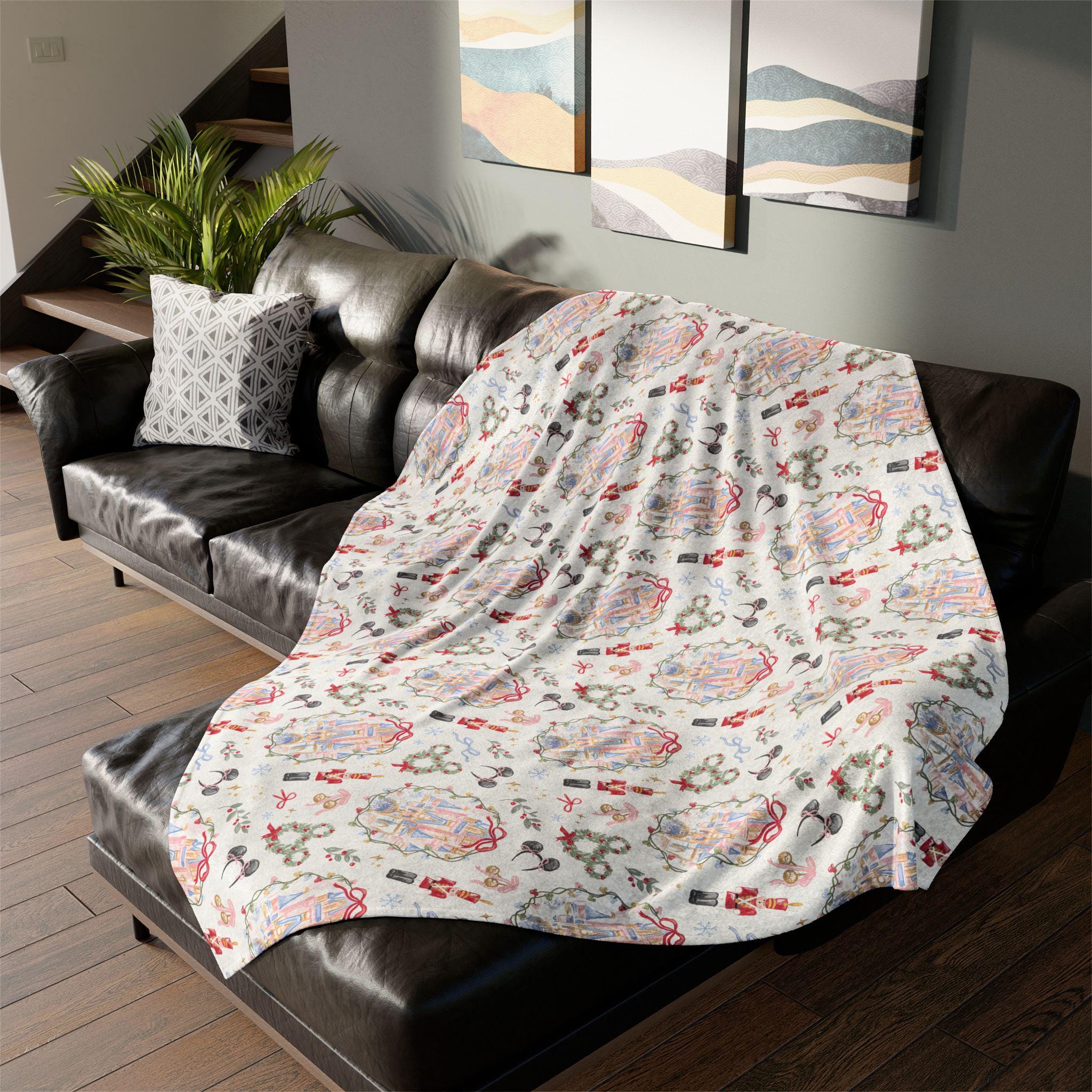 Bring the warm, twinkling magic of a holiday theme park night into your living room with this plush polyester blanket. Snow-dusted castle silhouettes and a festive wreath pattern wrap around you in bright, crisp color, while the dense, fluffy fleece cushions you against chill evenings. It feels like slipping into a cozy corner of yuletide cheer—perfect for curling up with a mug, tucking around little ones during storytime, or layering across a sofa to lift the room’s mood. Thoughtfully finished hemmed edges and matched seam threads keep the design looking neat through many washes, so the sparkle stays season after season.