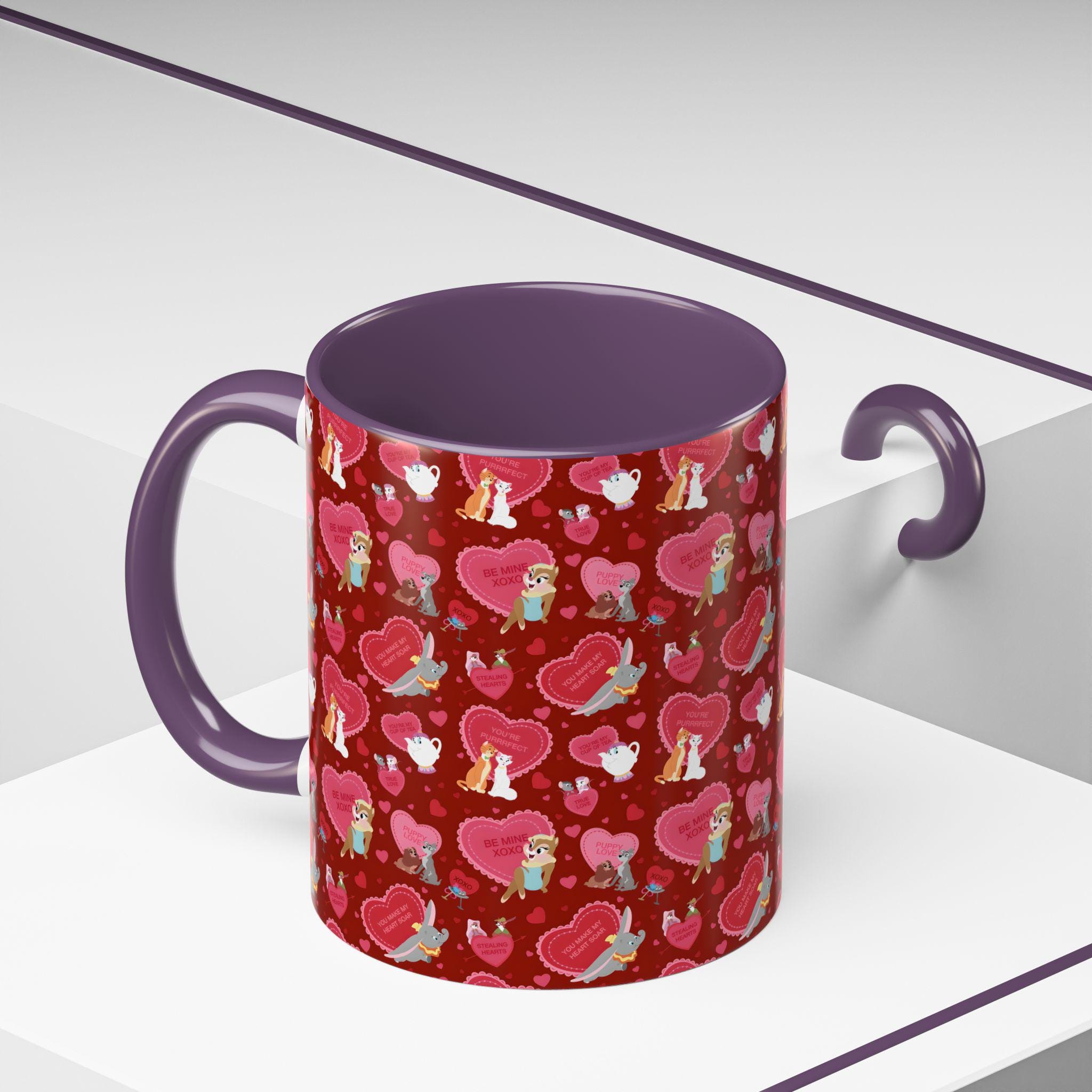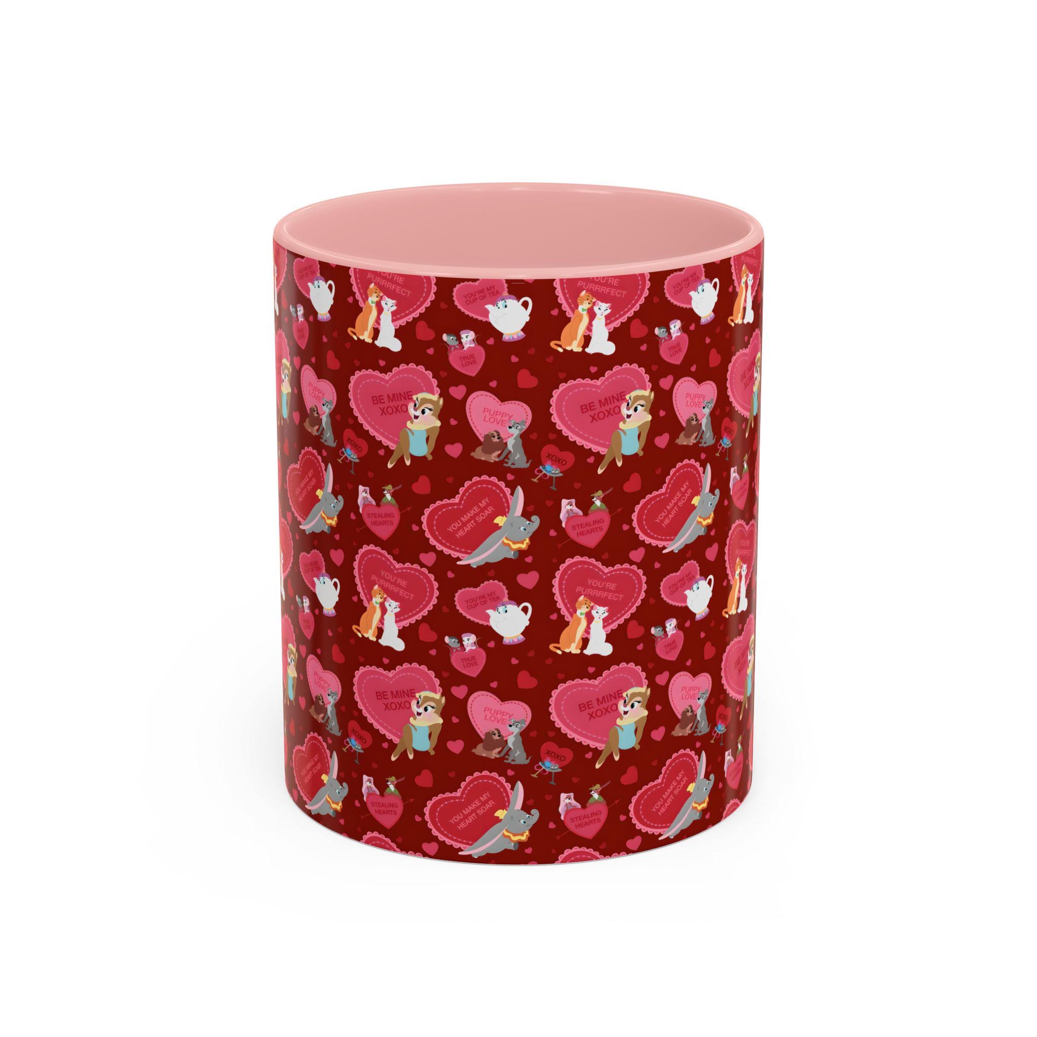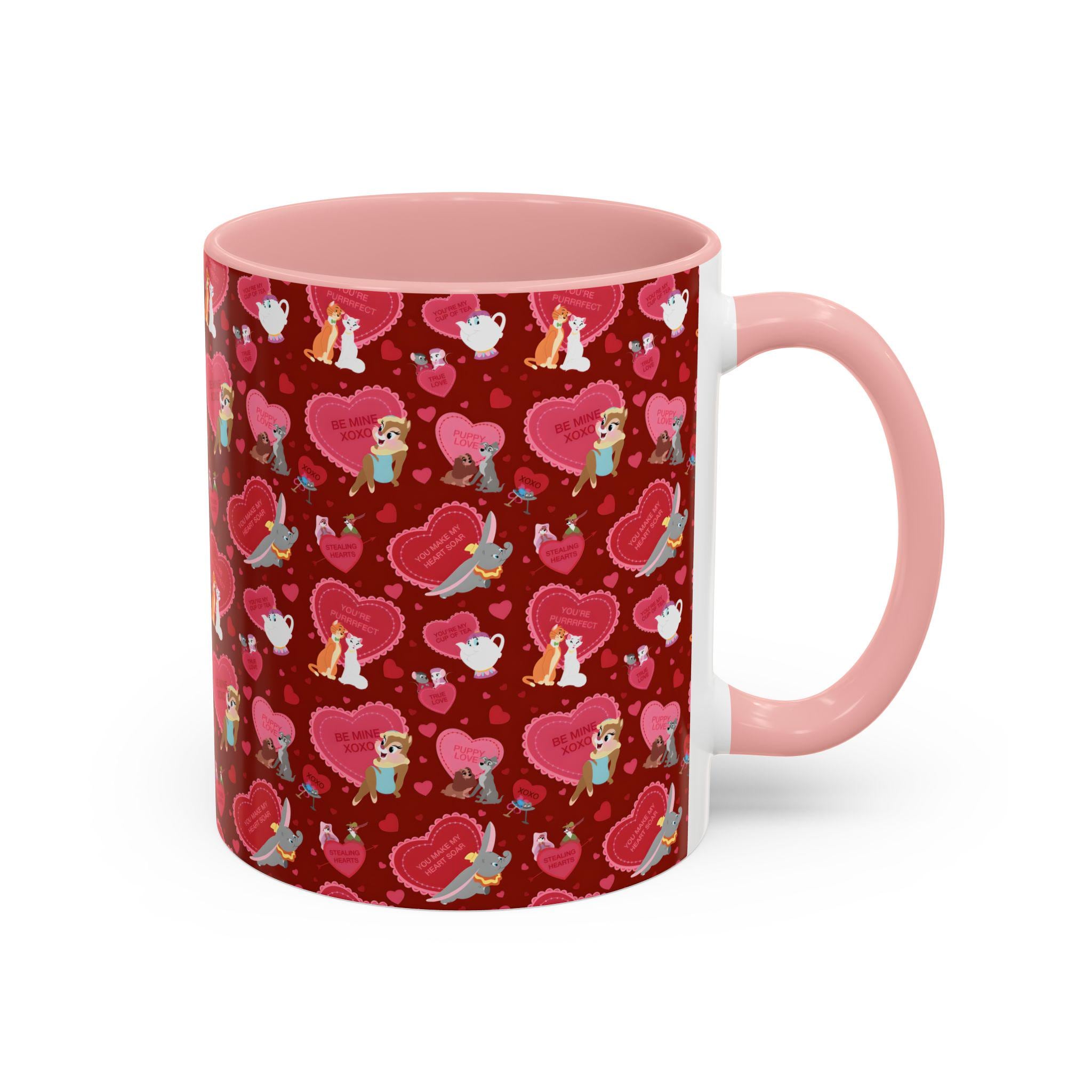 Warmth and whimsy meet over morning coffee. This ceramic mug carries a playful pattern of beloved Disney-style animal couples framed by scattered Valentine hearts. It feels like a small, everyday celebration — a quiet nod to affection while you read messages, plan the day, or share a slow moment with someone. The colored interior and handle add a cheerful pop against the glossy white exterior, making each sip feel a little brighter. Lightweight enough for daily use, the mug slips easily into hands with its comfortable C-handle. The print holds vivid hues wash after wash, so the charm stays with you through breakfasts, movie nights, and cozy afternoons spent together.