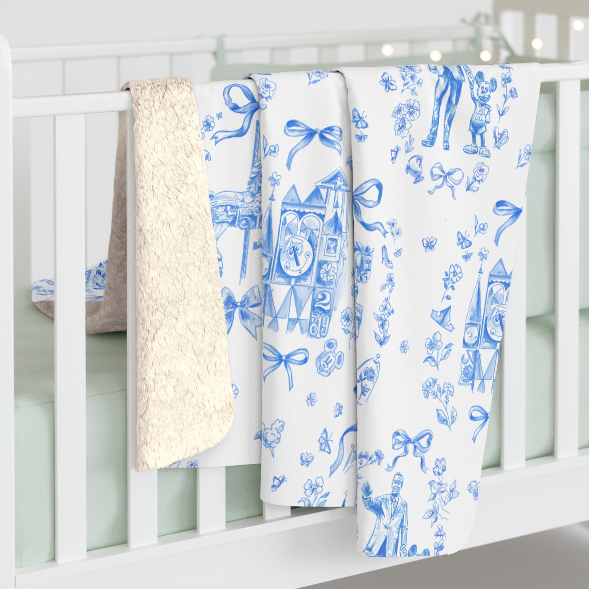 Wrap yourself in a storybook evening with this sherpa fleece blanket. Soft blue toile prints echoing classic park rides and vintage florals fold into a cozy cottagecore aesthetic — like a quiet afternoon under the eaves of an old carousel. The plush sherpa backside invites you to sink in with a warm drink and a dog at your feet. Lightweight but reassuringly warm, it layers easily on a couch, draped over a favorite armchair, or tucked around your shoulders during twilight garden chats. It’s made to feel lived-in from the first hour: familiar, comforting, and a little whimsical.