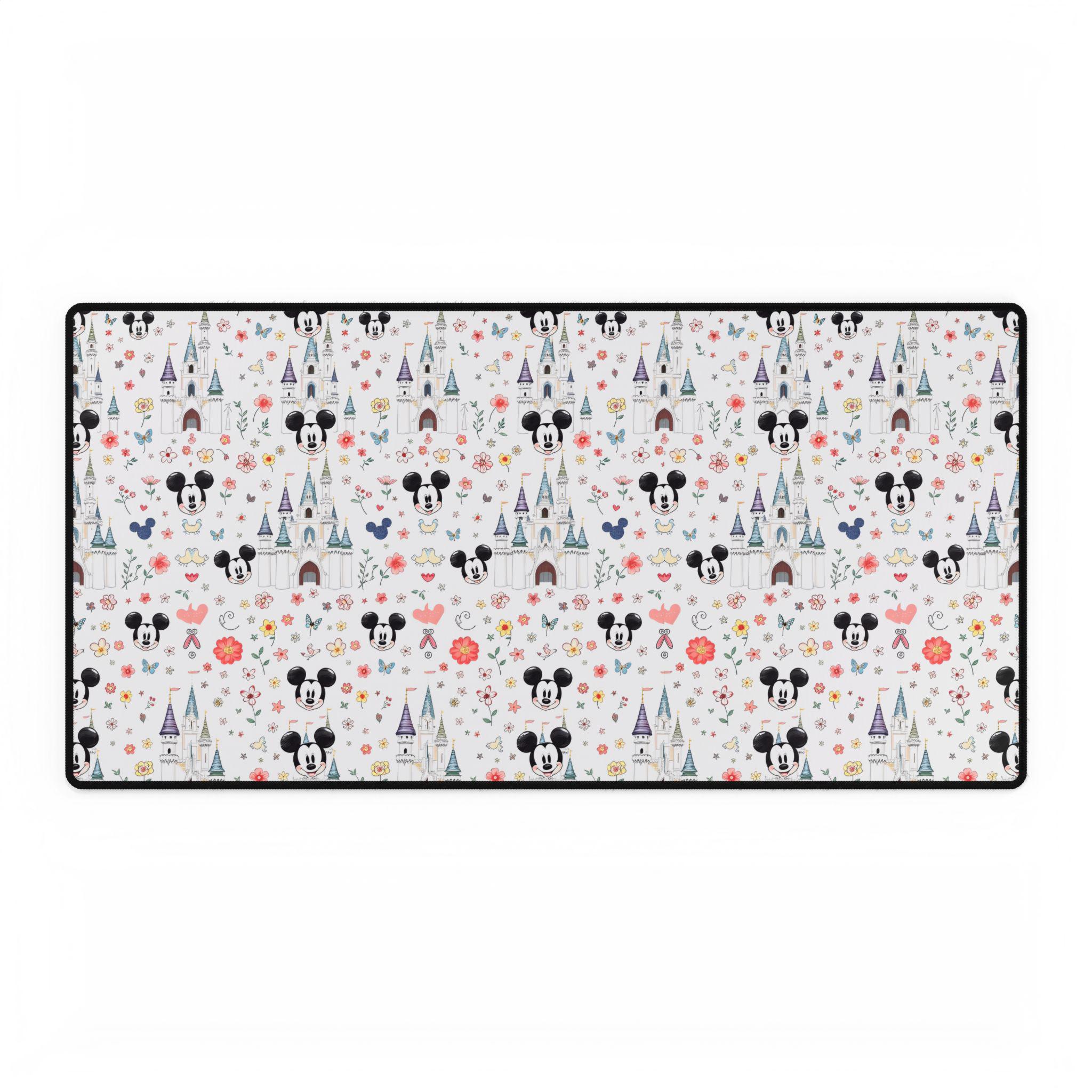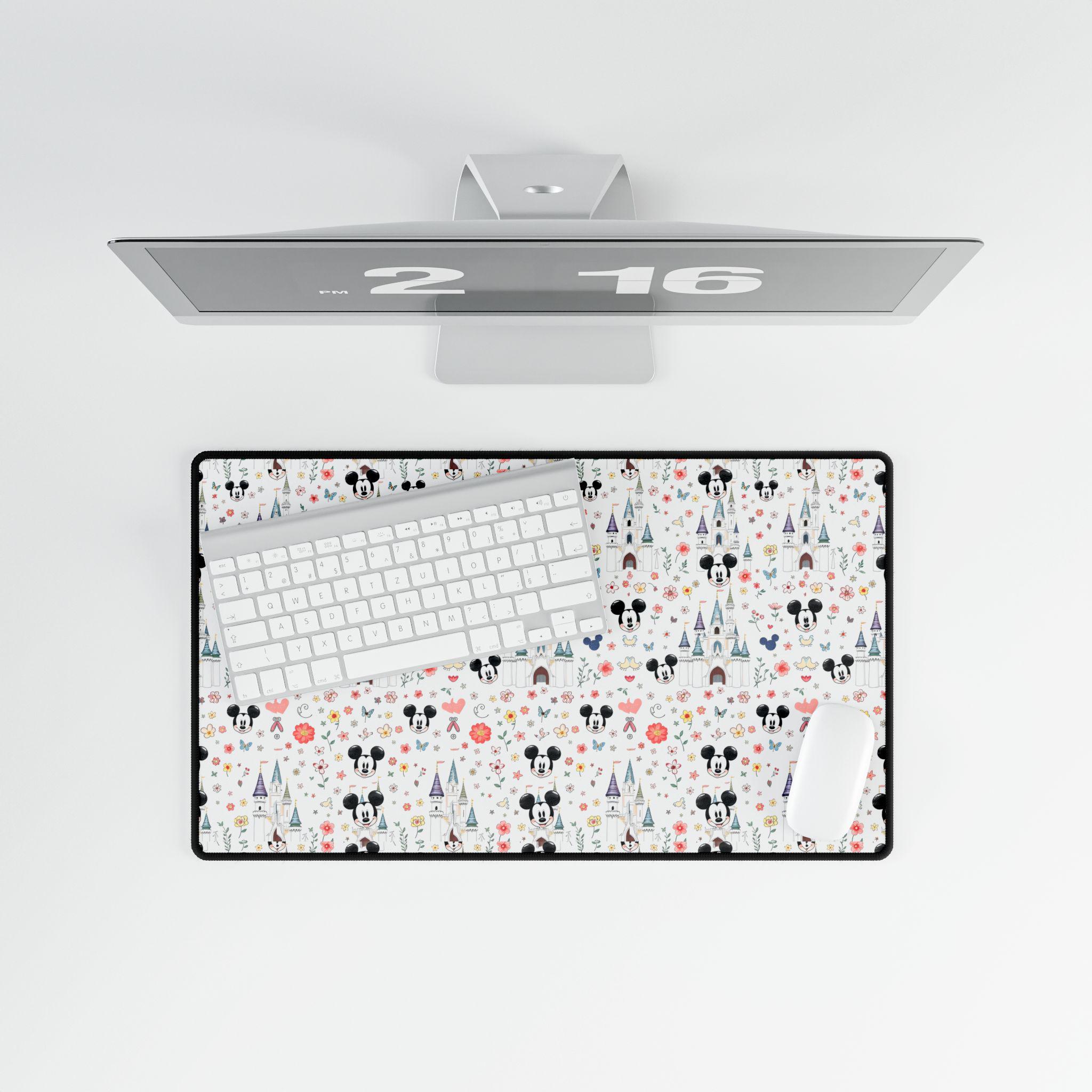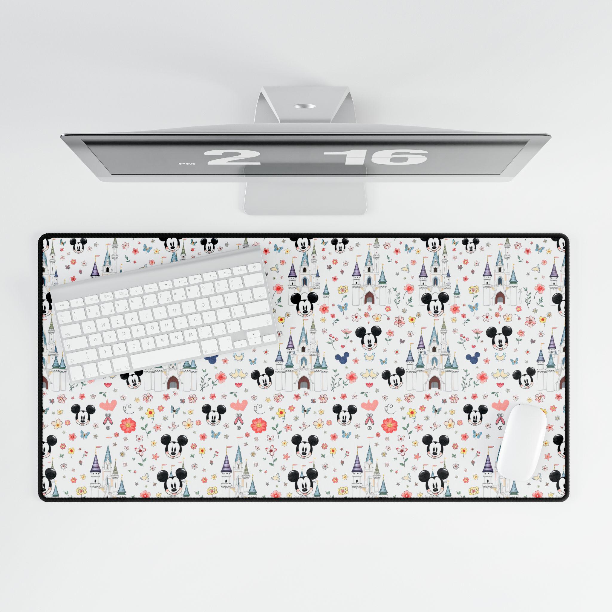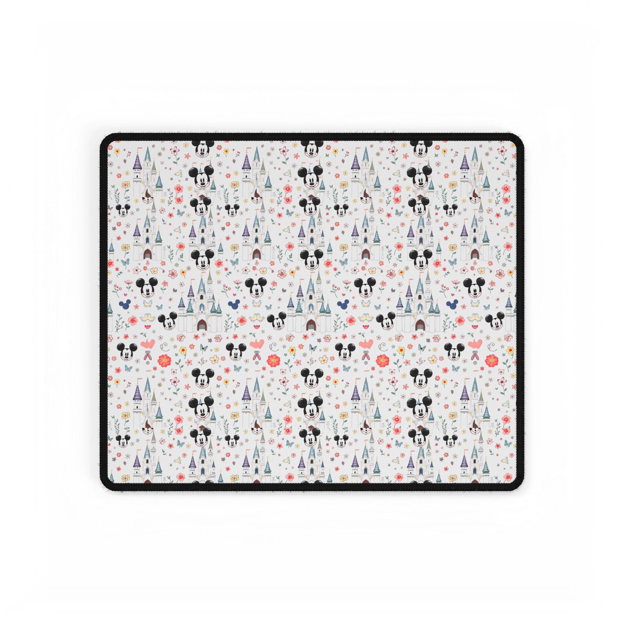 Spread a little nostalgia across your workspace with this Disney-inspired desk mat. Soft polyester captures the playful Mickey Mouse head and castle pattern in vivid, lasting color, while the smooth surface keeps mouse movements whisper-quiet and precise. The natural rubber base grips your desk so the mat stays put through long creative sessions, and anti-fray edges plus durable construction mean it holds up to daily use. Available in three sizes to suit cramped corners or roomy setups, this desk mat turns a functional surface into something that makes you smile every time you sit down.