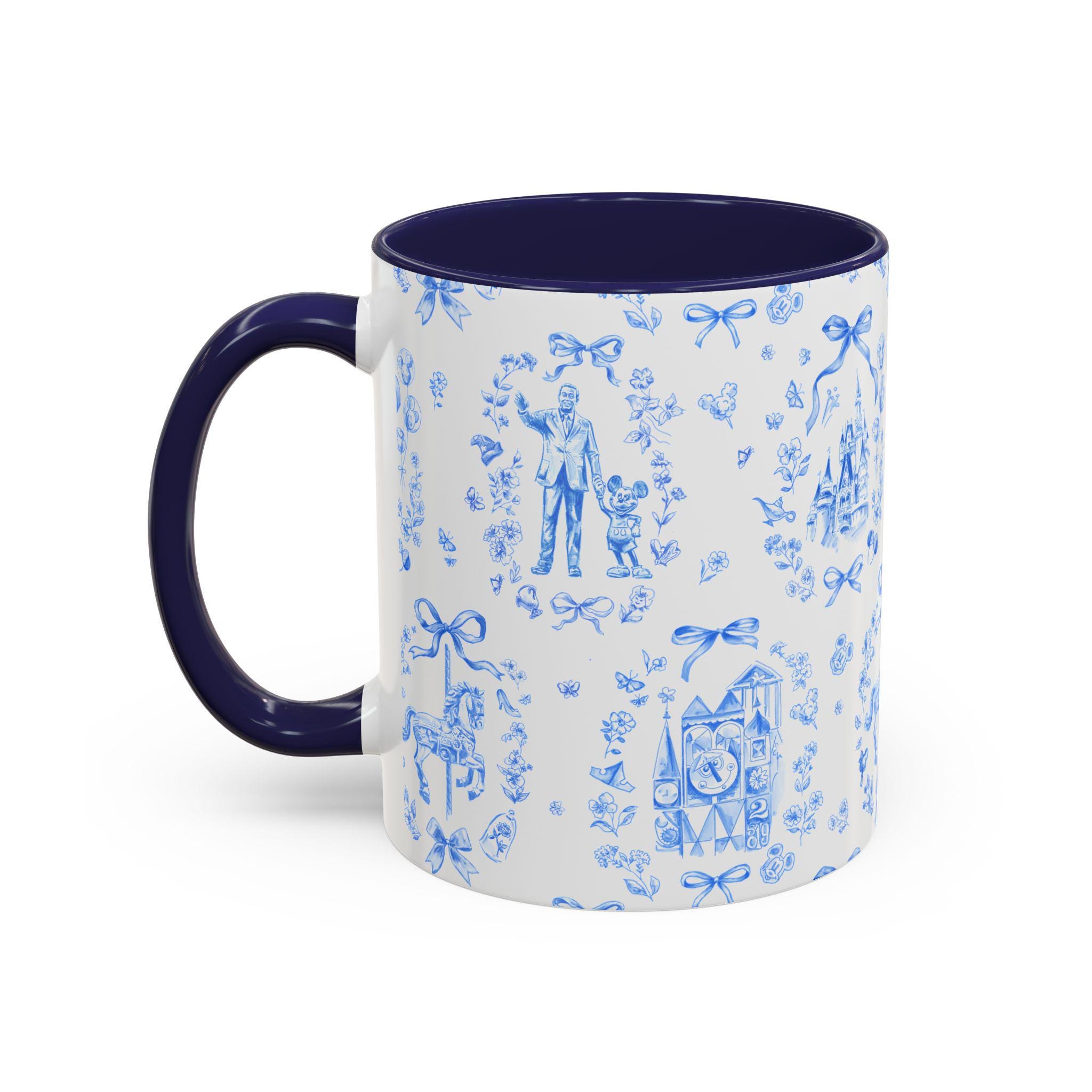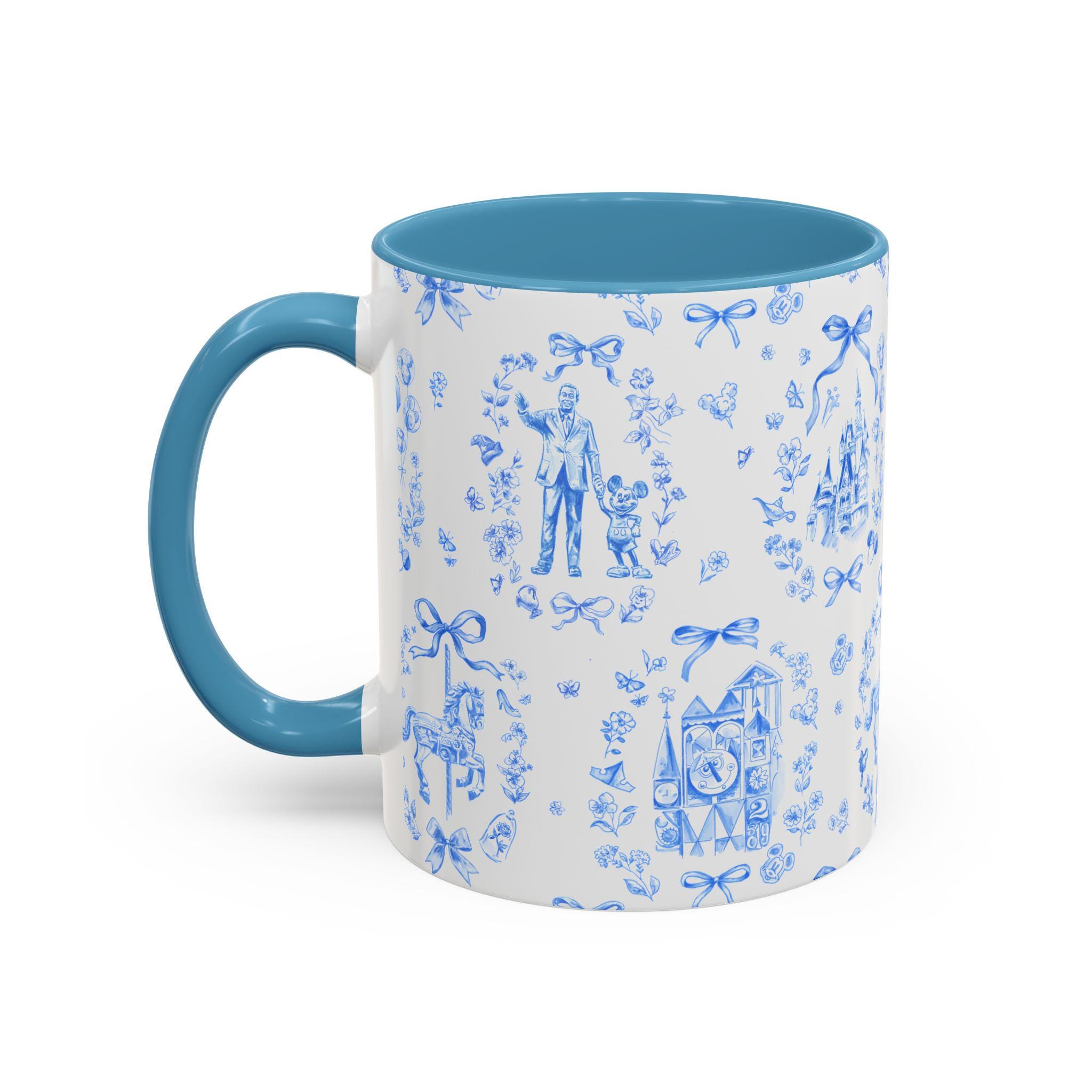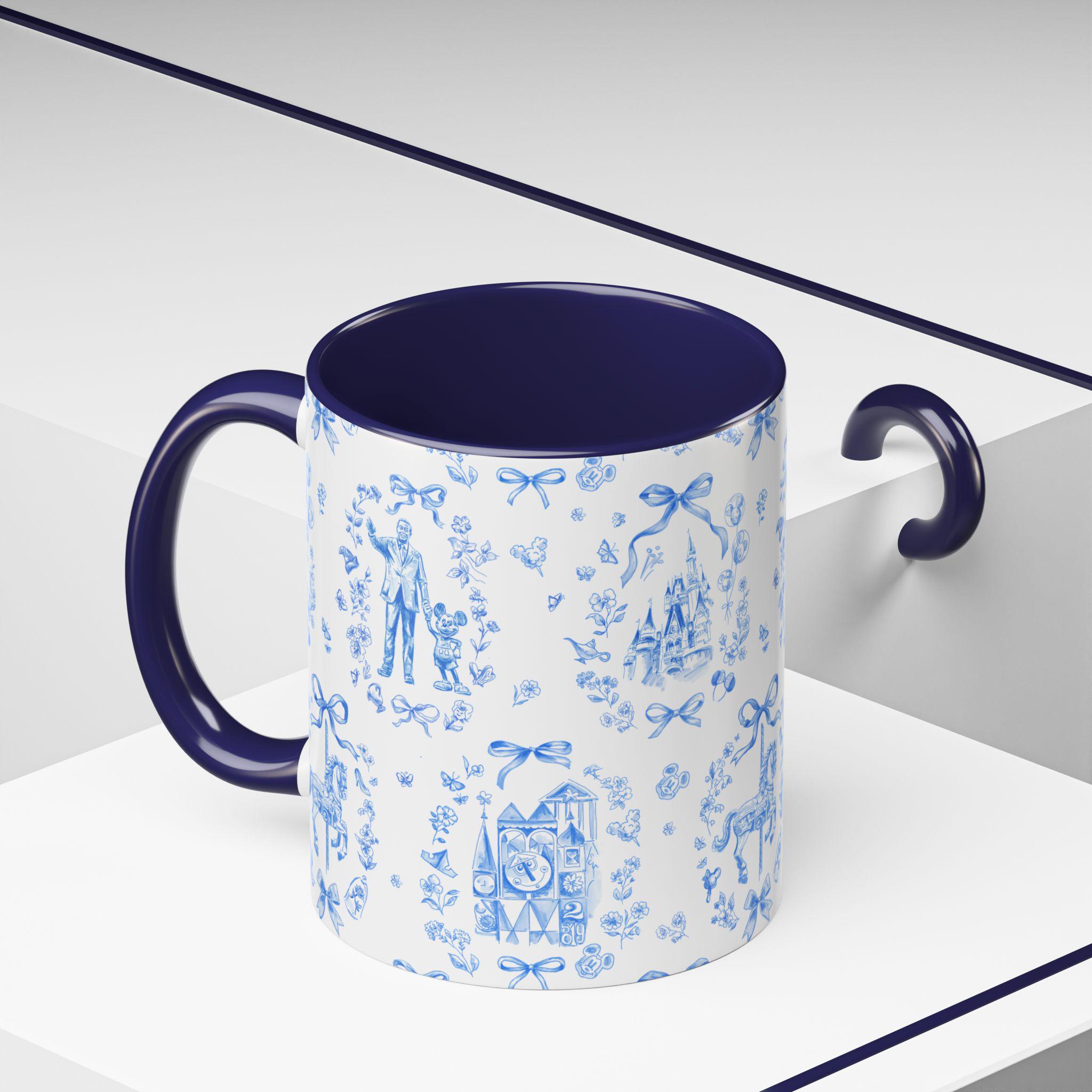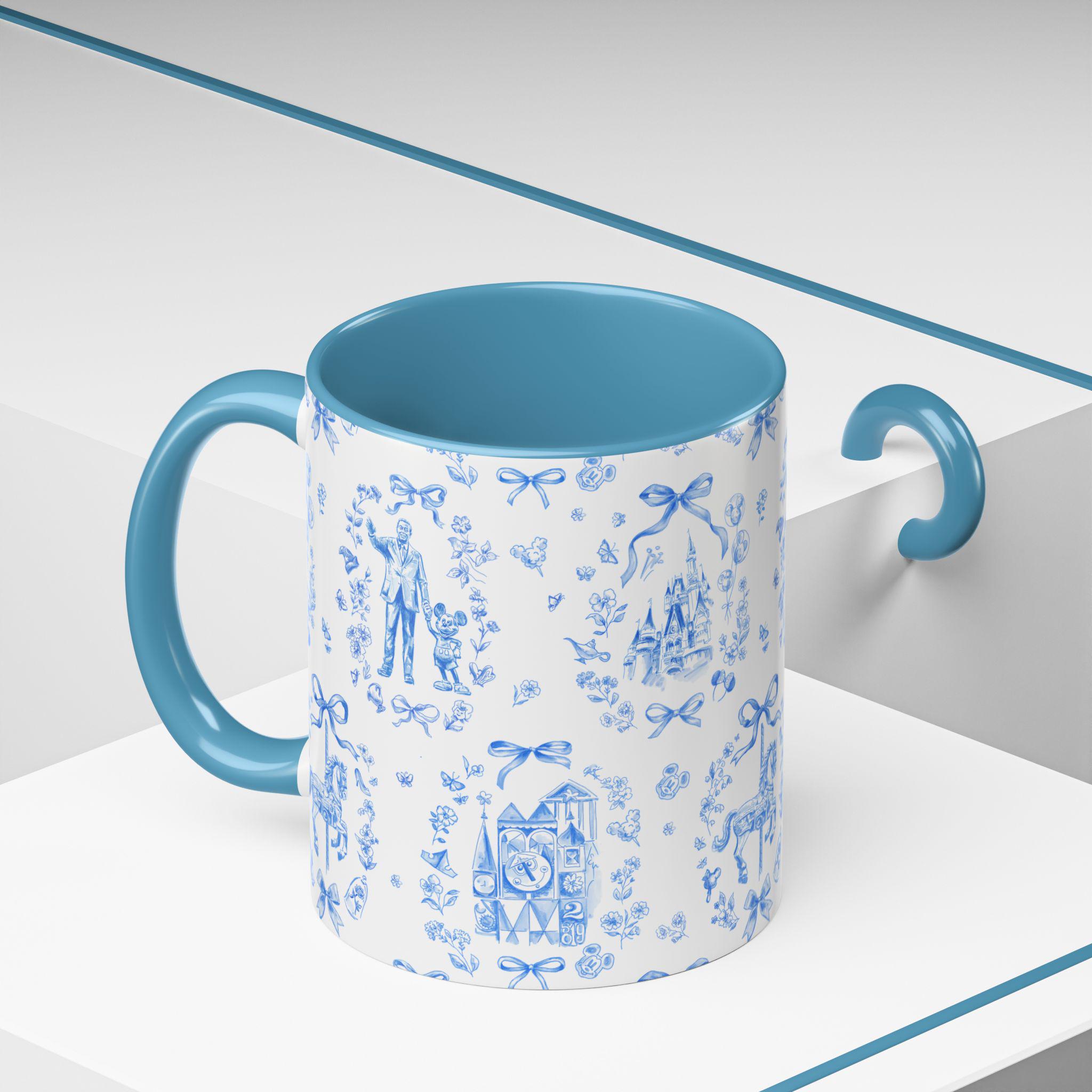 This blue toile ceramic mug brings a touch of vintage Disney park charm to slow mornings and midday breaks. Soft, storybook scenes wrap around the glossy white surface, while the colored interior and handle add a playful contrast that feels both nostalgic and fresh. It warms your hands and the room—bright, crisp printwork keeps the little details pop, and the sturdy C-handle gives a solid grip for coffee runs between rides or quiet moments at home. Dishwasher- and microwave-safe, it stands up to everyday use without dulling the vibrant hue. For collectors and park lovers who treasure small, cheerful reminders of magical afternoons, this mug slips easily into daily routines and themed displays alike.