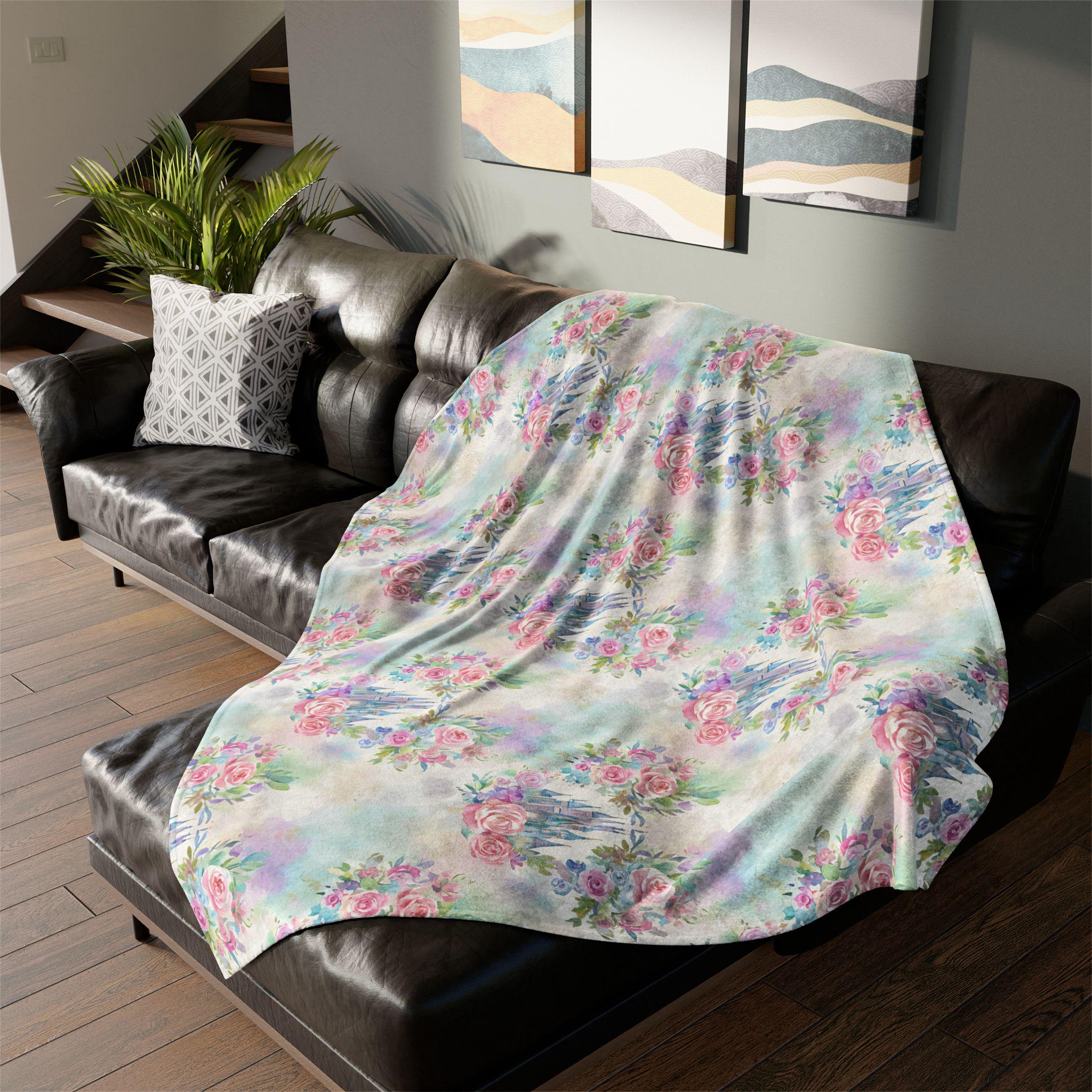 Wrap yourself in a gentle, watercolor world. This soft polyester blanket brings a dreamy floral-and-disney castle motif to life in airy pastels—blush pinks, misty blues, and soft greens blend like a morning haze over wildflower meadows. It feels plush and warm against the skin, with a substantial 300gsm fleece that stays cozy without feeling heavy. Hemmed edges and matched seam thread give a clean, polished finish that holds up to everyday use. Use it as a lap throw while reading by a sunlit window, a layering piece on a spare bed, or a comforting wrap during slow, quiet mornings. personalisation available