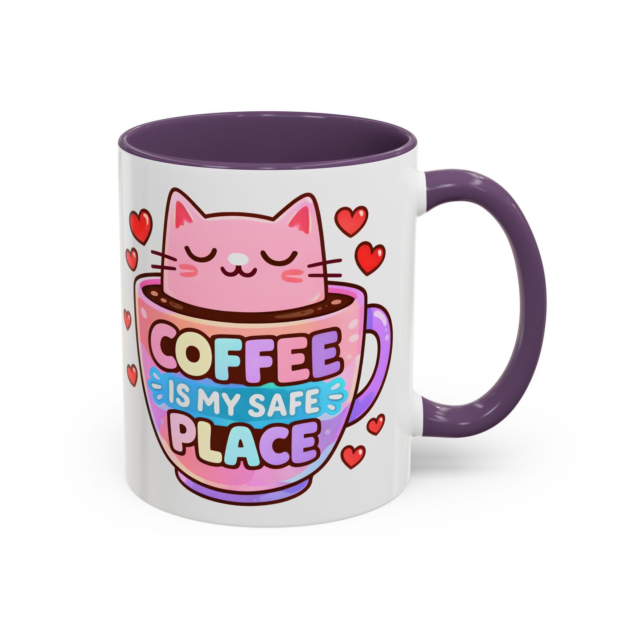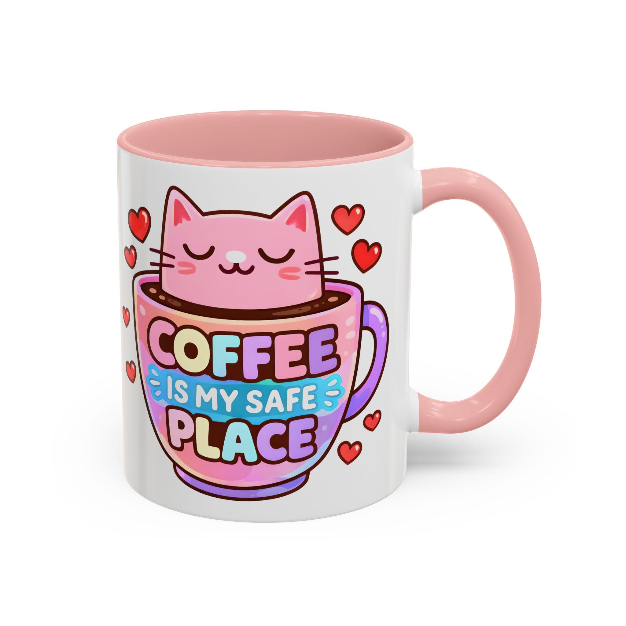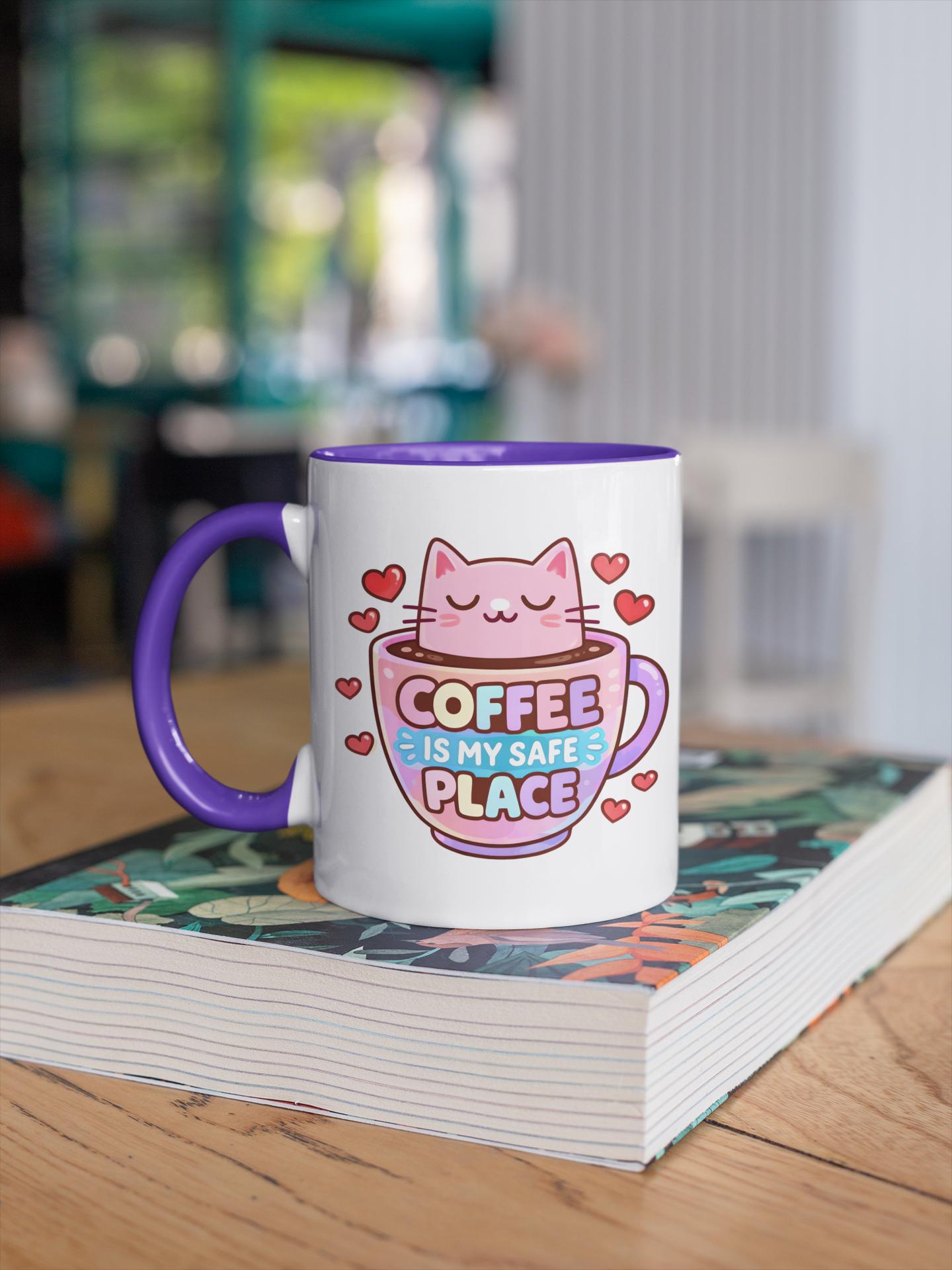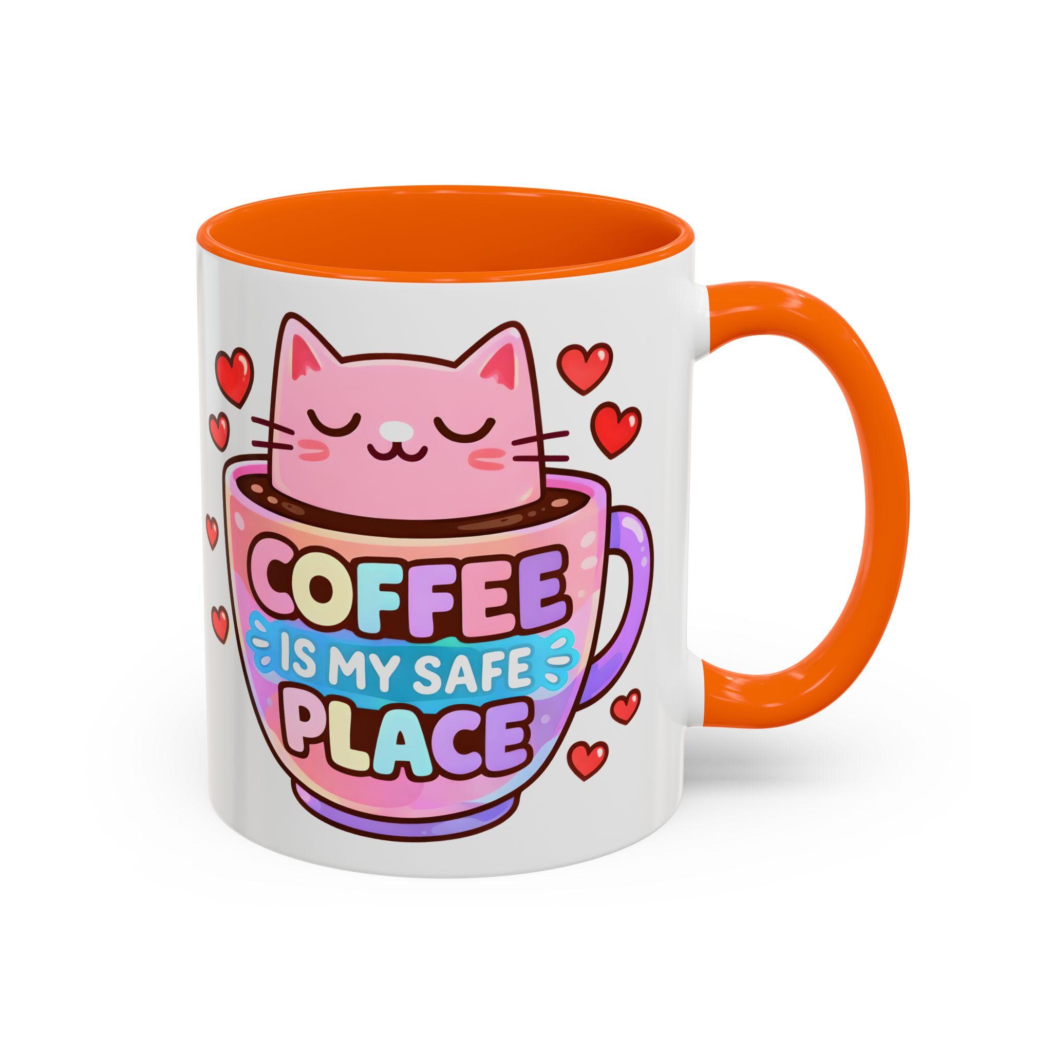 Warm, quiet mornings. A small ritual: steam curling up, a cat curled in your lap, and this accent mug warmed between both hands. The bright interior color frames the phrase like a soft whisper—“Coffee Is My Safe Place”—and the glossy ceramic keeps every sip feeling deliberate. It’s built for people who treasure slow starts and honest routines. Slide it into the dishwasher after a long day, warm it quickly in the microwave between meetings, and enjoy the pop of color that fits right into a lived-in kitchen. This mug doesn’t shout; it settles into the corner of your counter and makes ordinary moments feel steadier.