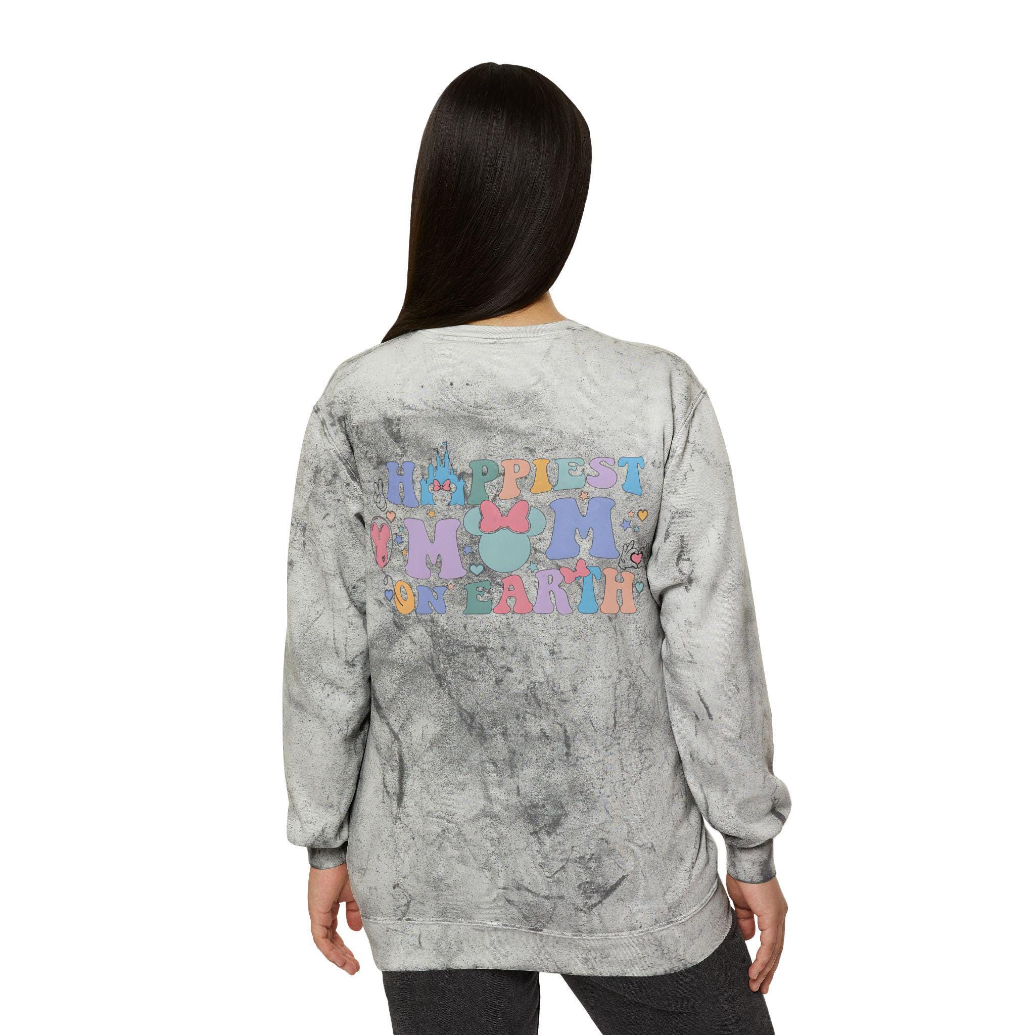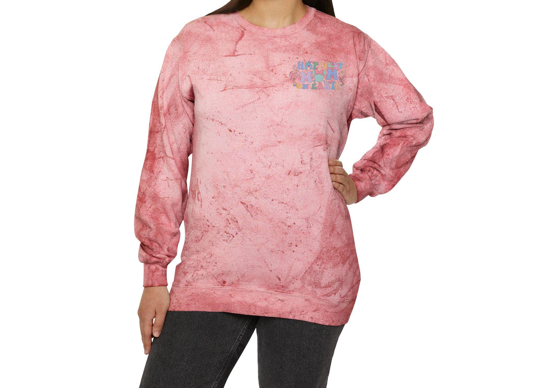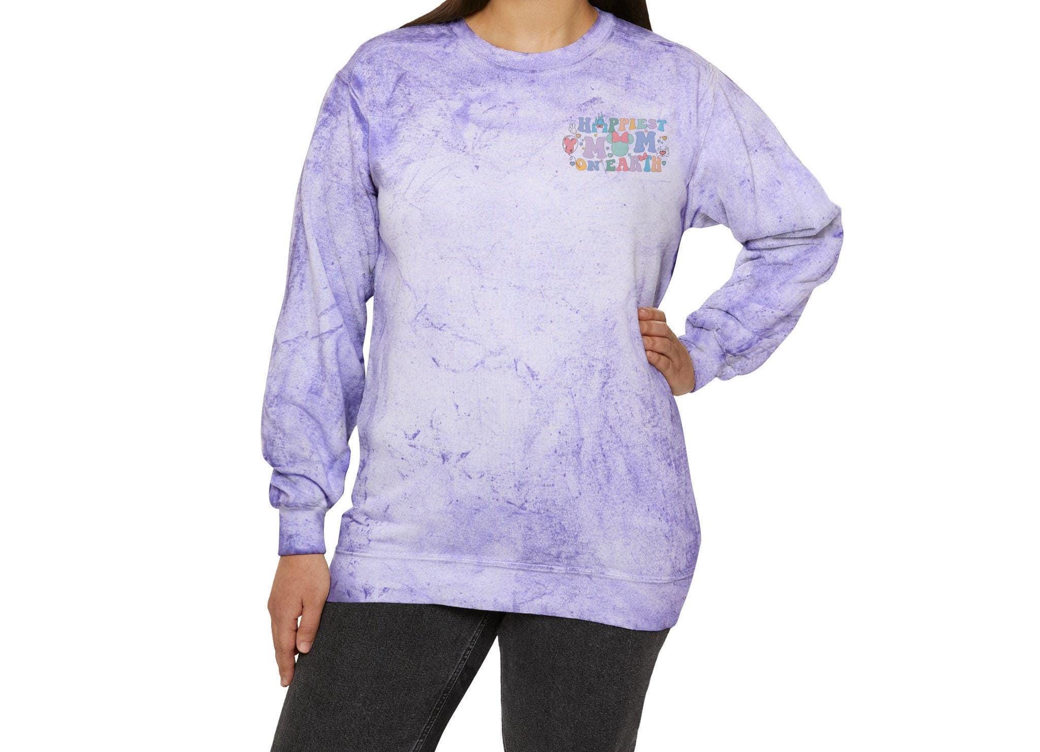 Bright, playful crewneck sweatshirt with a tie-dye marble wash and cheerful slogan. The soft, combed ringspun cotton blend feels gentle against skin while the garment-dyed finish gives each piece a lived-in, slightly vintage look. Double-needle stitched seams and necktape add durability and comfort, so this cozy crew moves with you through park days, weekend errands, and family mornings. The relaxed fit drapes easily over layers without feeling bulky. Wear it to lean into joy, celebrate small moments, or bring a splash of color to everyday routines.