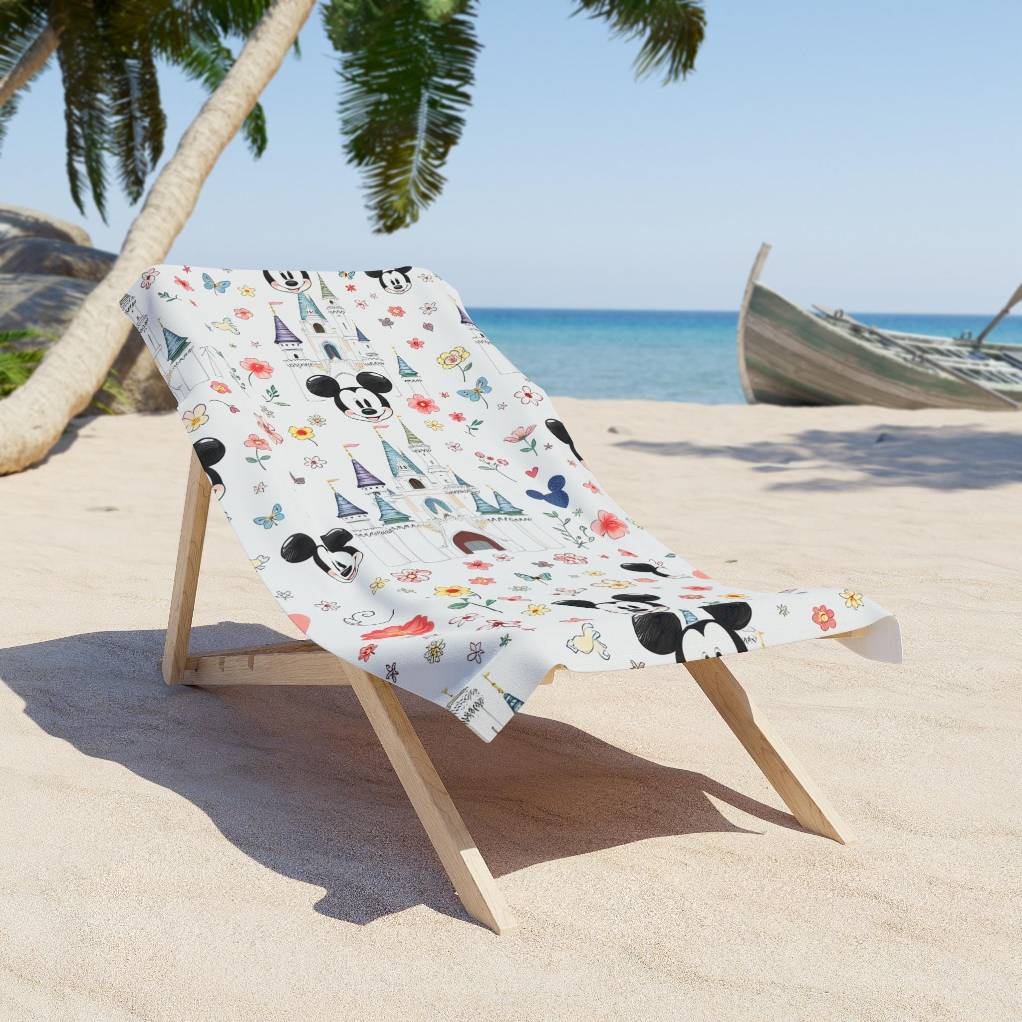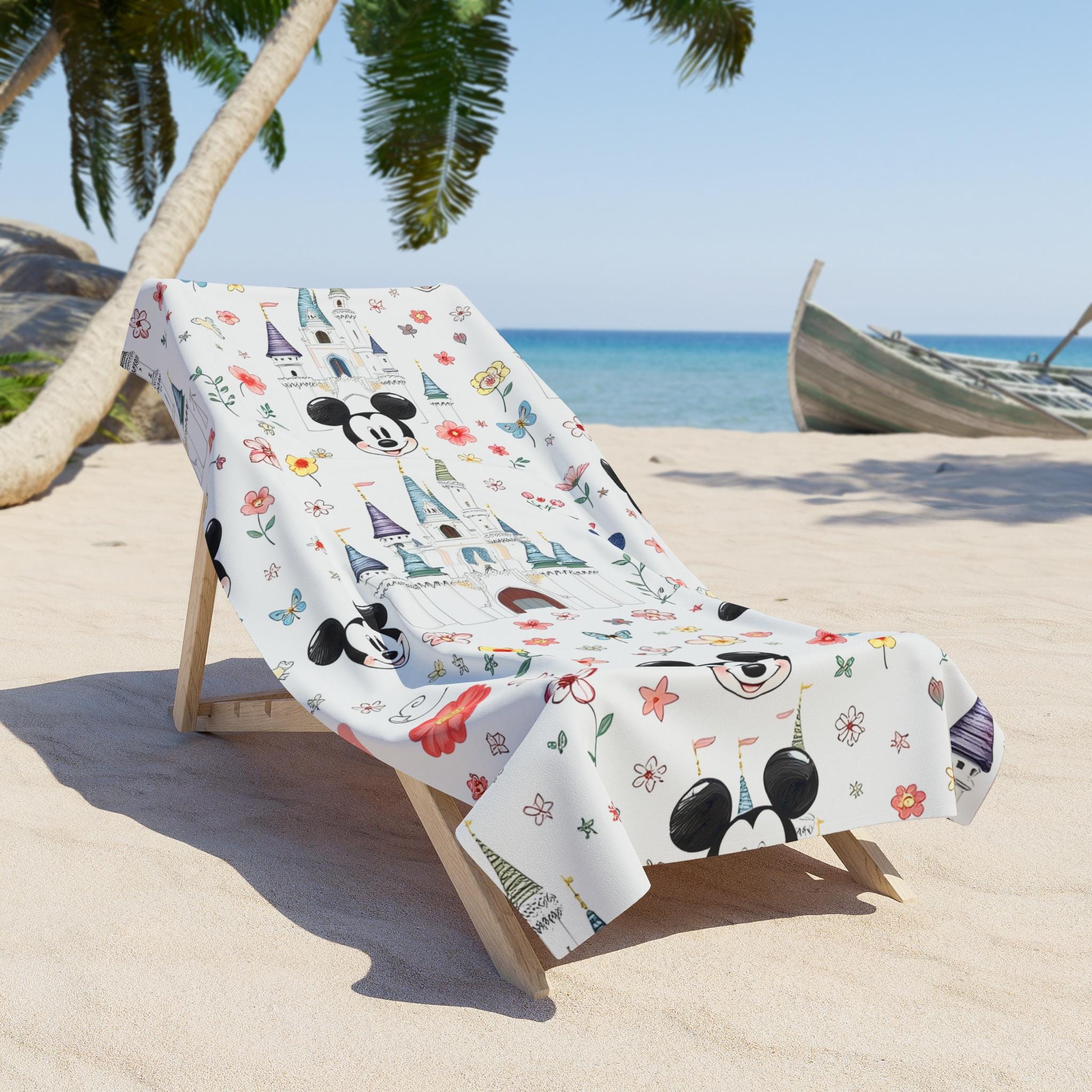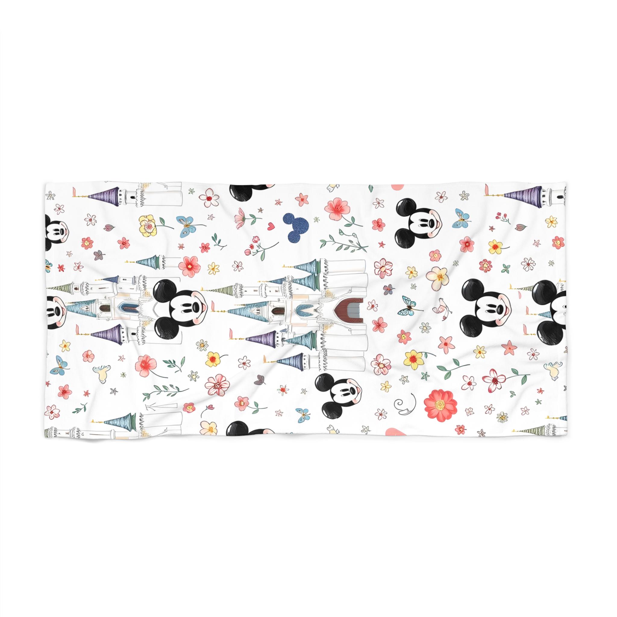 Sun-warmed sand, the hum of laughter, and a hint of pixie-dust florals—this beach towel brings Disney resort nostalgia to your next seaside escape. The vivid Mickey Mouse castle pattern blends playful silhouette with soft floral motifs, catching glints of sun on the polyester print side while the cotton loop backing cradles your skin. Lightweight and quick-drying, it slips easily into a tote and unfolds into a bright, cheerful spot for lounging, drying off after a splash, or layering on a picnic blanket. Sized for sprawling comfort or compact portability, it carries that familiar resort magic without being fussy—just fabric that looks joyful, feels gentle, and stands up to sandy, salty days.