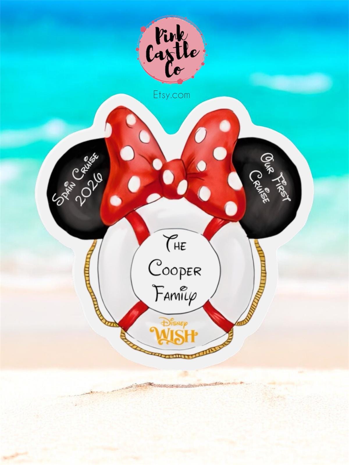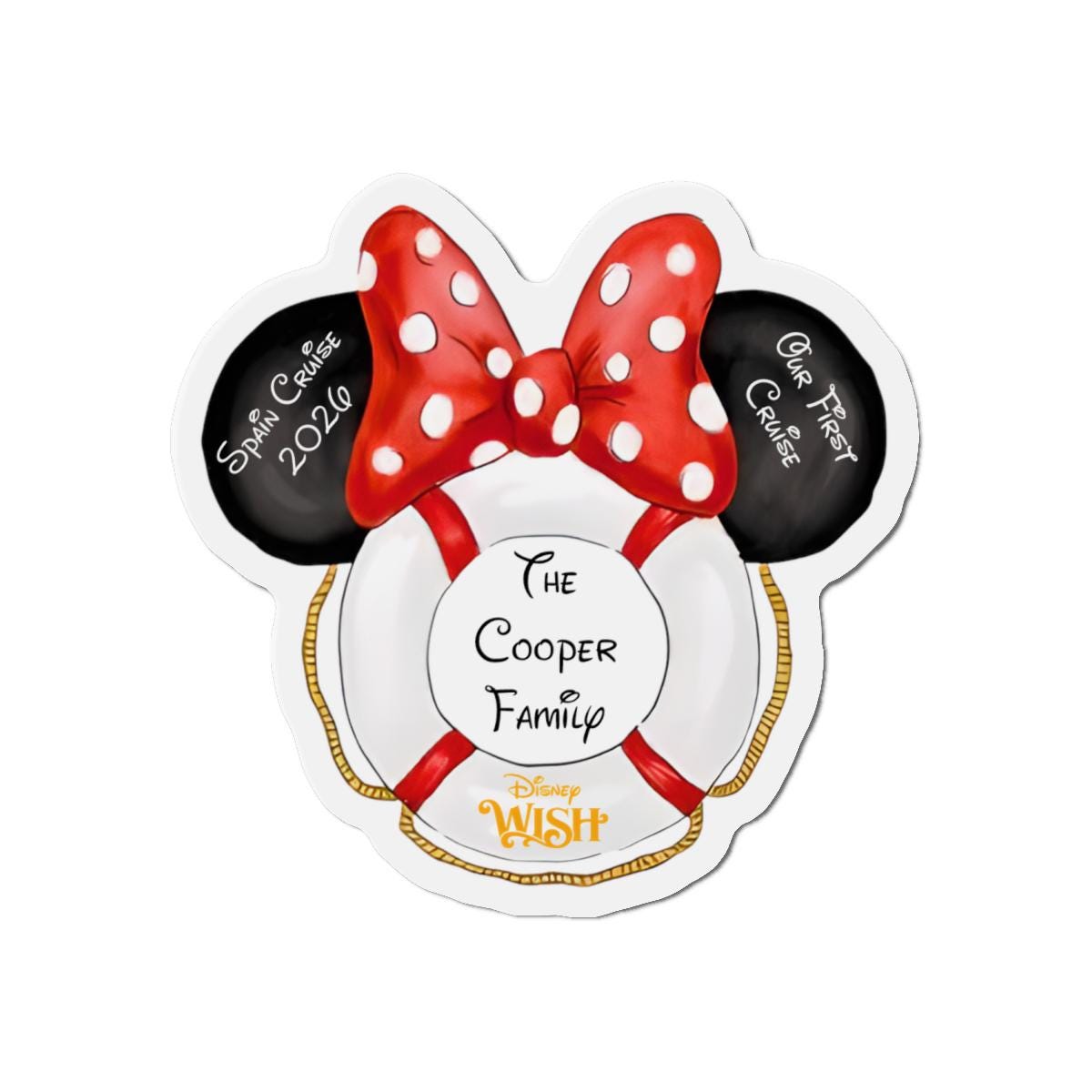 Bring a bit of cruise-line magic to any metal surface with this Minnie Mouse lifesaver die-cut magnet. It reads like a tiny stateroom door decoration—bright, cheerful, and instantly recognizable. Stick it to a cabin door, fridge, or locker to signal your vacation spirit and let family and friends spot your space from across the hall. The matte finish softens glare while the vivid printing keeps Minnie’s colors lively, and the flexible vinyl holds up to handling and even outdoor use. This magnet lands effortlessly into the routine of Disney Cruise fans who love personalized touches and simple, playful décor for shipboard life and post-vacation memories.