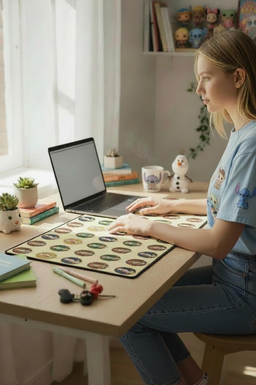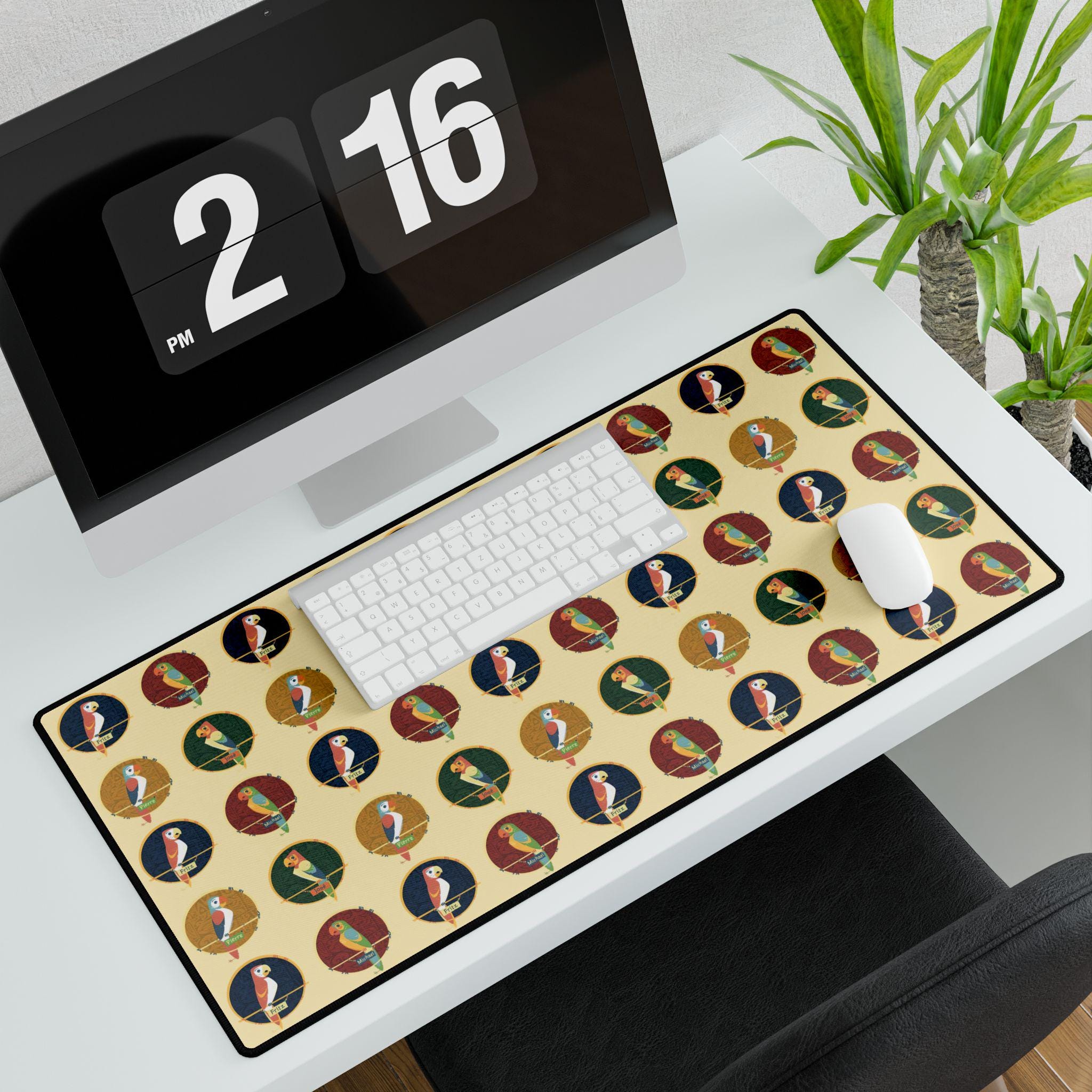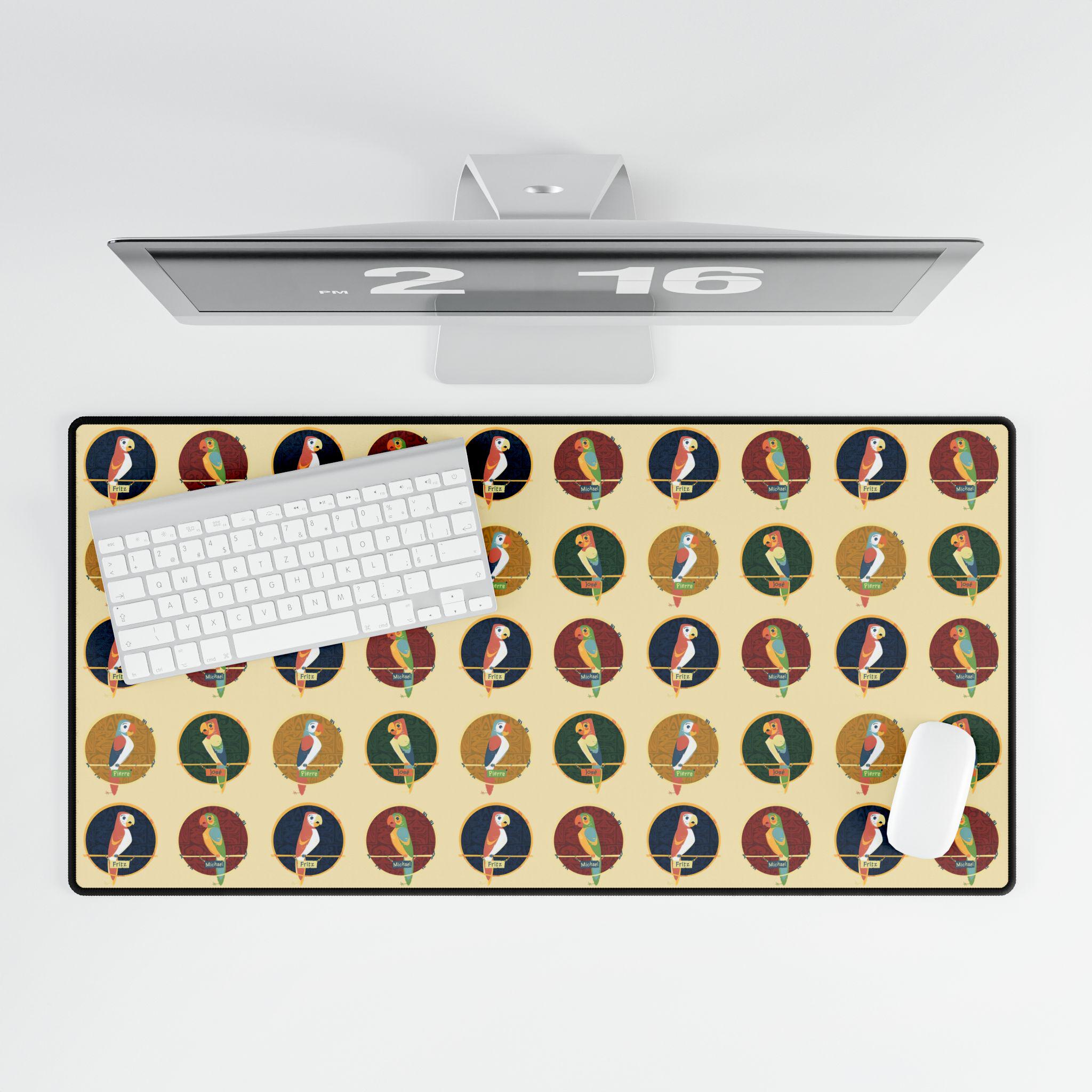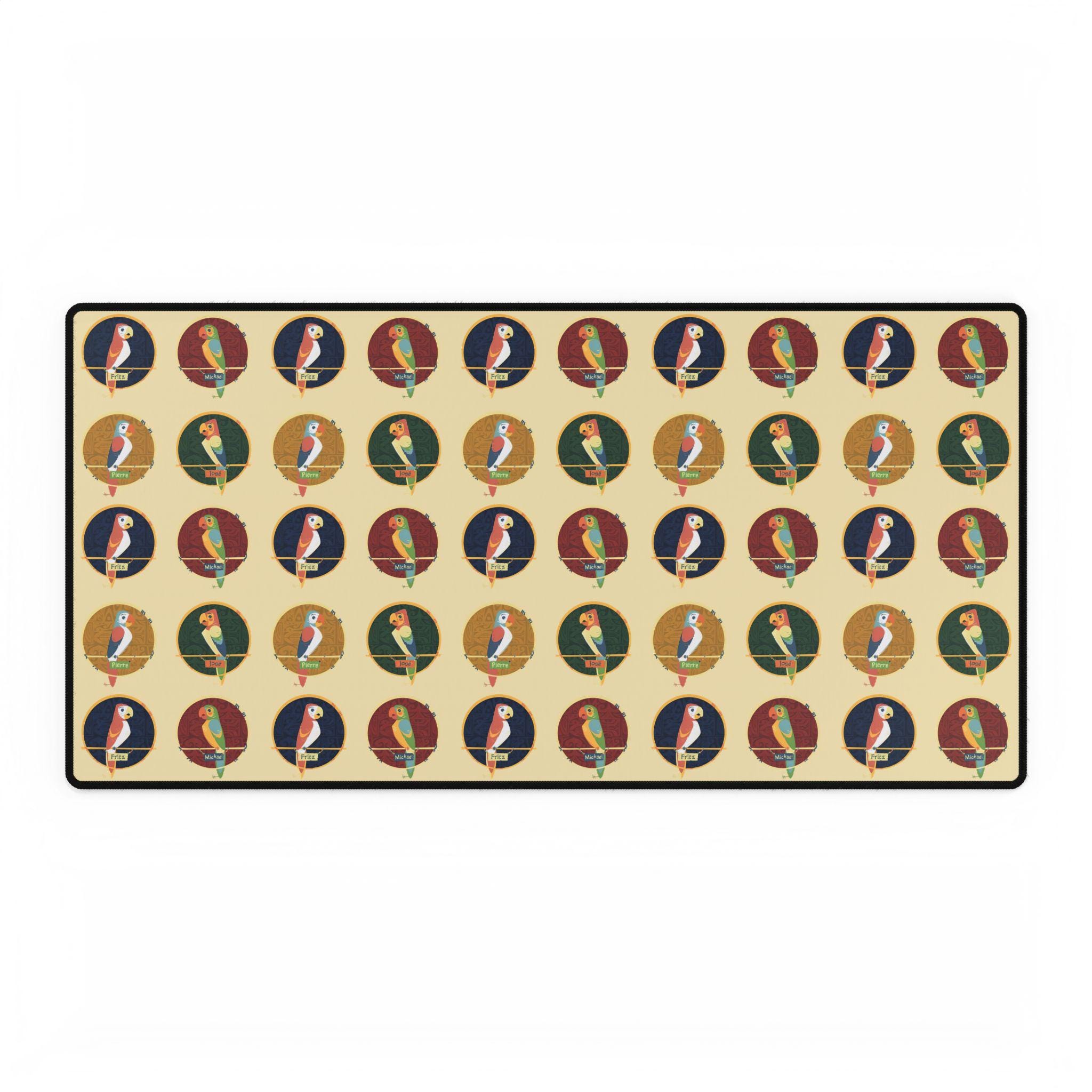 Bring a slice of tropical nostalgia to your workspace with this large desk mat inspired by the lively parrots of classic Tiki Room imagery. The oversized surface turns a cluttered desk into a colorful stage — bright plumage and playful silhouettes spread across a smooth fabric field that feels good under wrist and mouse. It absorbs the little knocks, muffles keyboard clatter, and gives your mouse the glide it needs for long creative sessions or marathon gaming. The rubber base hugs the tabletop so the mat stays put during quick movements. Let the vibrant pattern set a sunnier mood for morning emails, after-work streaming, or weekend design sprints.