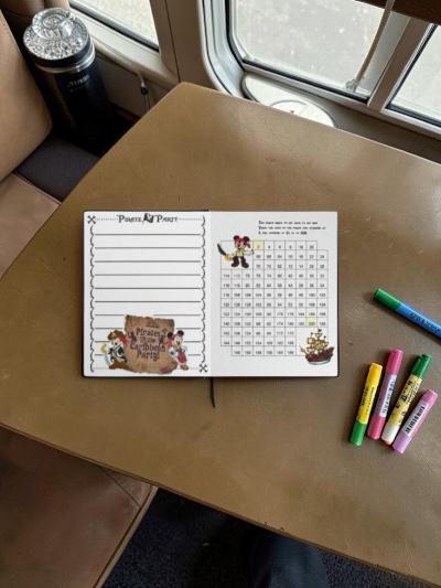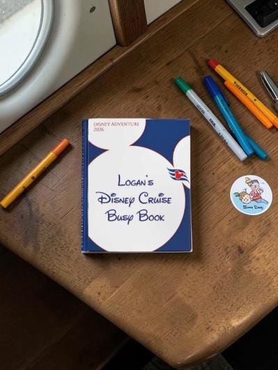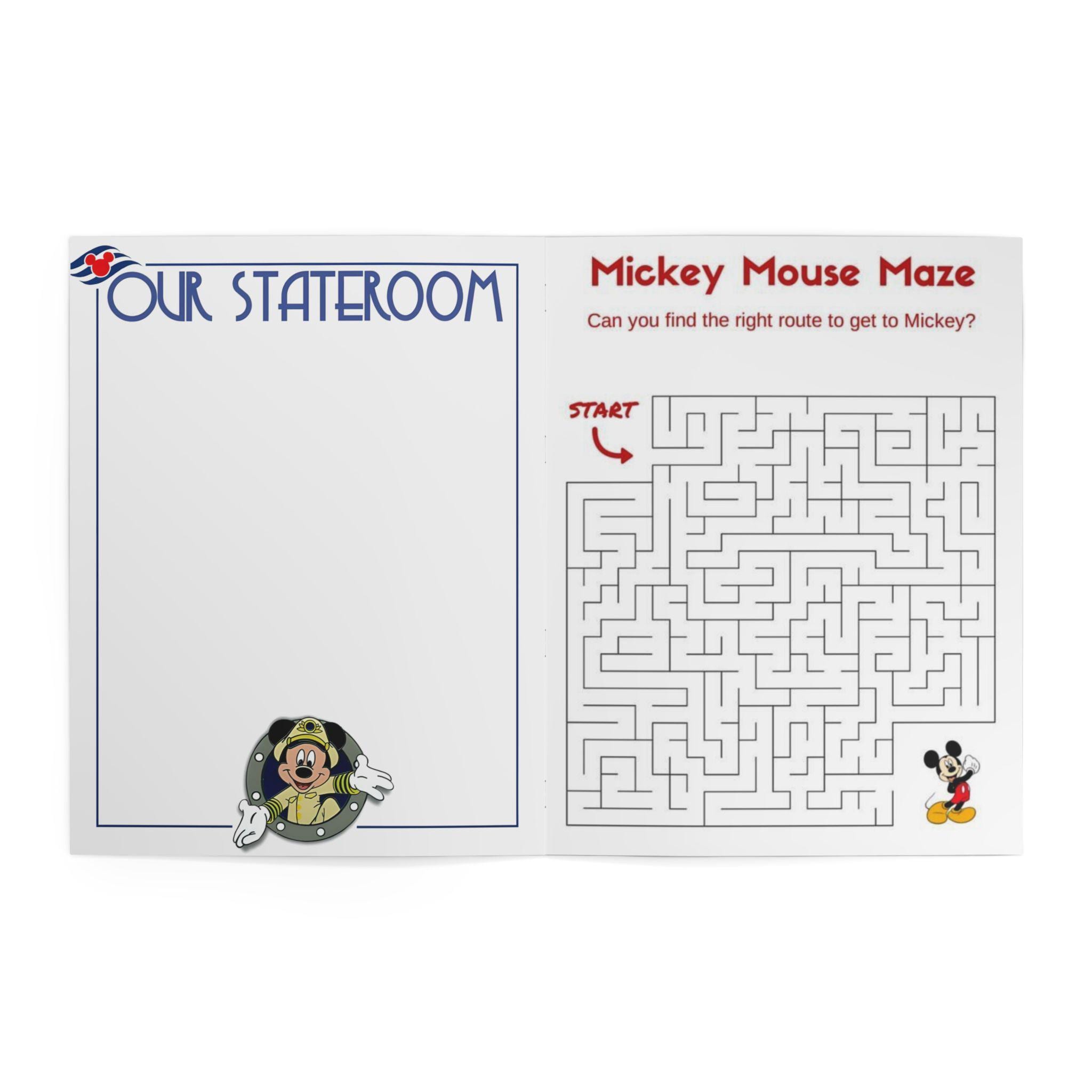 Disney Cruise–themed busy book activities including mazes, puzzles, colouring pages, and fun challenges